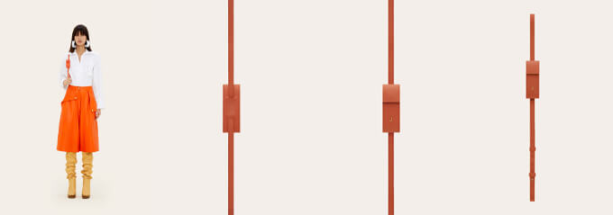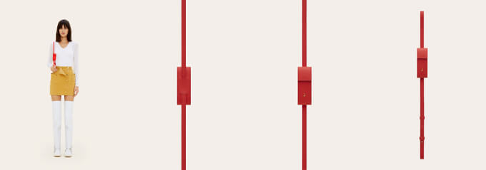 Микросумка доступна в 5 оттенках: белом, красном, оранжевом, лавандовом и цвета морской волны с минималистичным декором в виде золотой буквы J. Холдер выполнен из кожи в прямоугольном силуэте с длинным ремешком, позволяющим носить сумку через плечо.