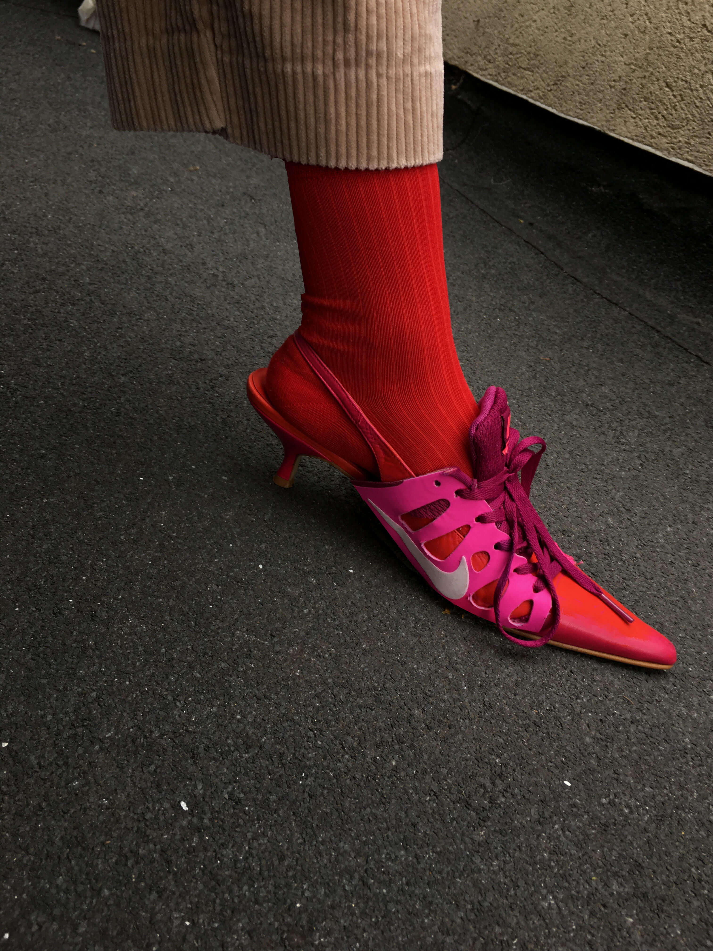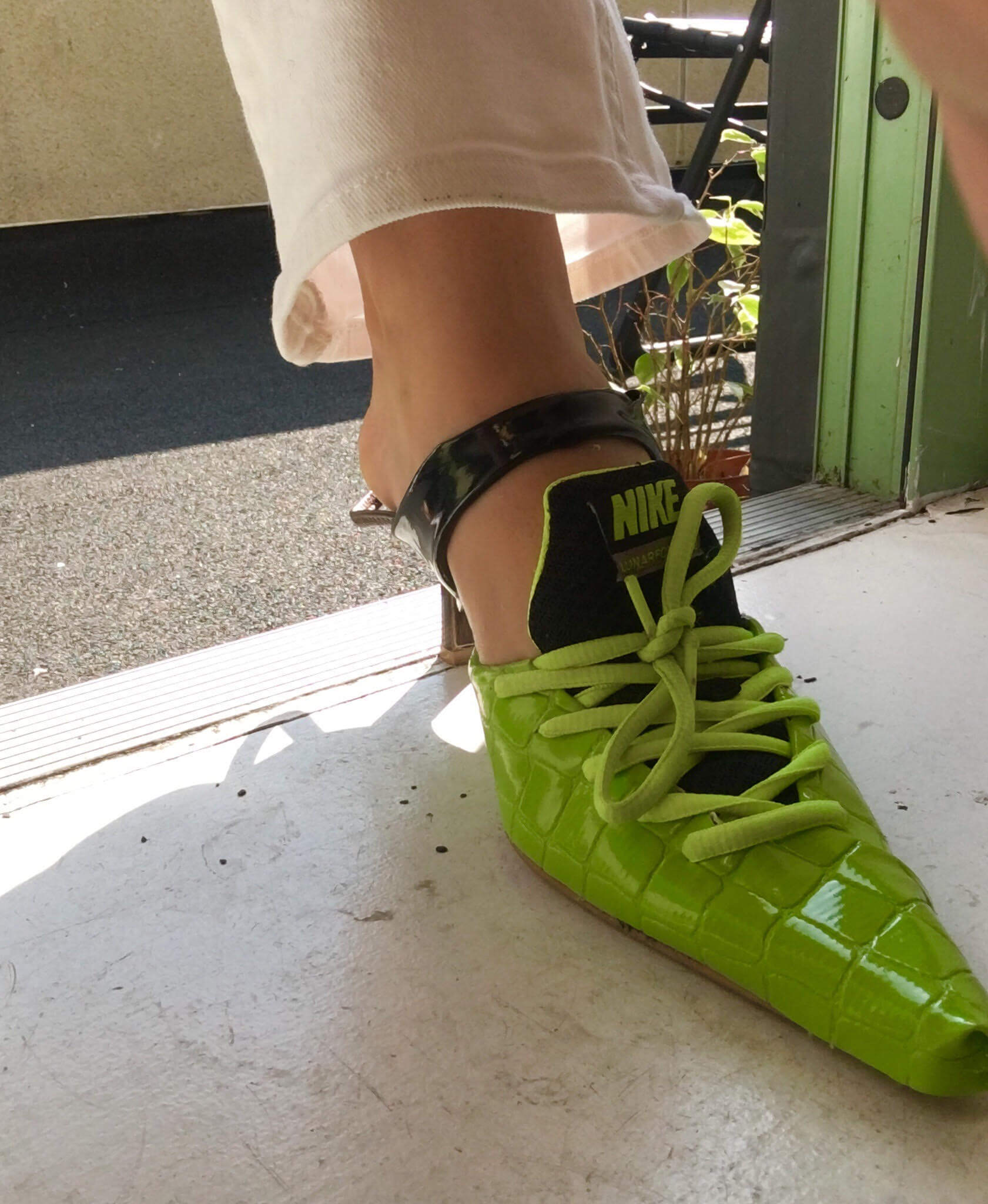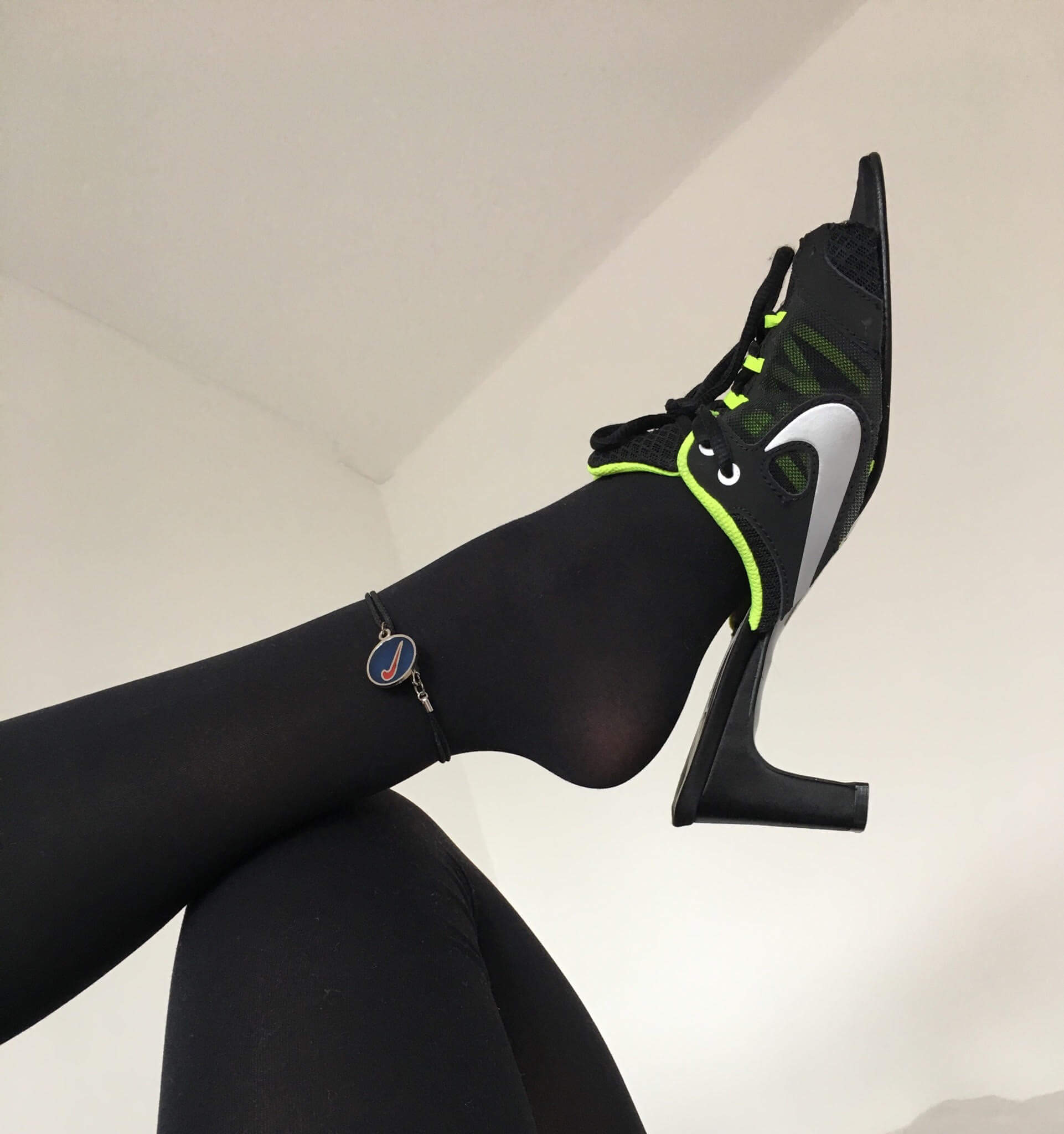 Дизайнер Ancuta Sarca придумала оригинальное применение старым кроссовкам Nike. Она делает из них туфли на каблуке с открытой пяткой. Дизайнер объясняет, что придает старым беговым кроссовкам новую функцию — элегантности и женственности.