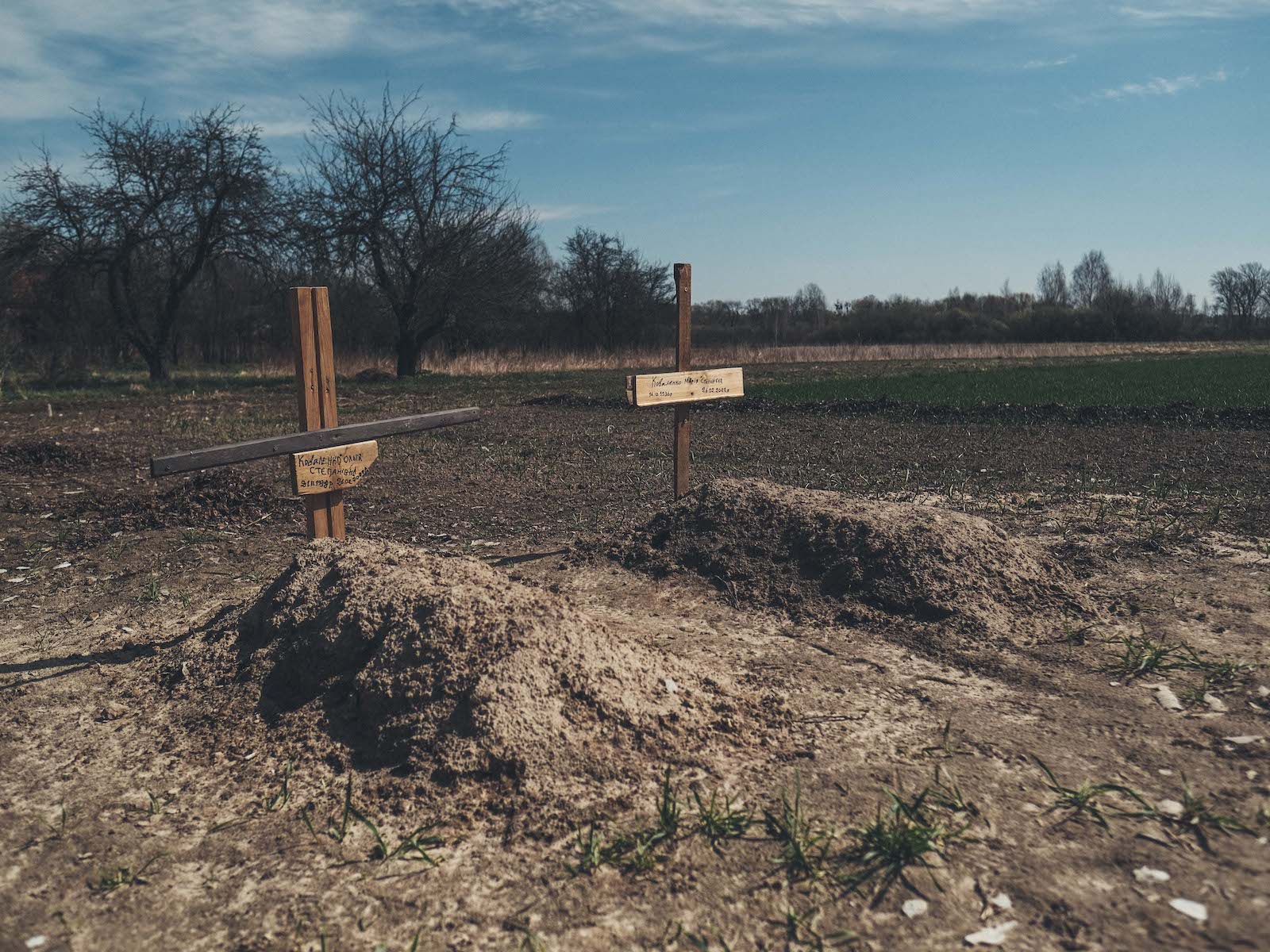 На воротах багатьох будинків у селі було написано "люди" — так мешканці намагалися попередити окупаційні війська про те, що в будинку перебувають мирні громадяни. Але саме за цими написами солдати й знаходили мешканців, яких згодом силоміць відводили до будівлі місцевої школи. Усього туди зігнали близько 150 жителів, яких армія рф використовувала як живий щит.