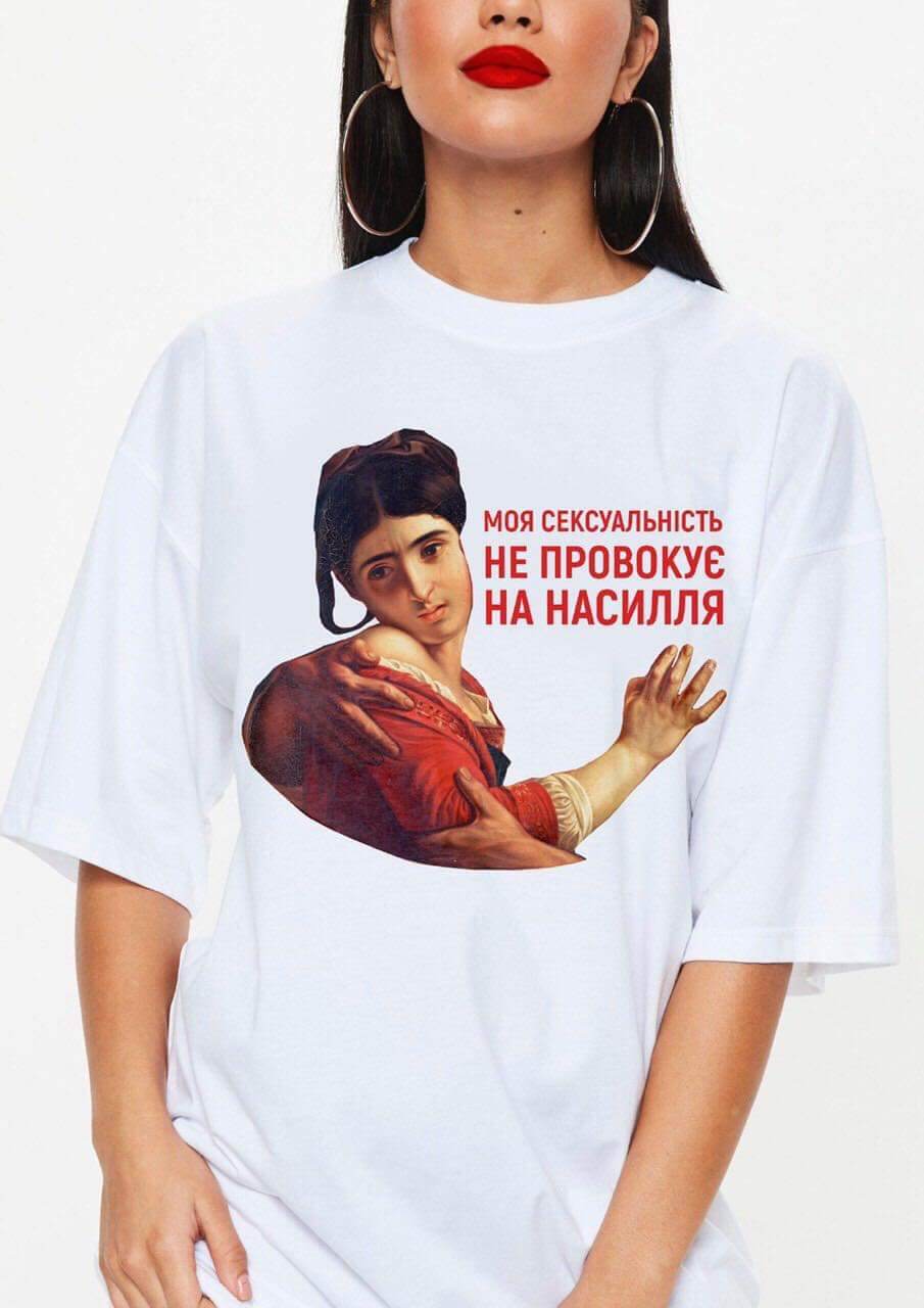 Одесский художественный музей создал серию футболок, направленную на борьбу с гендерными стереотипами. На белые оверсайз-силуэты поместили образы женщин из картин музейной коллекции, сопровожденные фразами: “Спитай мене, коли я вийду заміж”, ”Моє тіло — не фон для реклами”, “Сама собі олігархиня” и другие.