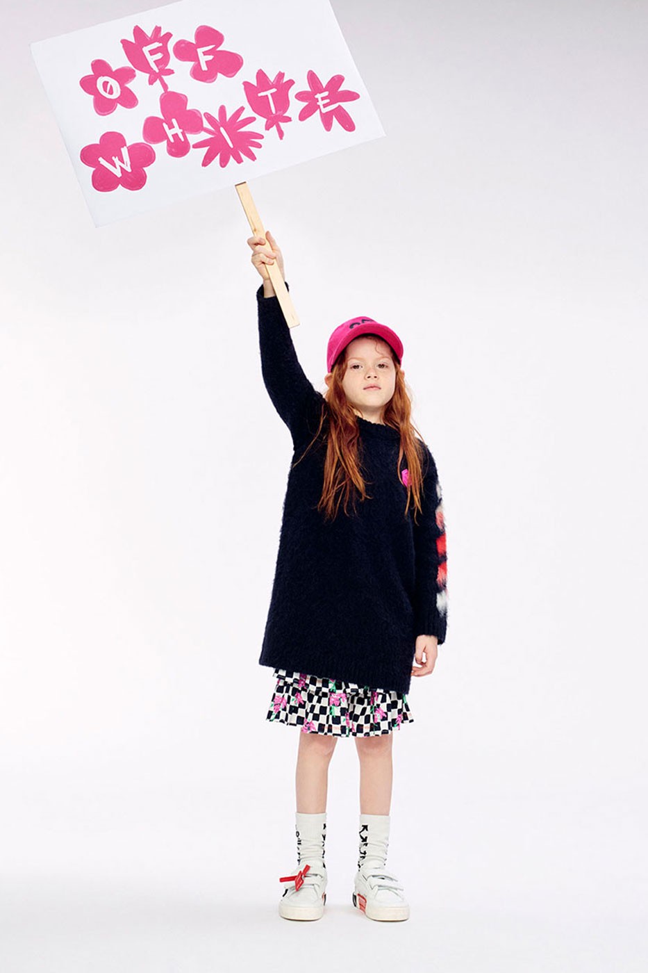 "Я часто вижу снимки клиентов Off-White, наряжающих своих детей. Я хотел расширить ассортимент и предложить что-то из нашего мира и этим молодым людям", — комментирует запуск Вирджил Абло.