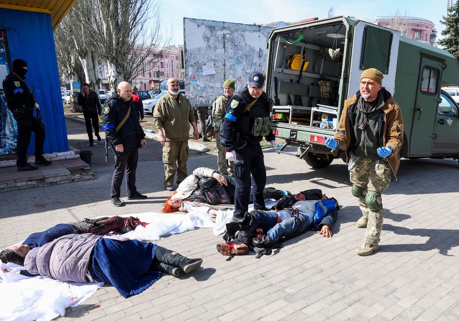 8 квітня, вдень, росія завдала ракетних ударів по залізничному вокзалу у Краматорську — про це повідомила Донецька обласна військова адміністрація. Спочатку керівництво області повідомило про те, що удар завдали ракетним комплексом "Іскандер", однак пізніше президент Володимир Зеленський повідомив, що це була "Точка-У".