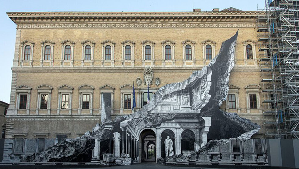 Художник і раніше мав масштабні роботи в столиці Франції – на 30-річчя з дня побудови скляної піраміди в Луврі, у 2019 році, JR створив оптичну ілюзію ущелини навколо неї. Також він є автором алюмінієвого композиту для фасаду Палаццо Фарнезе в Римі.