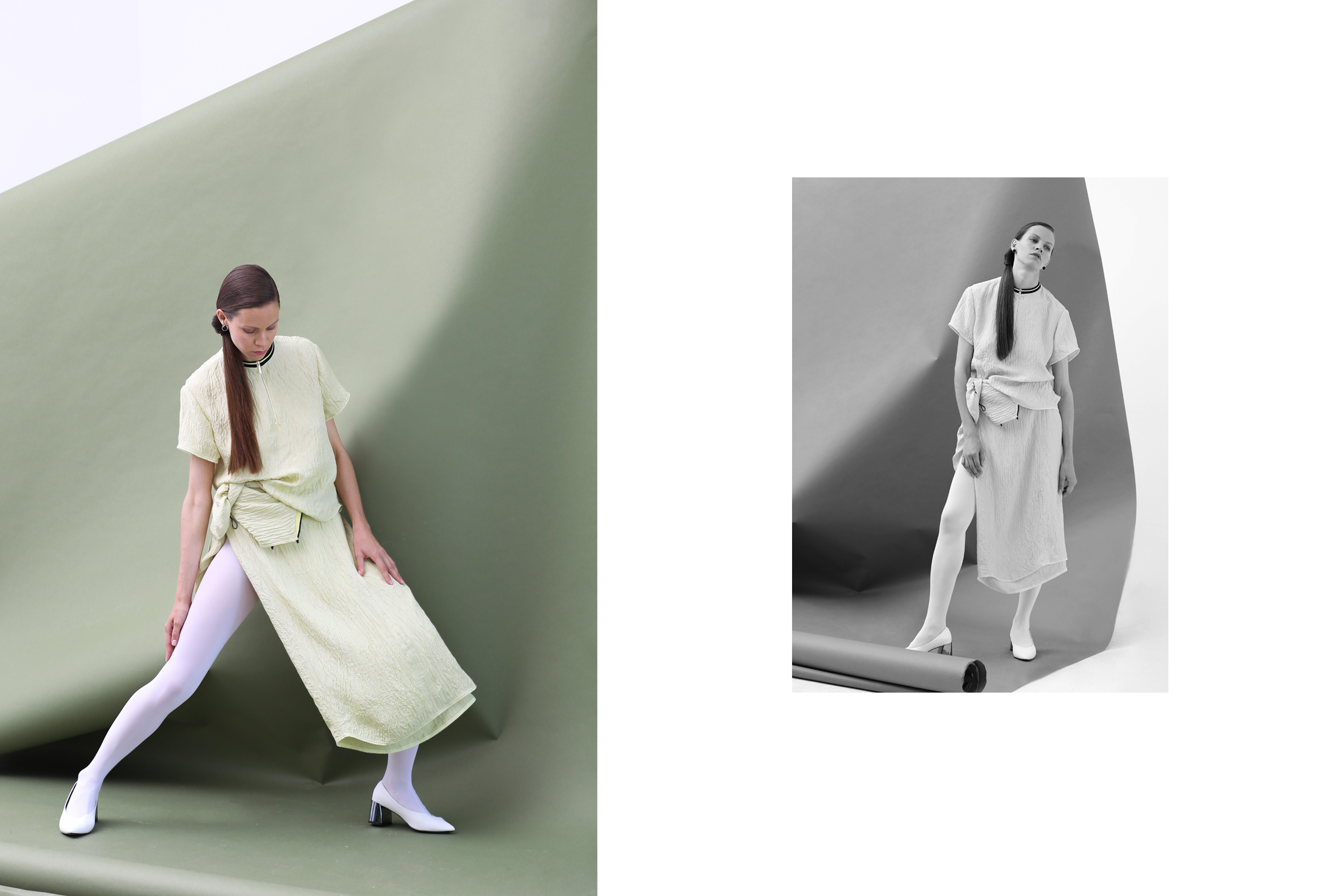 Важно отметить, что эта съемка стала первой, над которой дизайнер работала не сама, а вместе с молодым стилистом Виленой Визенковой. Фотографом кампании выступила Александра Серафимович, а моделью – Юлия Довженко. Создатели капсулы утверждают, что выбрали ее на эту роль, так как увидели, что в движениях, характере, взгляде этой девушки воплотились ключевые качества героини коллекции – тонкая женственность, мудрость и независимость.