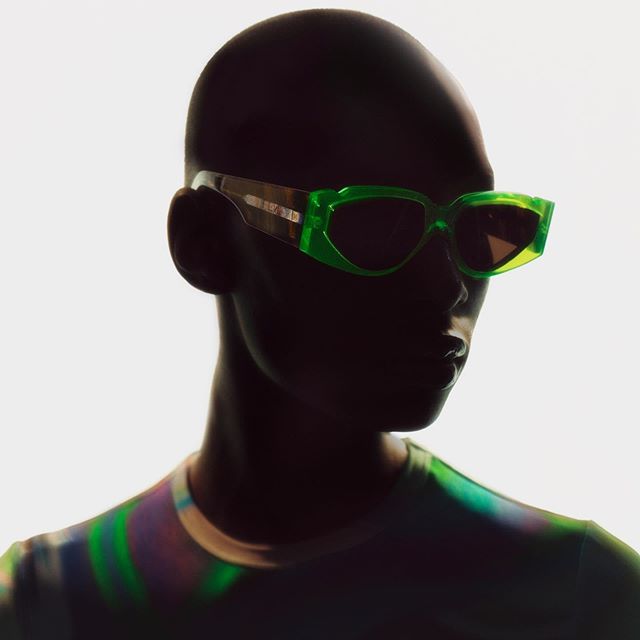 Дизайн очков вдохновлен винтажными силуэтами прямоугольной формы в стиле 80-х годов с леопардовыми принтами. В коллекции очки представлены в черном, белом и неоновых синем, розовом и зеленом цветах. Все оправы выполнены из ацетата.