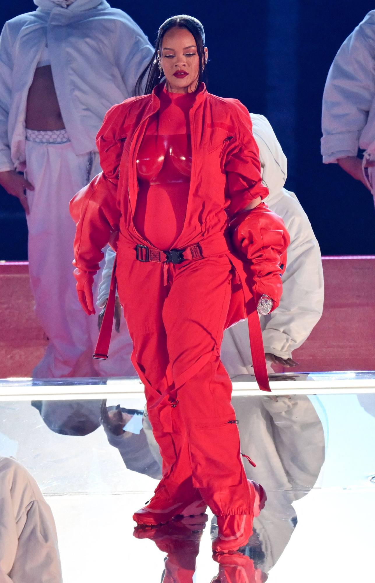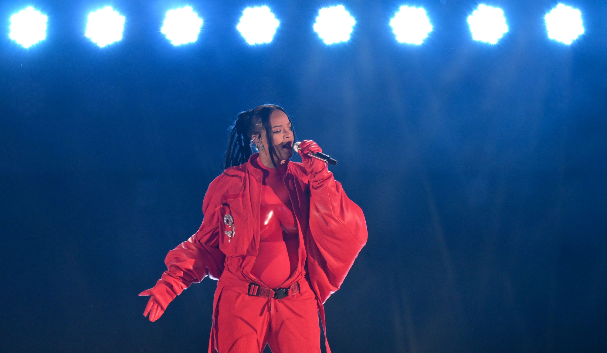 Уперше за 5 років співачка Ріанна повернулась на сцену — 12 лютого вона виступила на півфіналі кубка американського футболу Super Bowl. Знаменитість одягнула червоний комбінезон Loewe, в якому був помітний її округлий животик. Після 13-хвилинного виступу на стадіоні університету Фінікса представники Ріанни підтвердили, що знаменитість разом із A$AP Rocky очікують на поповнення в сім’ї.