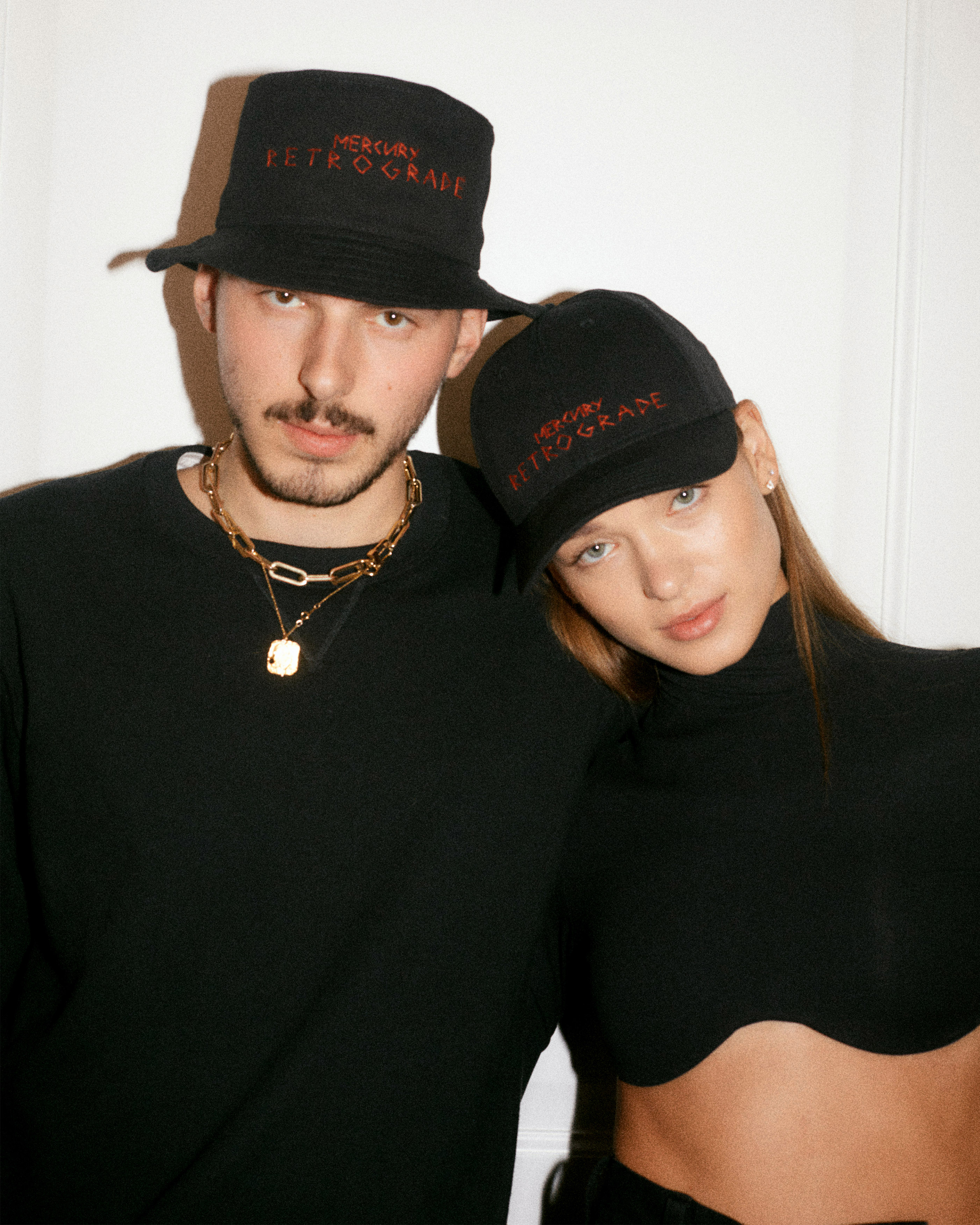В дроп, выпущенный Русланом Багинским, вошло три головных убора: бейсболка, панама и фуражка с надписью Mercury Retrograde. Можно сказать, что шляпы бренда заряжены на удачу и защищают от влияния ретрограда лучше всяких магических кристаллов.