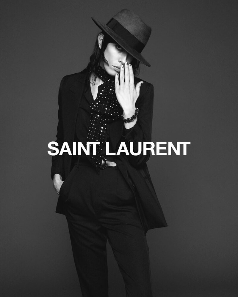Кампейн снял Дэвид Симс. На черно-белых фотографиях модели позируют в черных платьях, брючных костюмах и леопардовой шубе. Также Saint Laurent показали 2 небольших ролика. В одном — Аня Рубик в блестящем костюме, в другом — Джейми Бочерт в шубе и шляпе.