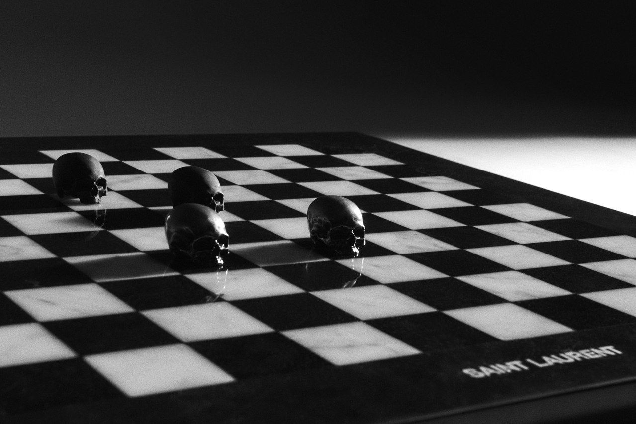 Также Saint Laurent выпустили линейку товаров для дома: статуэтки в виде скелетов и тыкв, свечи и массивные черепа из стали. Самым дорогим предметом в коллекции стала шахматная доска с черепами вместо классических фигур. За нее придется отдать $ 6 100.
