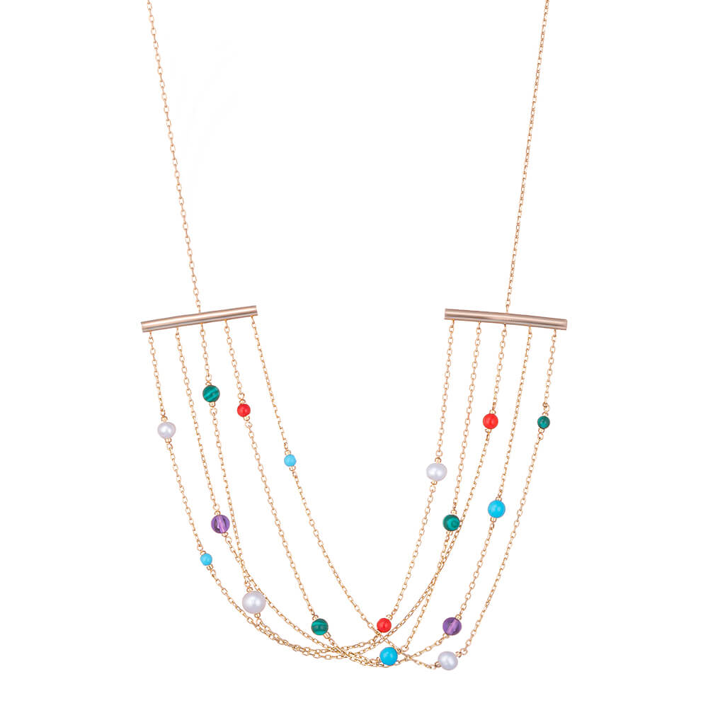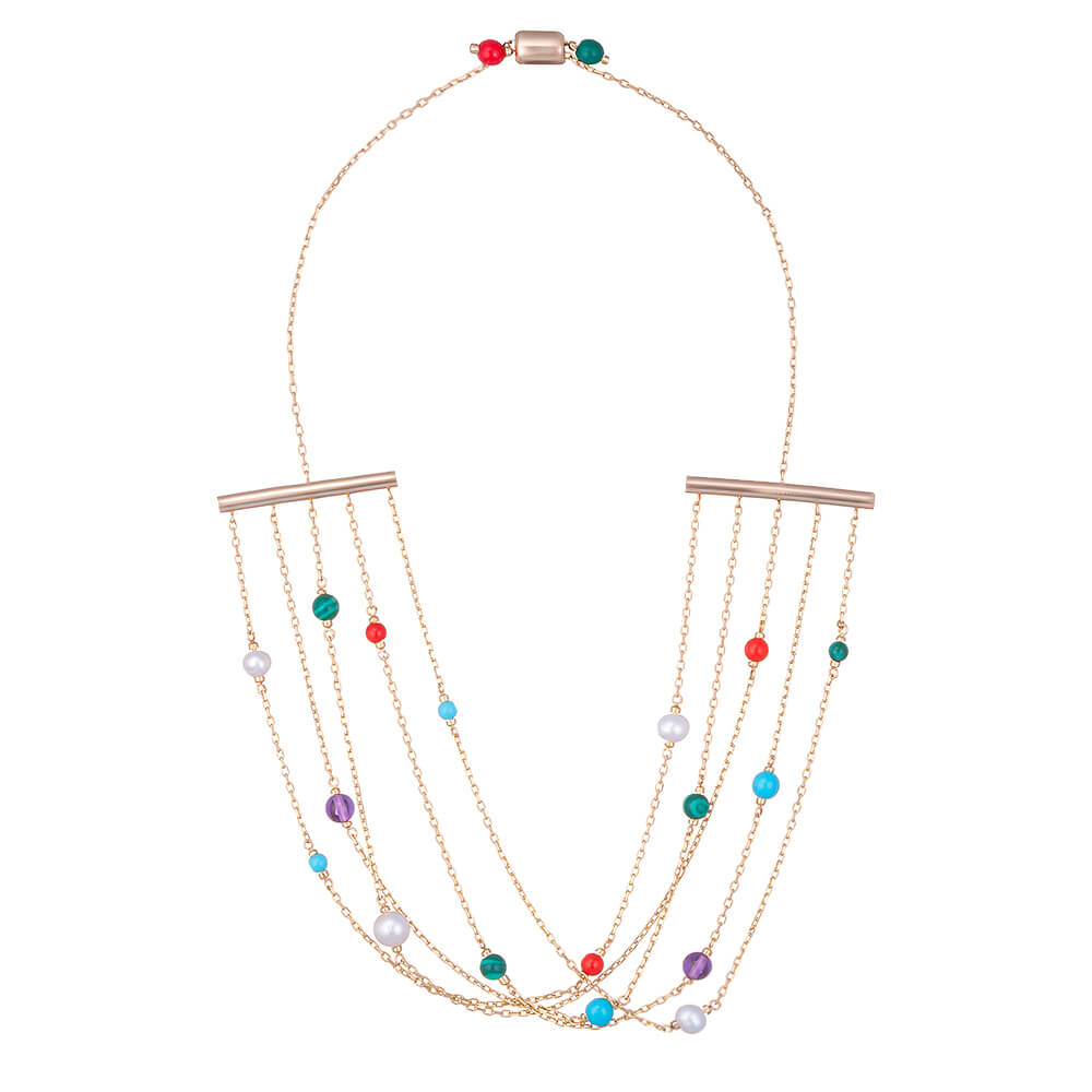 Индийские женщины верят, что ожерелья активируют энергию в чакрах и привлекают любовь. Украинский бренд сделал ожерелья из нитей и цепочки с кулонами разной длины. Их можно носить как вместе, так и по отдельности, создавая различные образы.
