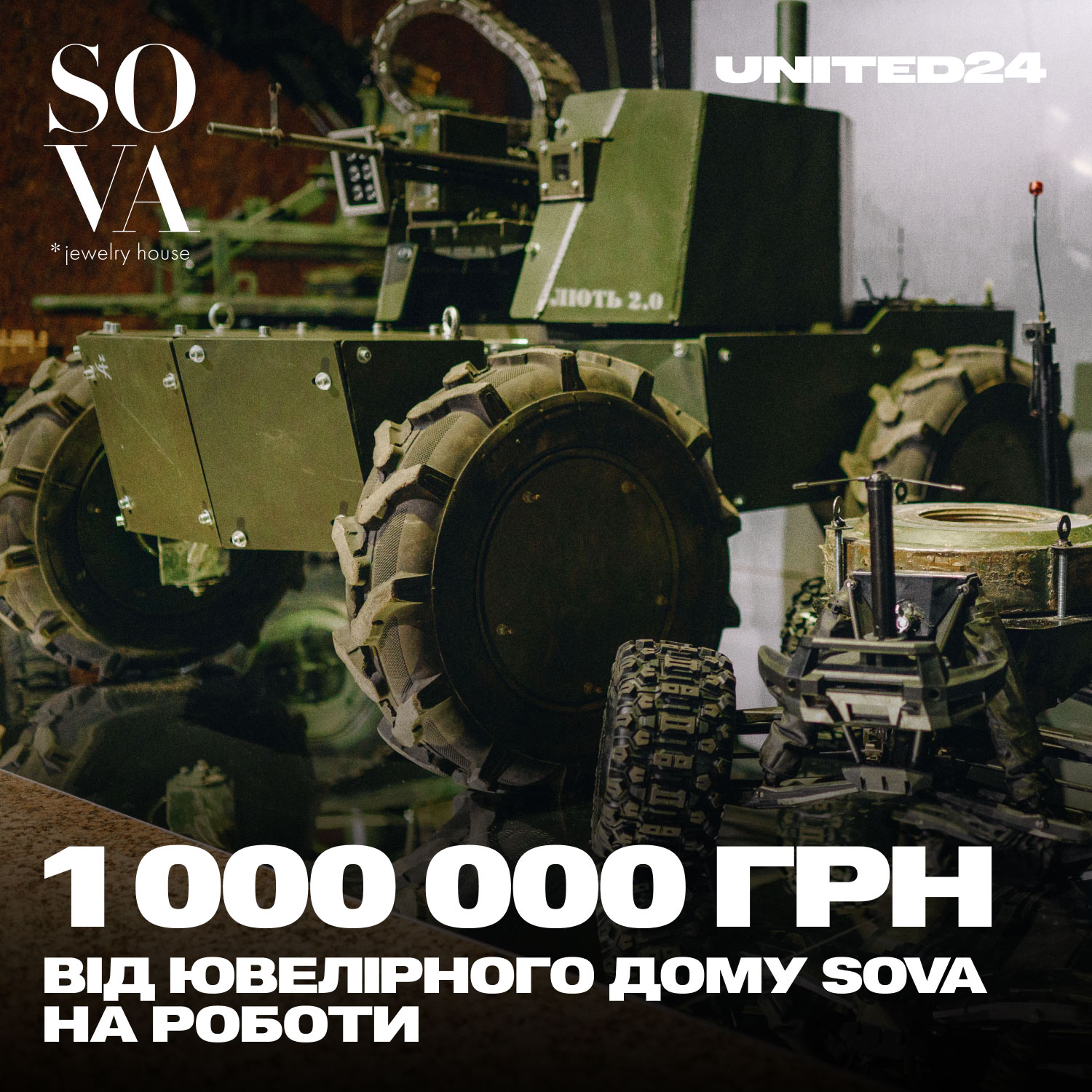 До Дня народження SOVA передає 1 000 000 гривень на збір UNITED24 на бойових роботів. Роботи, які працюють разом з людьми та замість них, підвищують безпеку та ефективність на полі бою. Це перший збір на наземні роботизовані платформи від UNITED24. Роботи допомагають зберегти життя військових та цивільних, вони виконують різноманітні завдання: від логістики та евакуації до розмінування та бойових операцій. Через UNITED24 буде придбано три типи наземних роботизованих комплексів.