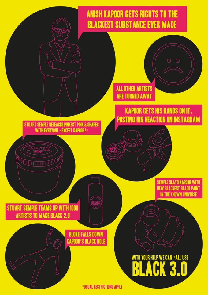Британский художник Стюарт Сэмпл, возмущенный эгоистичностью Капура, решил обойти его в создании самого черного цвета в мире. Сэмпл разместил на краудфандинговой платформе Kickstarter проект по созданию всем доступного черного пигмента. Он поглощает 98-99% света по сравнению с 99,96% черного Капура, однако не ограничен в использовании. Деньги на разработку были собраны за рекордные 38 часов.