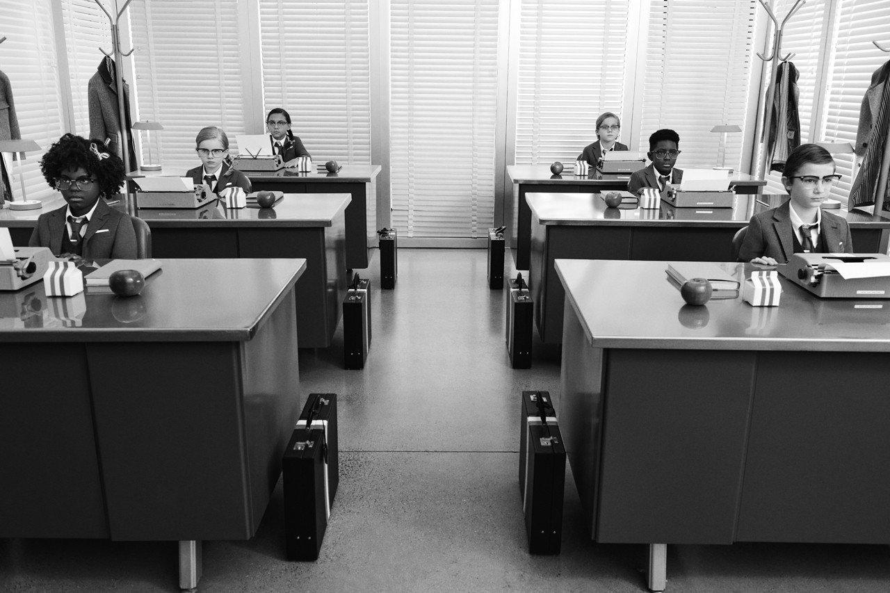 Также Thom Browne выпустили рекламную кампанию новой коллекции. Над видео работал Кэсс Берд. В ролике дети, одетые в классические деловые костюмы Thom Browne, работают и развлекаются в офисе.