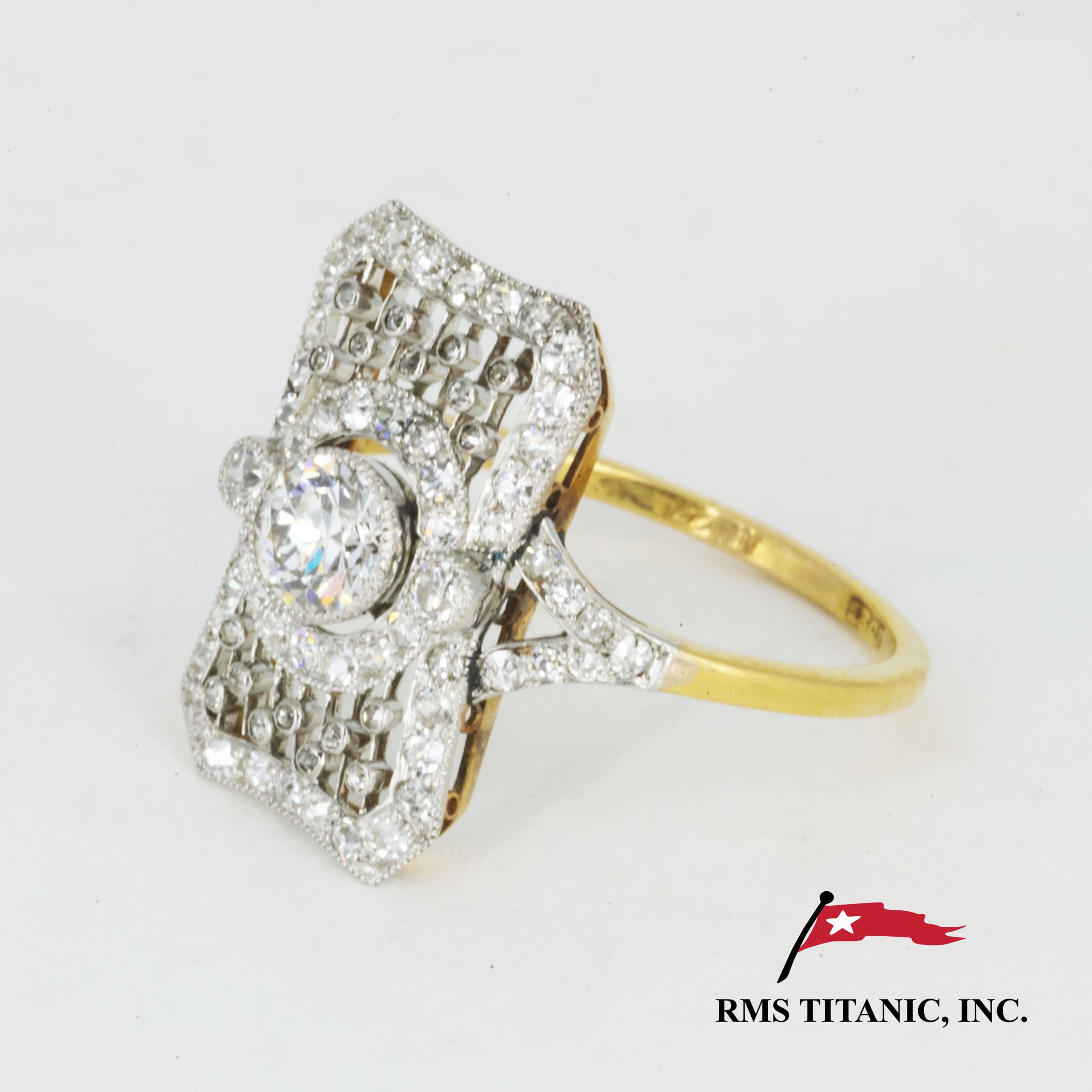 Філігранне кільце з діамантами. Багато жінок, подорожуючи першим класом на борту Титаніка, брали з собою найкращі прикраси, аби одягнути їх на вечірні променади. Дехто віддавав свої цінні речі комісару корабля Герберту МакЕлрою на зберігання, інші ж носили свої цінності в сумочках або зберігали їх у старих валізах або аварійних багажниках.