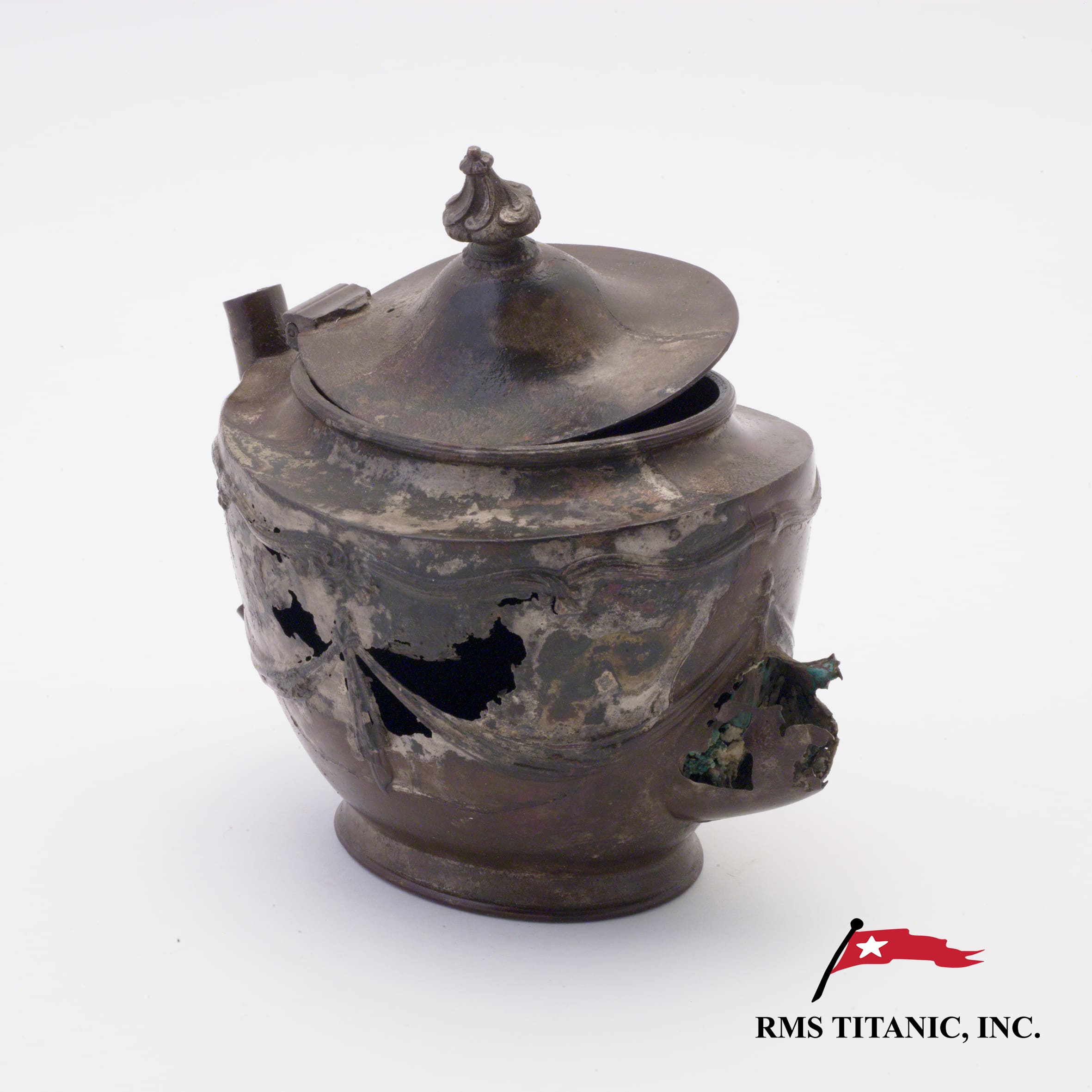 Чайник першого класу. На дні цього посрібленого чайника є штамп «Goldsmith S.A. Silversmith 112 Regent Str. Regent Plate RD451002», один із двох основних постачальників столового срібла на борту корабля «Титанік». Чайник використовувався в першокласному ресторані «А la Сarte».