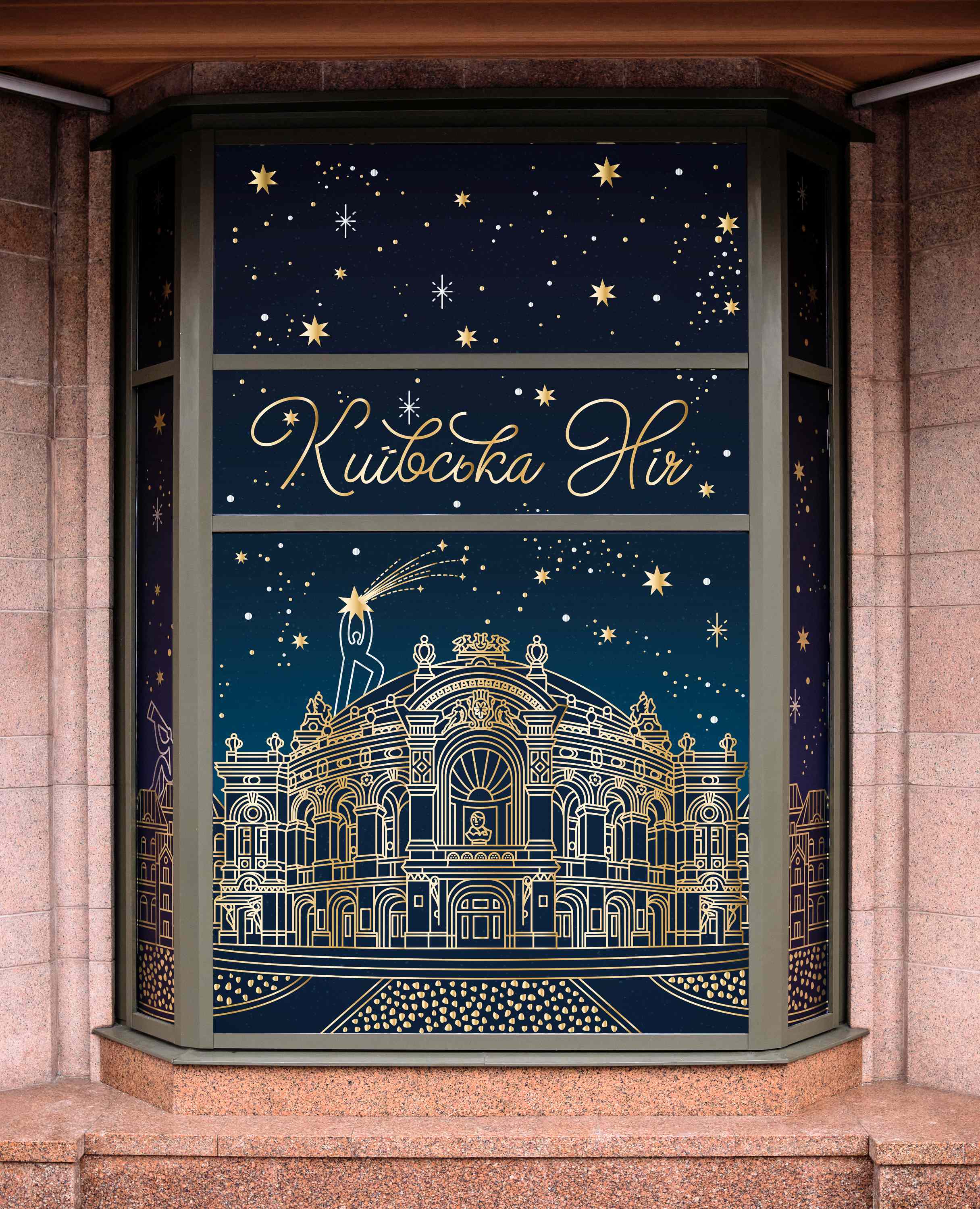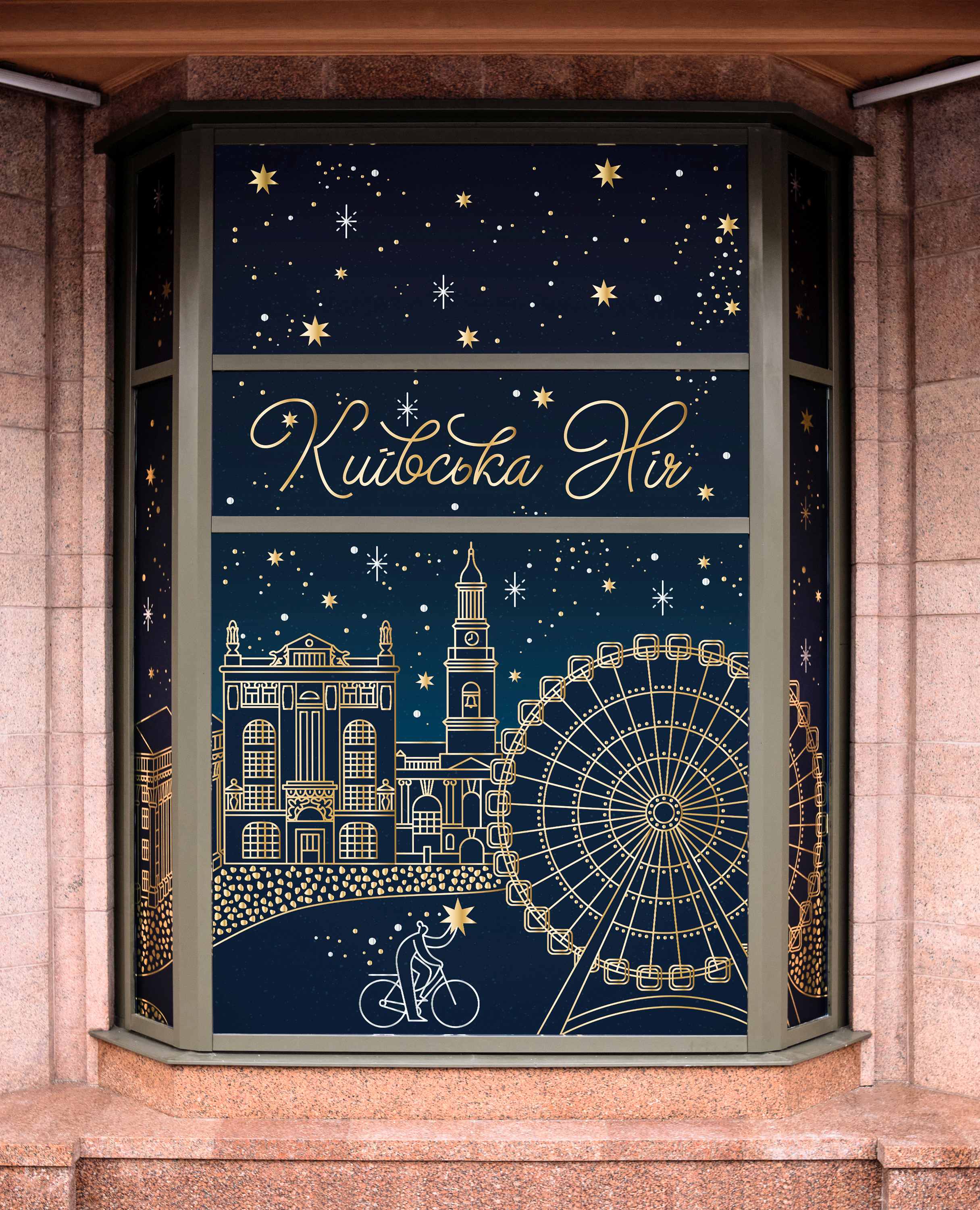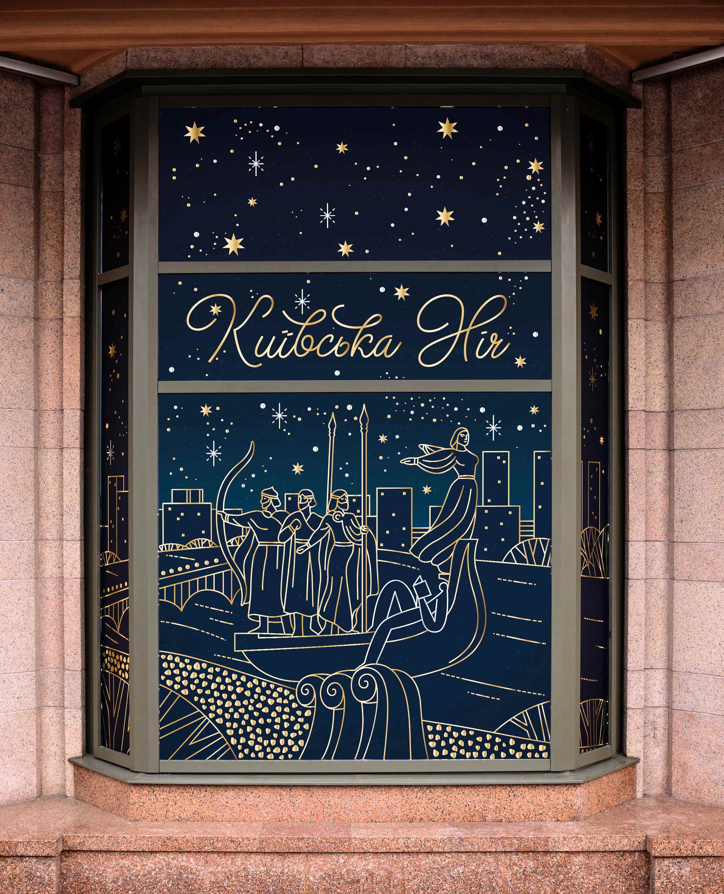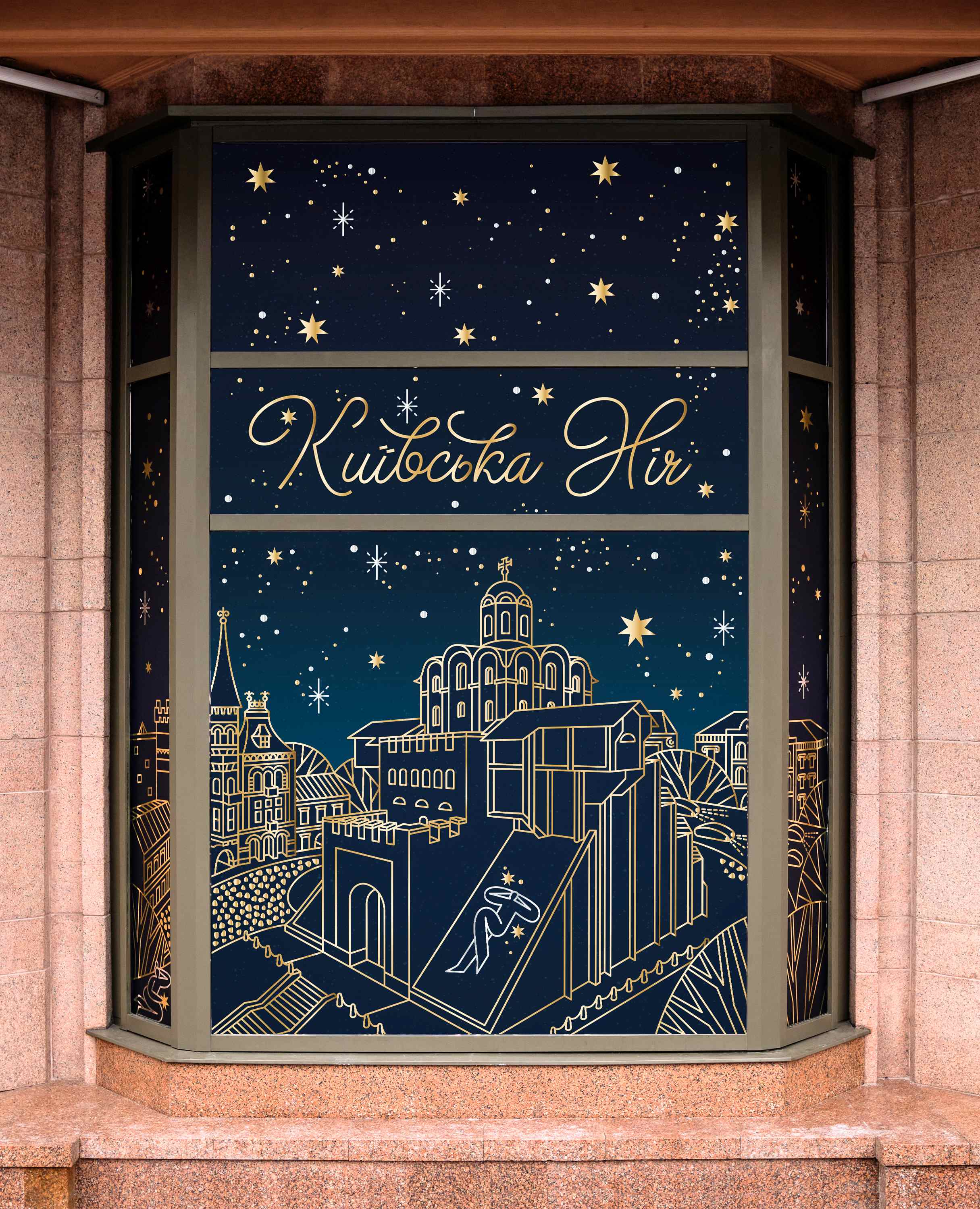 Київ невпинно демонструє своїм мешканцям витримку, незламність духу та фантастичні краєвиди нічного міста. Вітрини універмагу прикрашено серією авторських ілюстрацій з зображенням визначних місць та впізнаваних сучасних споруд столиці під місячним сяйвом. Головним освітленням вітрин у цьому році стало світло фар автомобілів, яке відображається блиском у золотих контурах спеціальної світловідбивної плівки. Композиція візуально об’єднана у панораму міста та складається із зображень Андріївського узвозу, Стели на майдані Незалежності, пам’ятника засновникам Києва, Національного академічного театру опери та балету України імені Т. Г. Шевченка, парку-пам'ятки "Володимирська гірка" та Пішохідного мосту, Контрактової площі, Оглядового колеса, Золотих воріт та Будинку Підгорського.