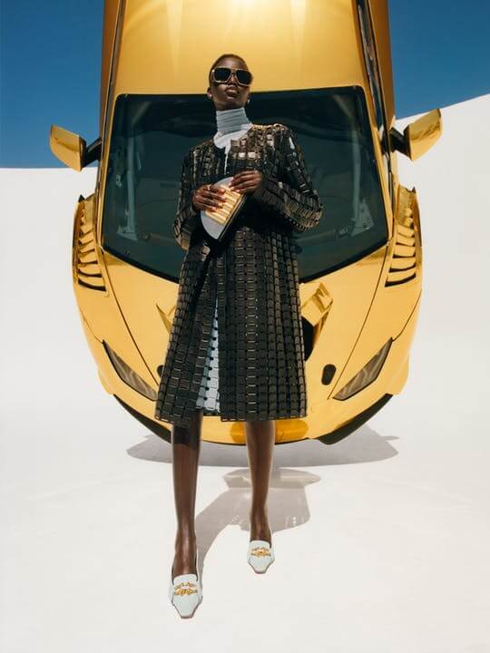 Креативный директор во второй раз сотрудничает с фотографом Тайлером Леброном, на этот раз для осенней коллекции. В кампании дизайнер показал свое видение роскоши: элегантность, четкий крой, сдержанность. Модели позируют в Калифорнии, в кадре появляется вертикально расположенный автомобиль из чистого золота.