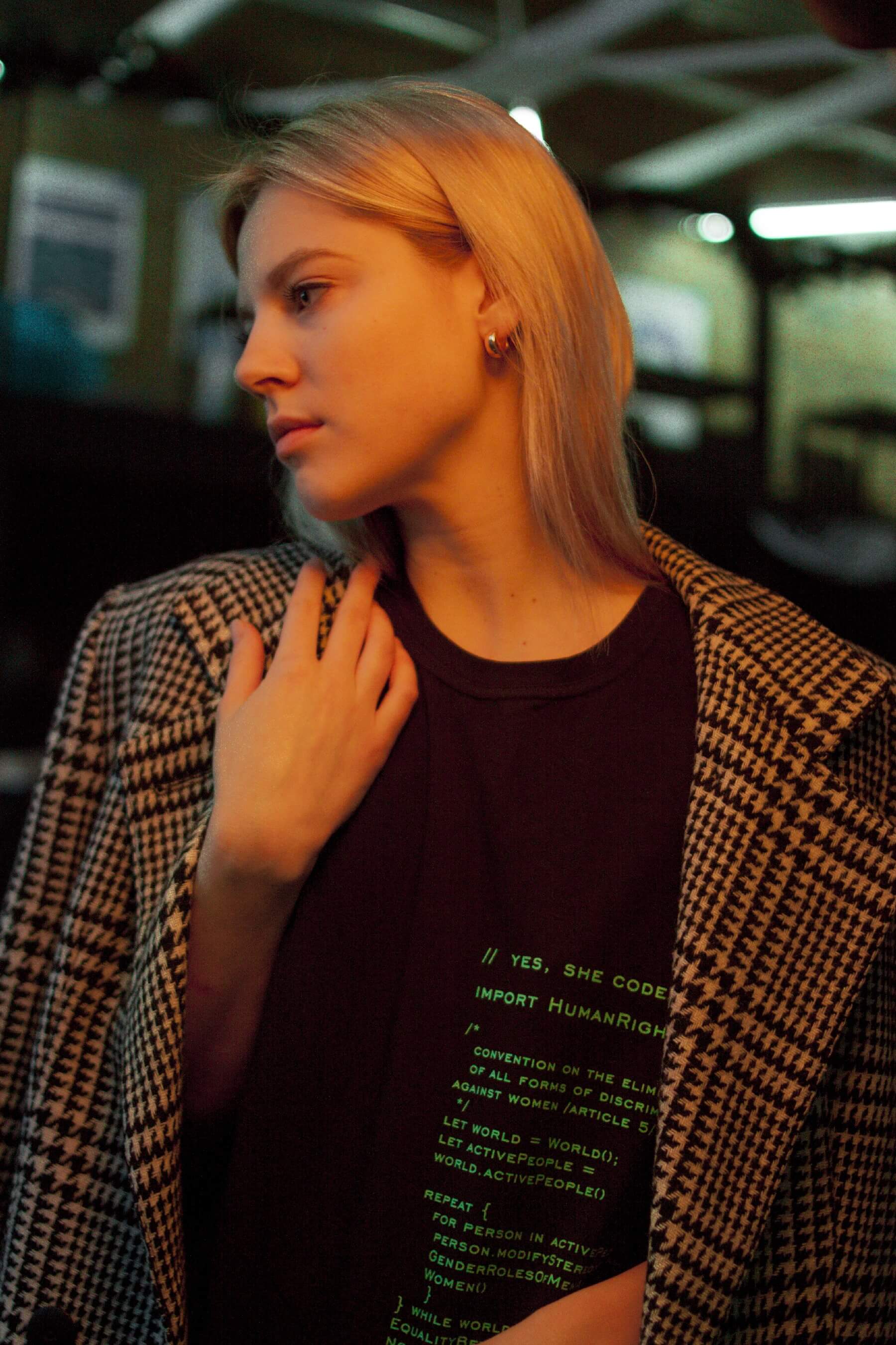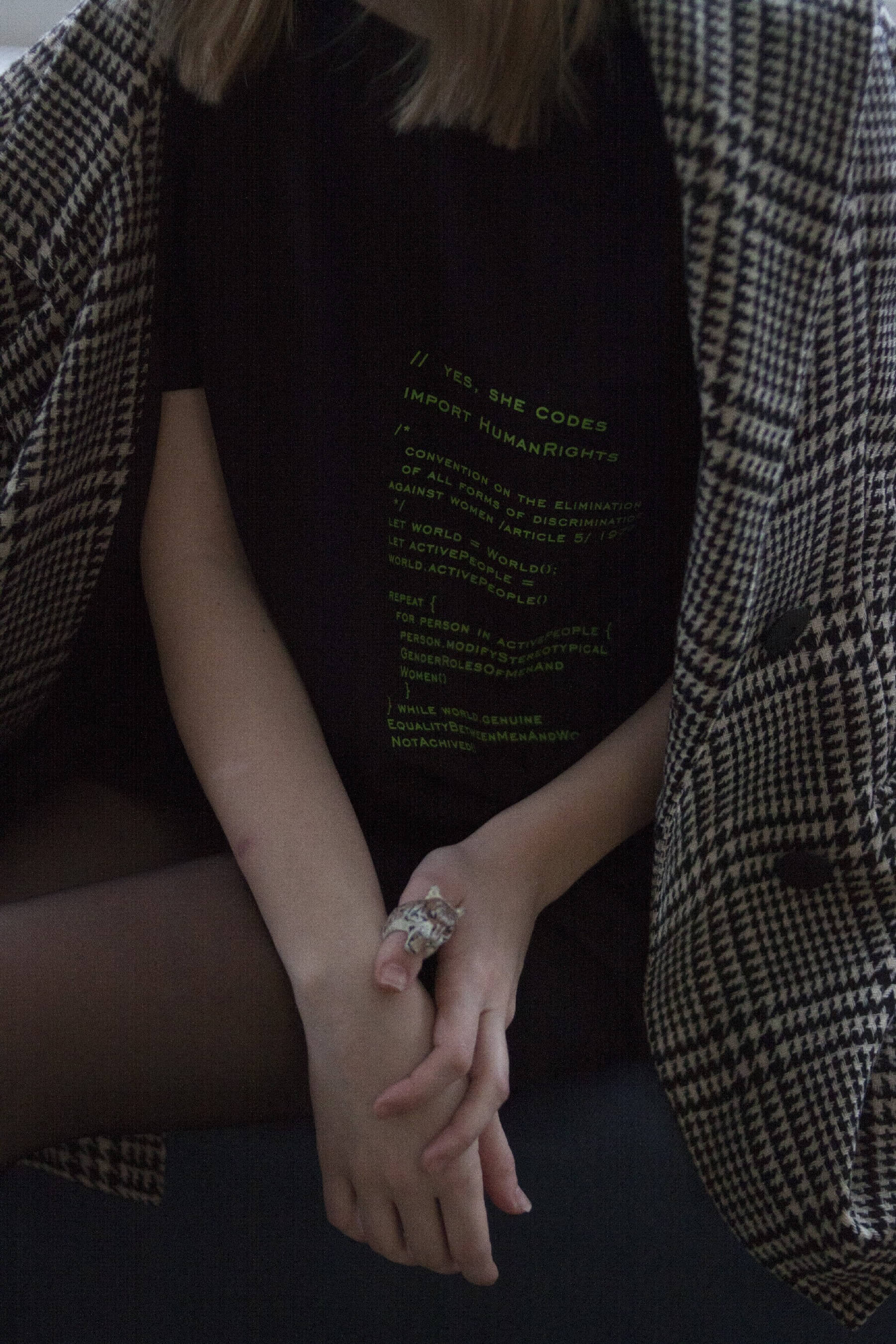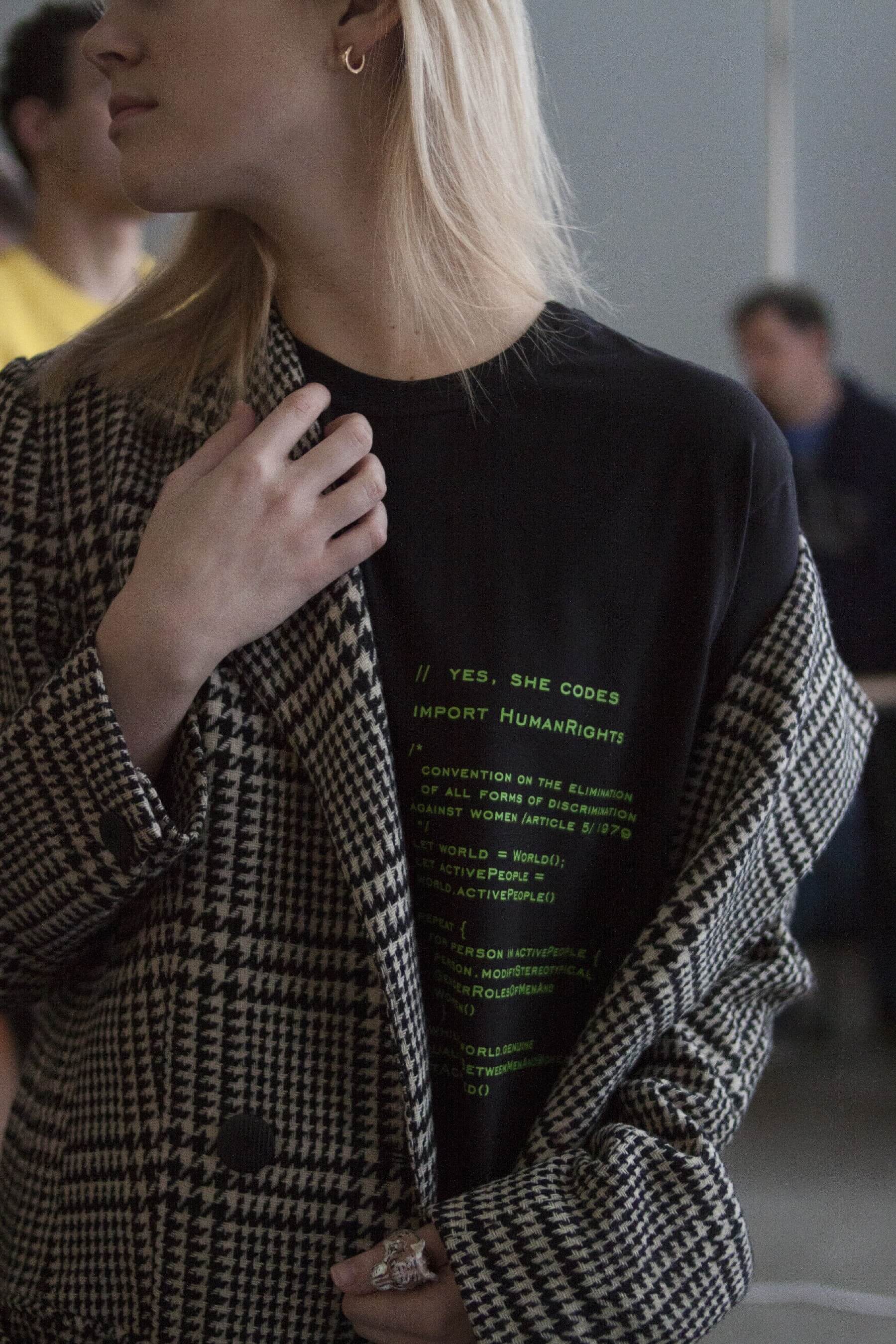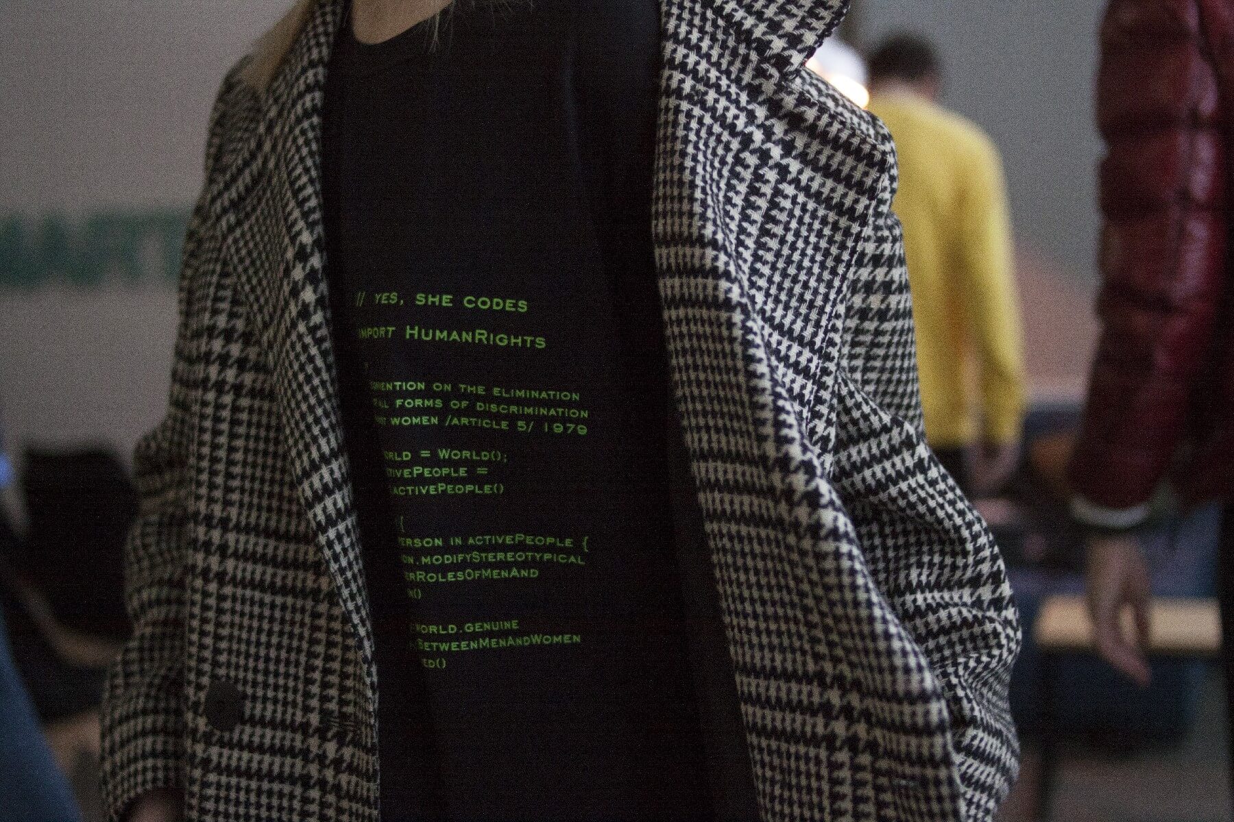Для популяризації програмування серед жінок команда розробила унікальний дизайн футболки у вигляді програмного коду з текстом з конвенції ООН 1979 року про руйнування стереотипів щодо жінок: "Для того щоб досягти рівності між чоловіками та жінками, ми маємо змінити уявлення про стереотипні ролі чоловіків та жінок". Частина коштів з продажу футболок піде на купівлю роботів mBot та квадрокоптерів RYZE Tello для дітей Академії Кодування.