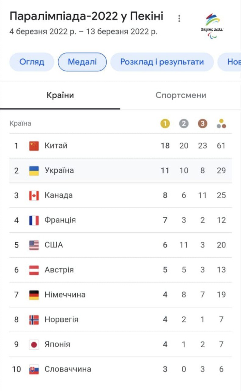 Паралімпійські ігри у Пекіні тривали з 4 по 13 березня.