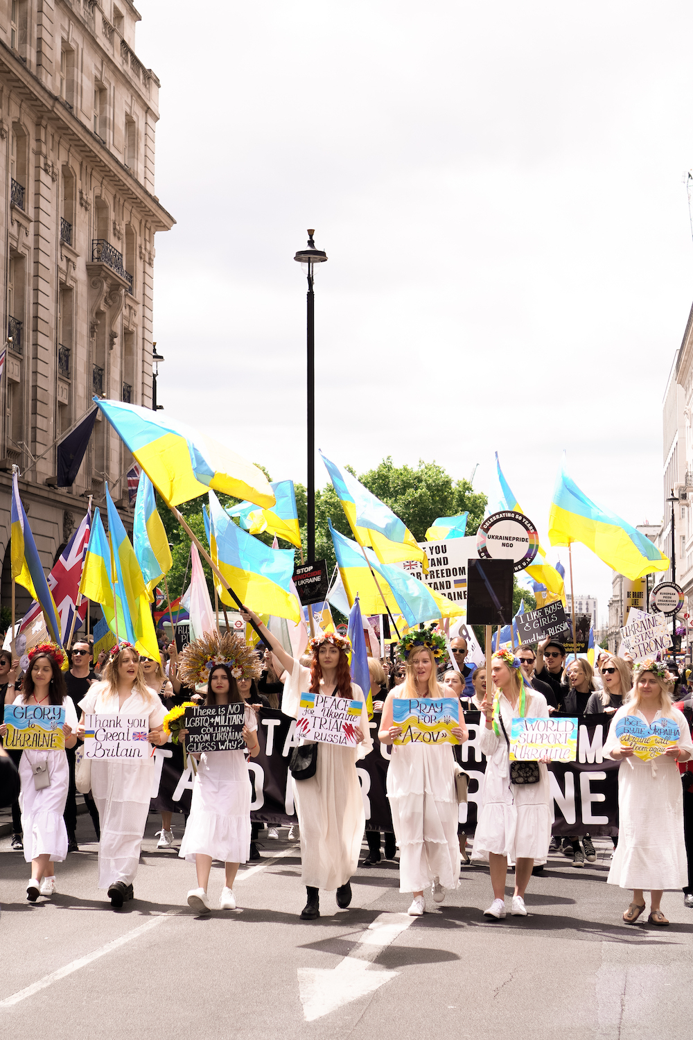 2 липня в Лондоні відбувся ювілейний 50-й Лондон Прайд, до якого долучилася офіційна українська колона у складі 50 представників. Вона була організована в партнерстві українського патріотичного квір-руху UKRAINEPRIDE та британсько-української волонтерської організації Support Ukraine. Її метою було привернути увагу до війни в Україні своїм маніфестом-проханням, який було розроблено у кооперації з Офісом Президента України.