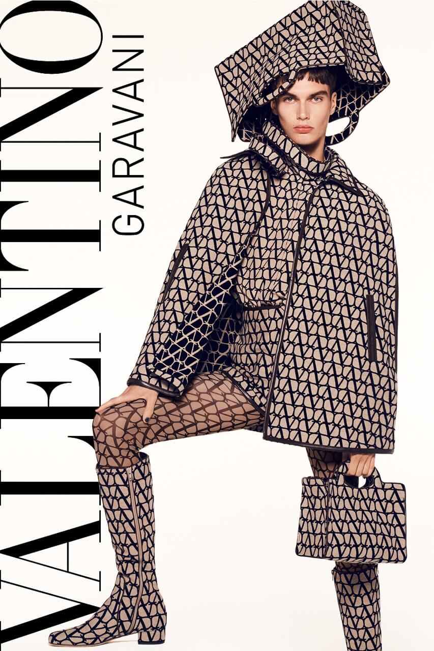 Valentino представили нову рекламну кампанію весна-літо – 2023. Її головний мотив – показати світу оновлену монограму модного дому. Нову ітерацію логотипа П’єрпаоло Піччолі сміливо назвав Toile Iconographe, що дослівно перекладається як "іконописне полотно".