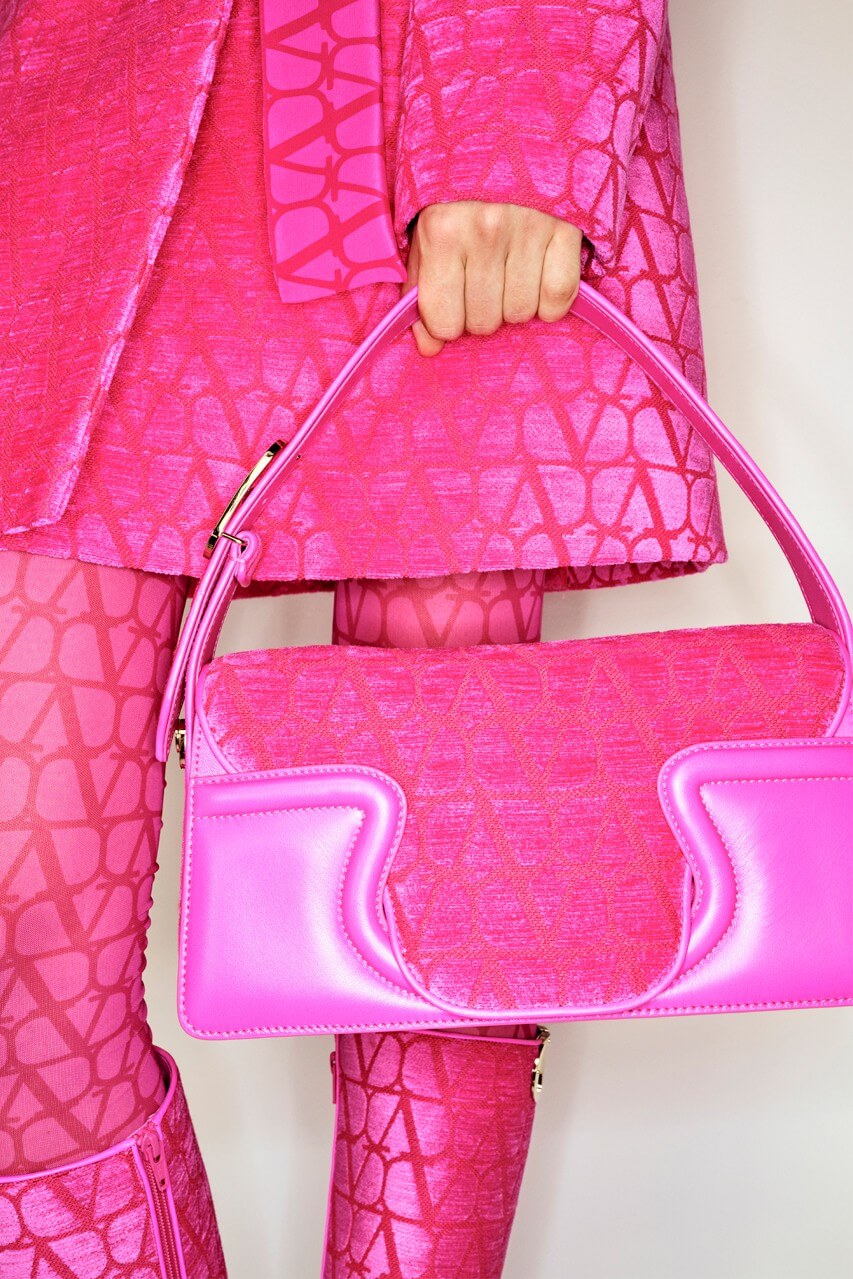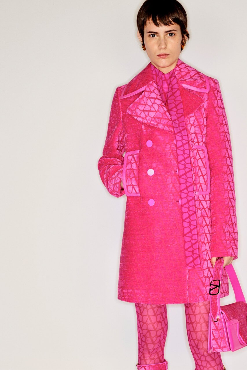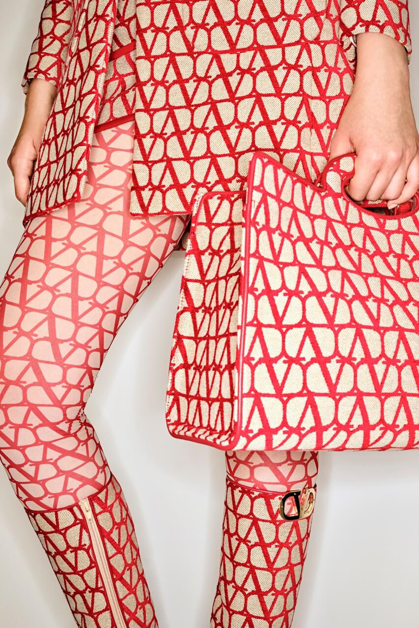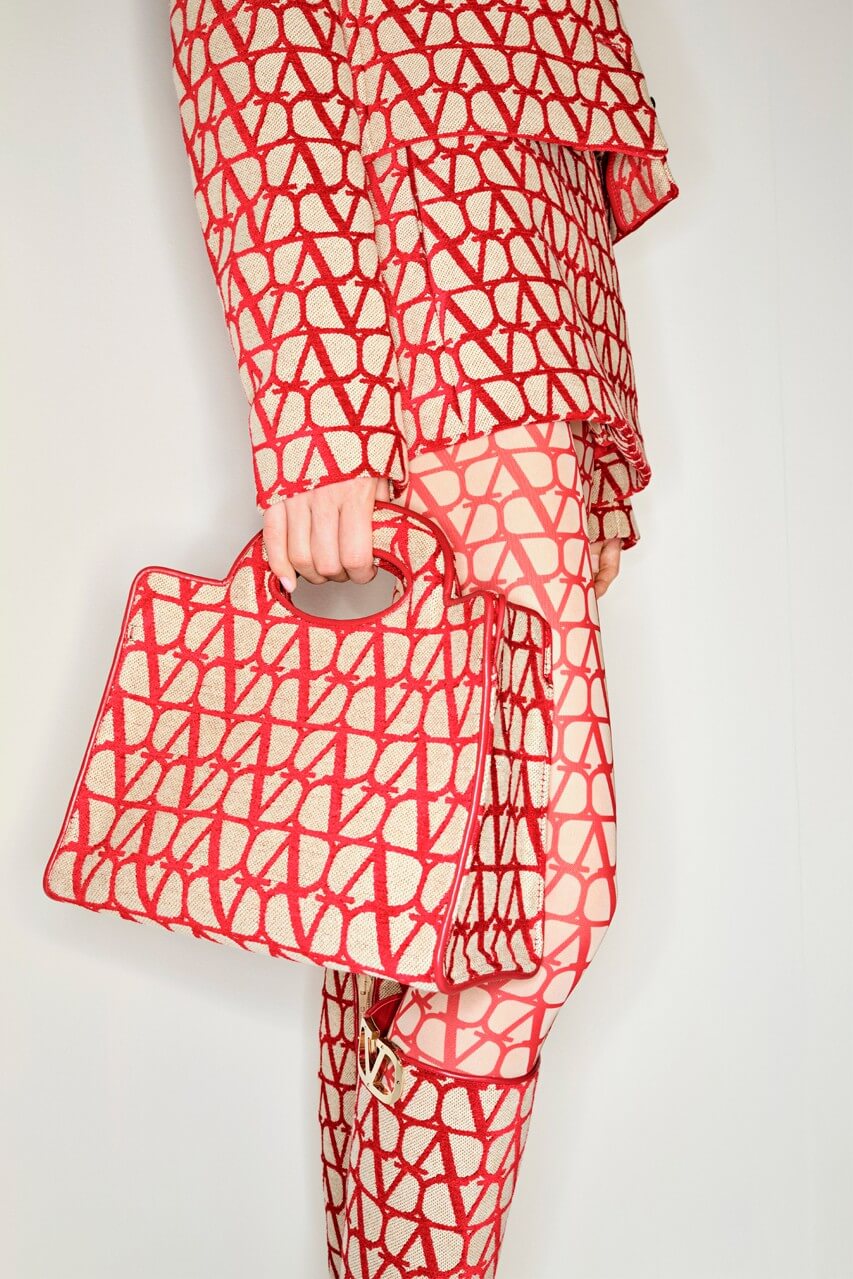 Пальта, сукні, чоботи, сумки, панами, шовкові хустки та інші аксесуари доповнюють контрастні монограми бренду у характерних червоних, чорних та рожевих відтінках. П’єрпаоло Піччолі стилізує total-образи з Toile Iconographe, не боячись знову звести логоманію на п’єдестал.