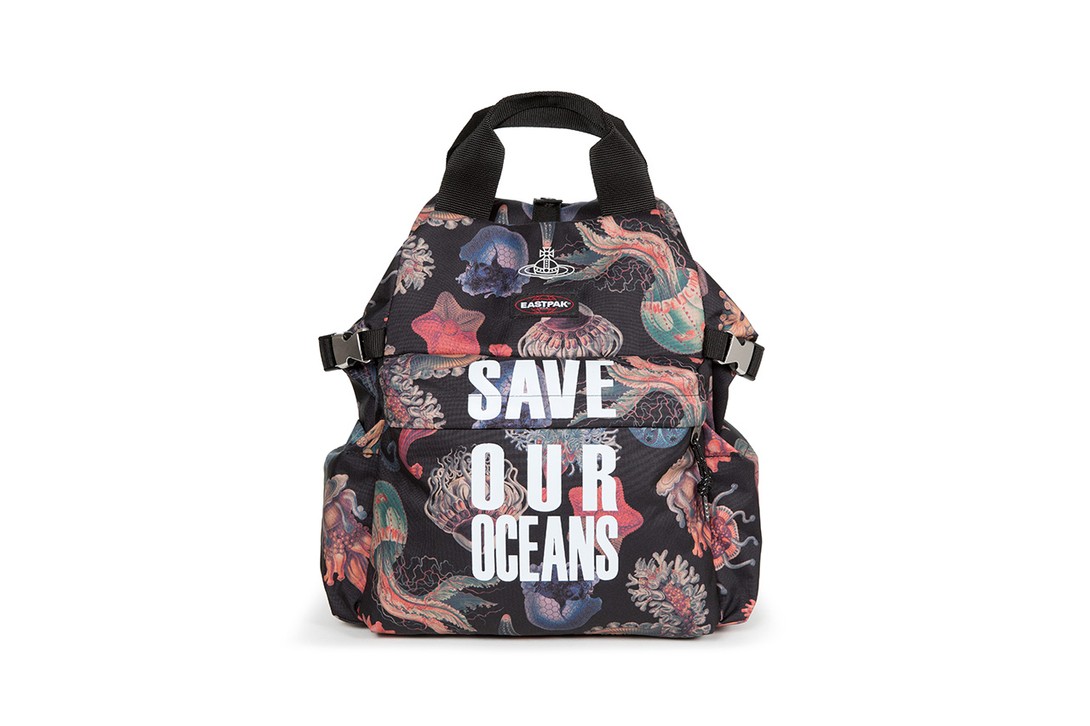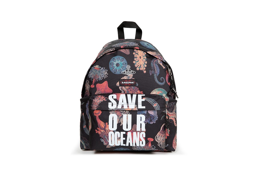 Vivienne Westwood выпустили совместную коллаборацию с Eastpak под названием Save Our Oceans. В коллекцию вошло 5 сумок, среди которых есть 2 рюкзака, чемодан, наплечная и поясная сумки.