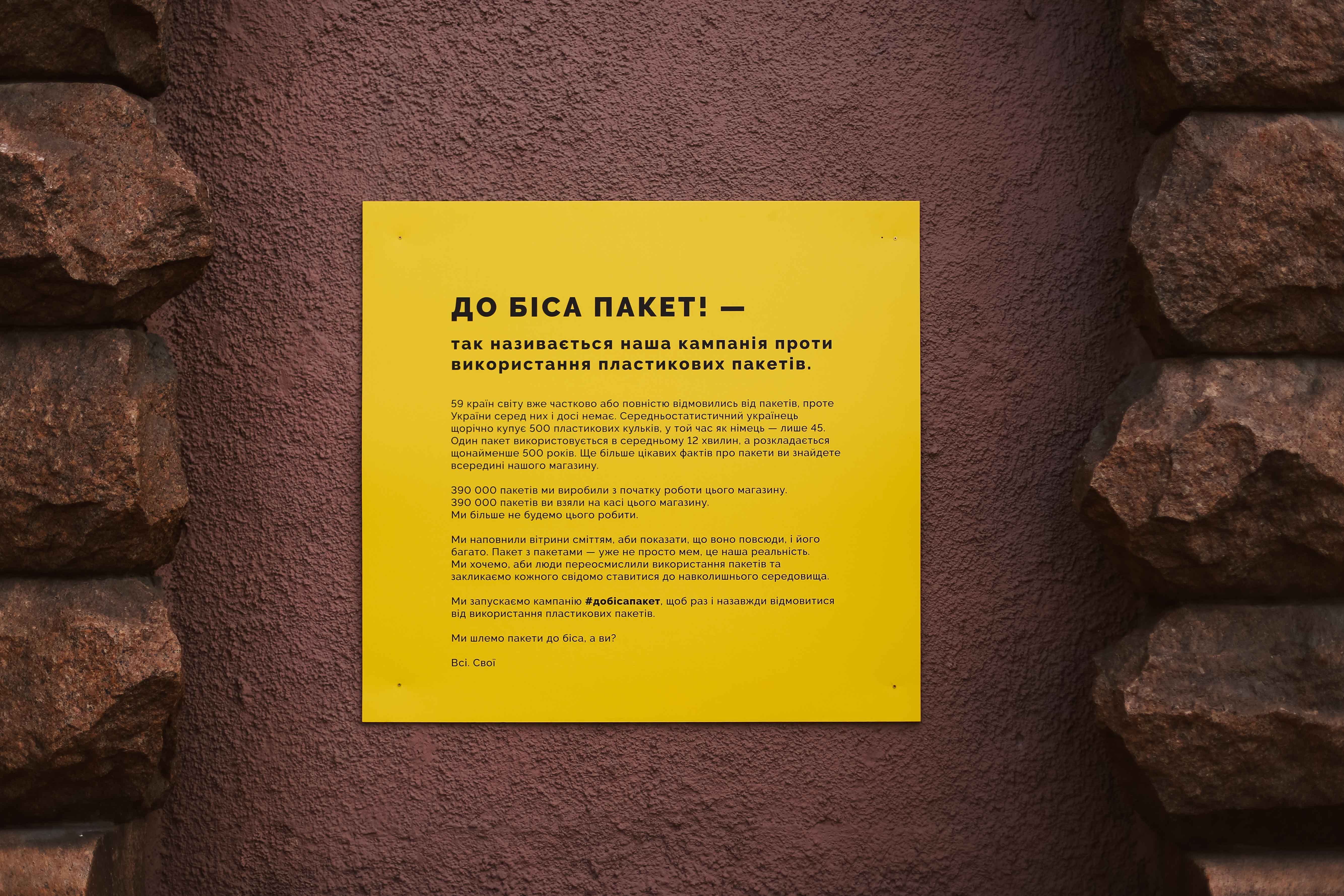 Пакет з пакетами — це вже не просто мем, це наша реальність. "Всі.Свої" розпочали кампанію проти використання пластикових пакетів, назвавши її “До біса пакет!”. У магазині відмовились від використання одноразового пластику, а вітрини заповнили пакетами.