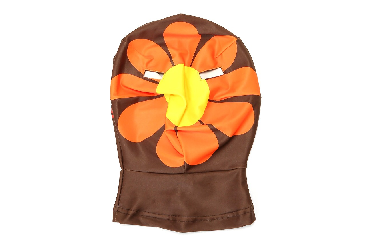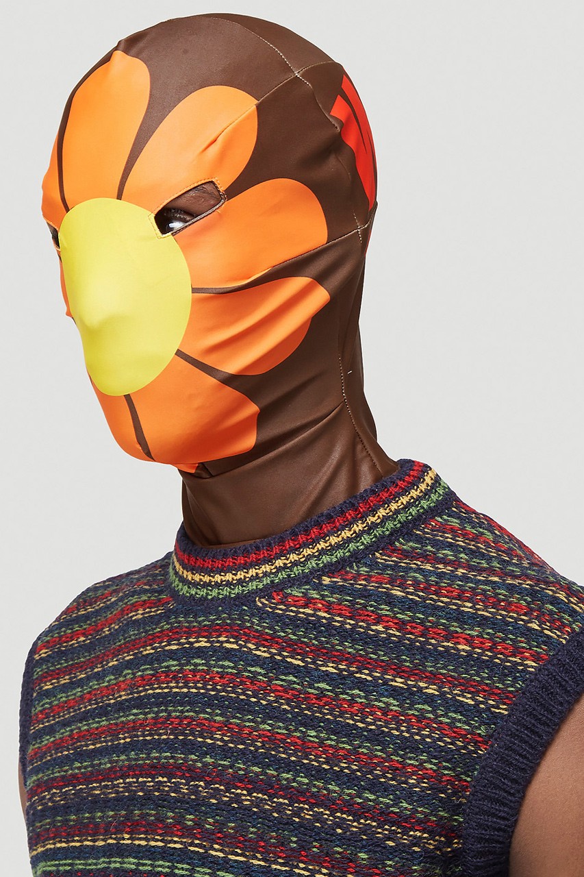 Маска изготовлена из эластичного джерси с вшитой потайной застежкой-молнией. Аксессуар украшен крупным цветочным принтом на лицевой части, а на задней разместилась надпись W:A.R., что означает Walter: About Rights.
