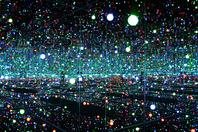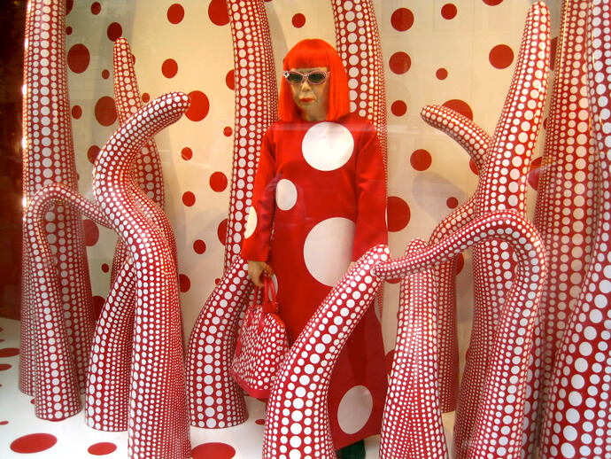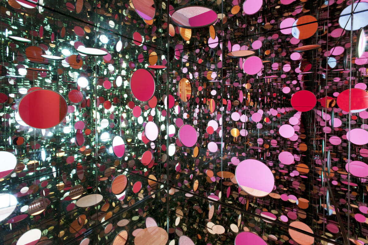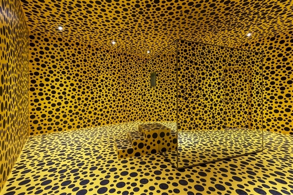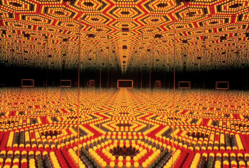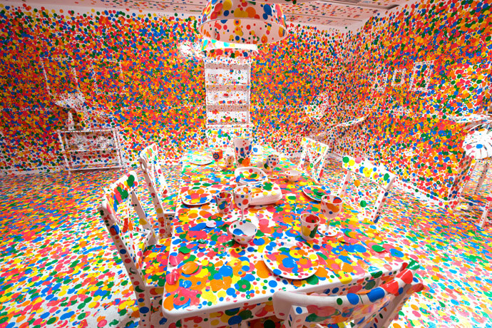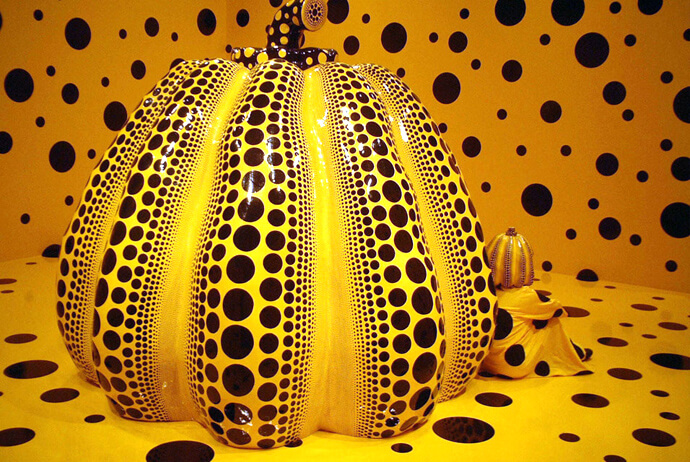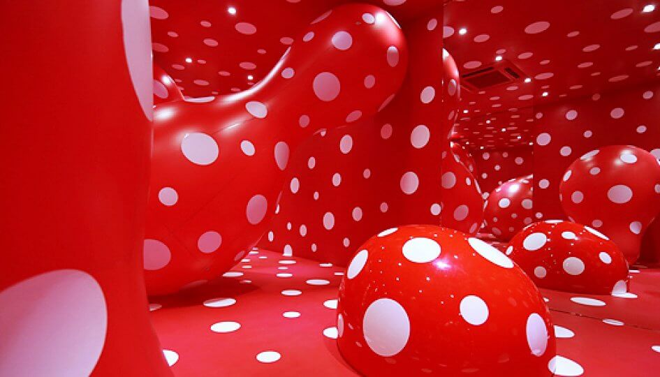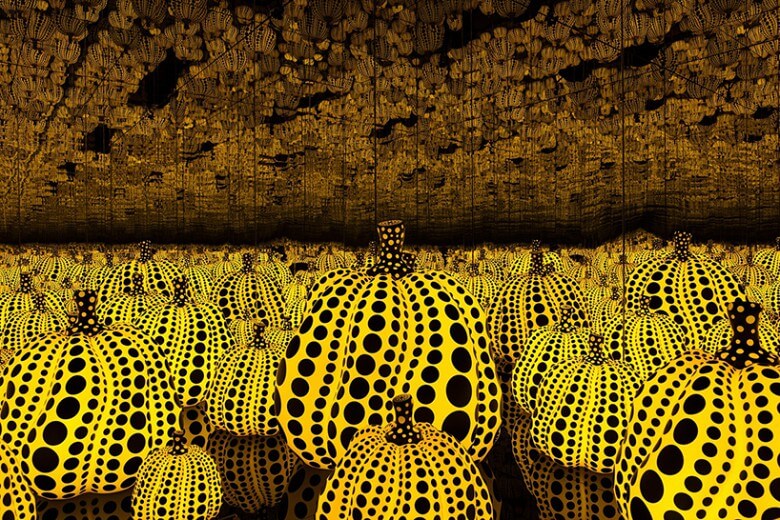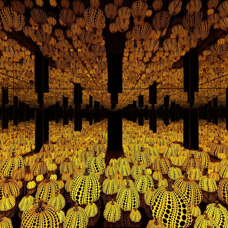 Визитной карточкой Яёи Кусамы являются крапинки и горох, она считает его символом энергии и всей жизни. Цветные горошины встречаются почти во всех работах женщины: от скульптур до стен музеев. В огромных комнатах с инсталляциями будет действовать правило 30 секунд — столько времени отведено каждому посетителю на фотографию.
