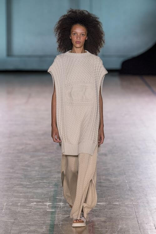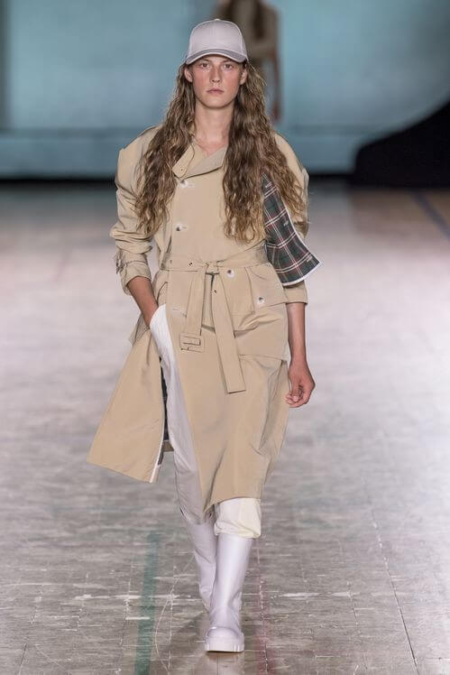 Весенняя коллекция Mark Kenly Domino Tan — это дань минимализму, сильным женщинам и их уважению к дресс-коду. В основу вошли упрощенные силуэты (например, платье-колонна и прямоугольные юбочные костюмы), цвет слоновой кости и новая элегантность — без кричащих деталей и с подчеркнутой простотой. Уверены, поклонницам старого Celine творчество Марка придется по душе.
