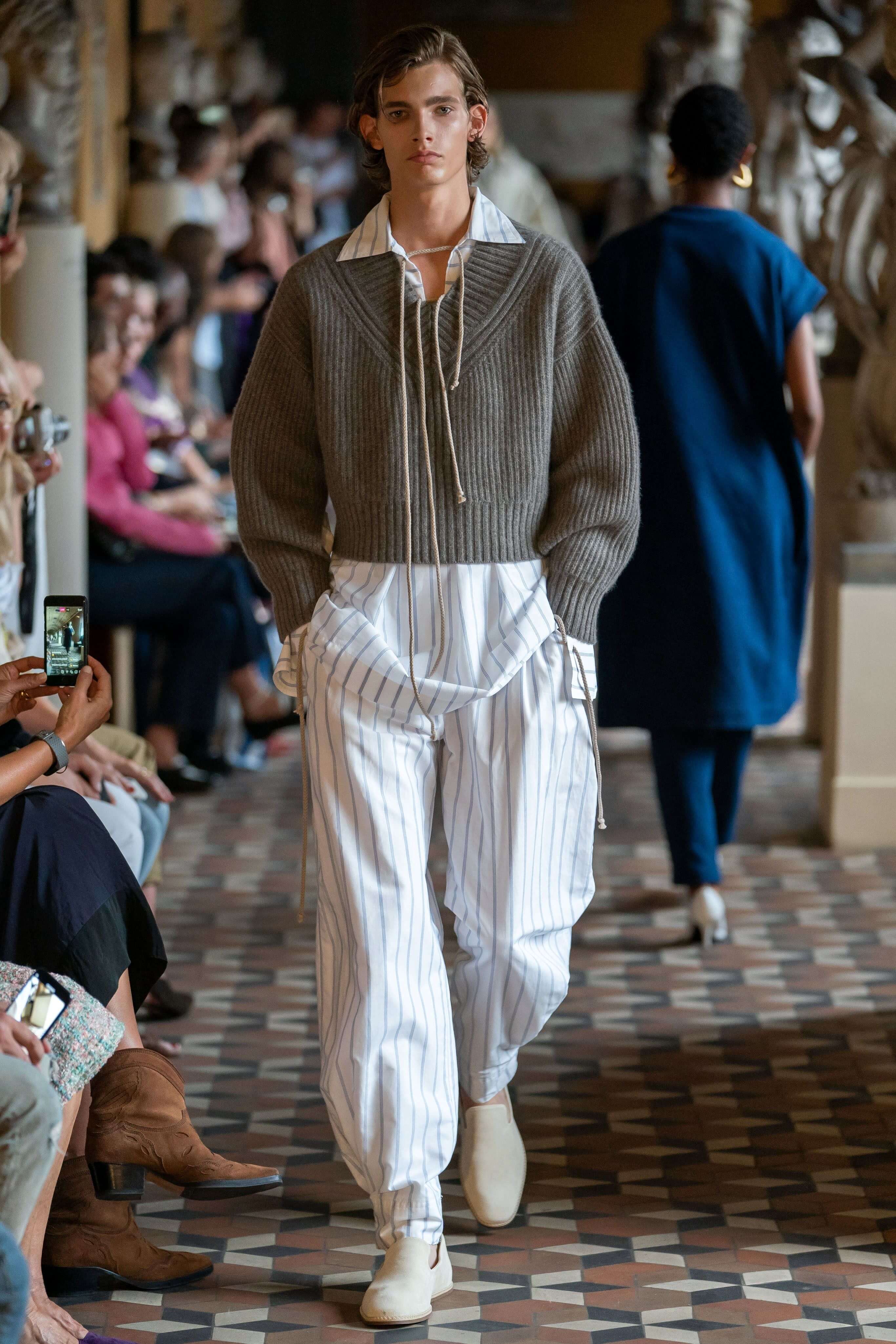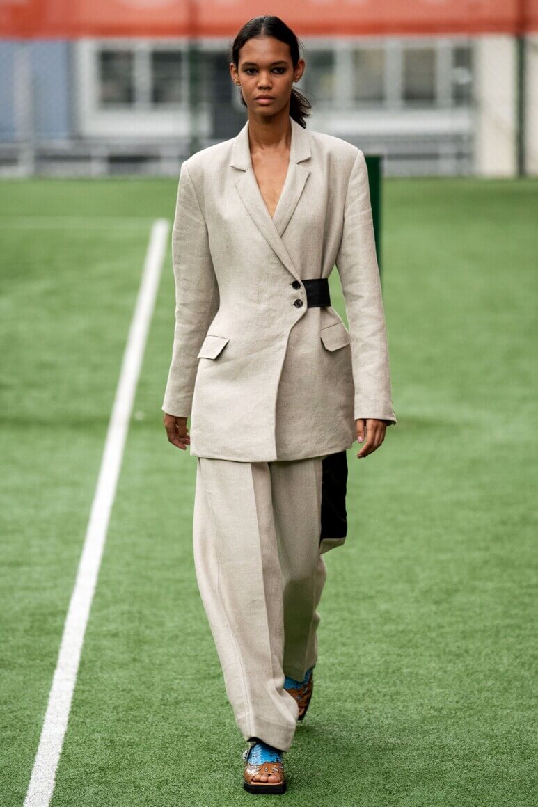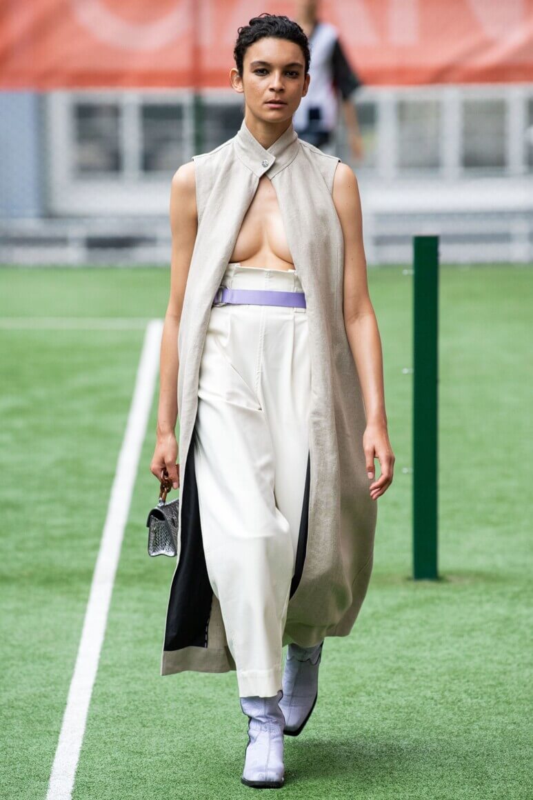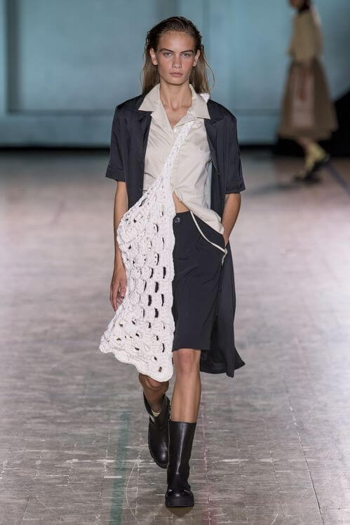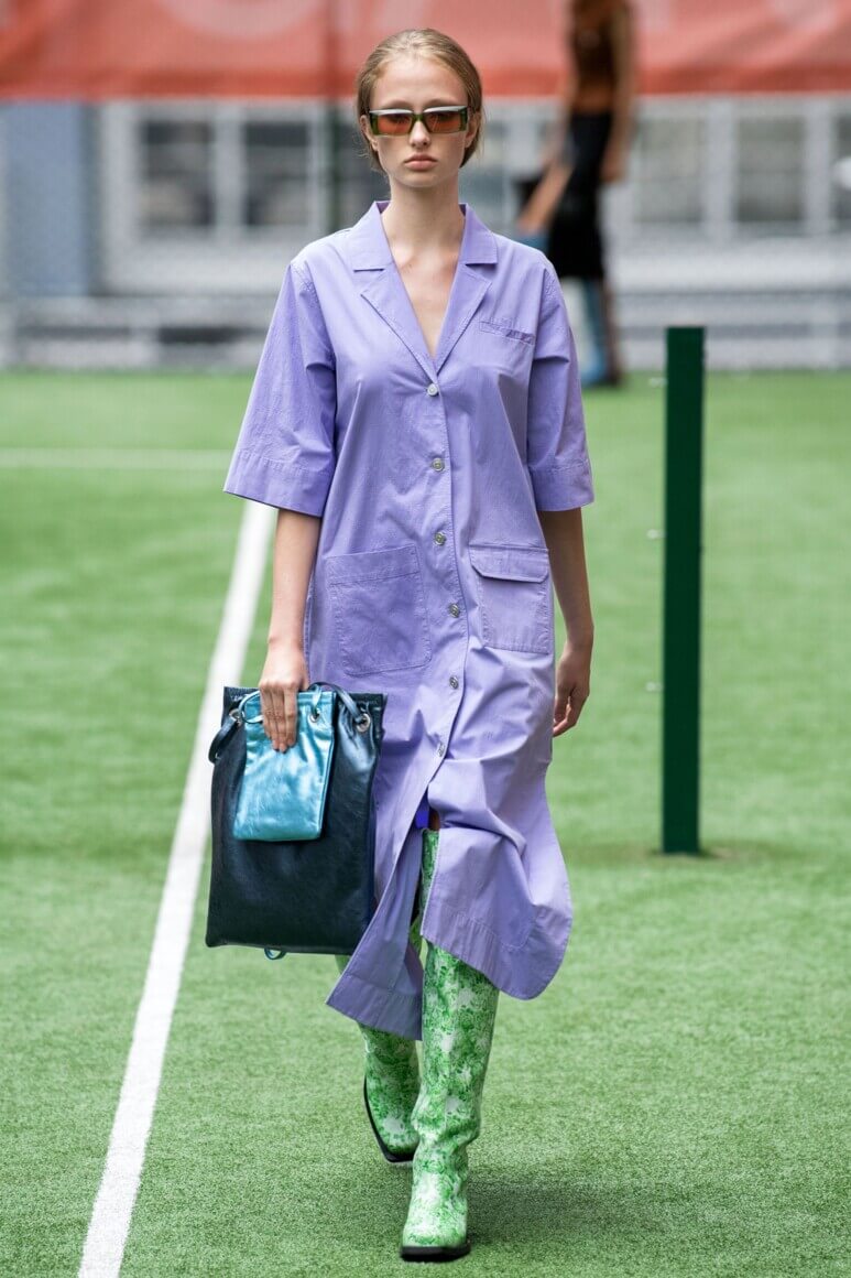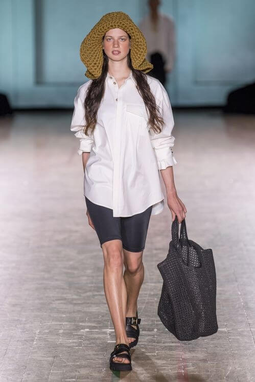 Holzweiler показали дачный шик, каким его видят в Скандинавии: вязаный свитер на плечах, резиновые сапоги, сумки-макраме и панамы. Стиль athleisure граничит с простотой изношенной одежды, которую не жалко выбросить после работы в саду или похода в лес. Неспроста коллекция пестрит рубашками, будто случайно найденными в папином гардеробе 80-х, кепками, которые защищают от солнца на время сбора урожая, и велосипедками — самыми консервативными шортами, по мнению жителей сельской местности. Будь Симон Порт Жакмюс родом из Норвегии, его коллекции выглядели бы именно так — вот только провансальские традиции уступили бы место строгому стилю жителей севера.