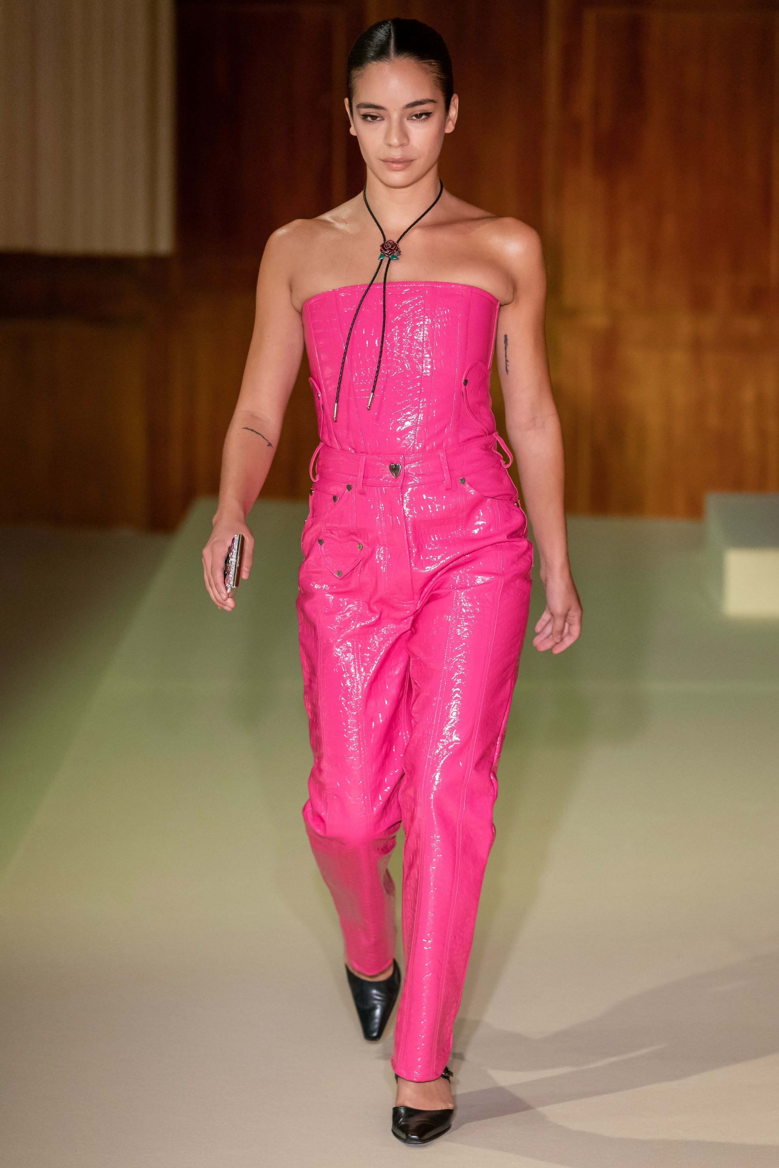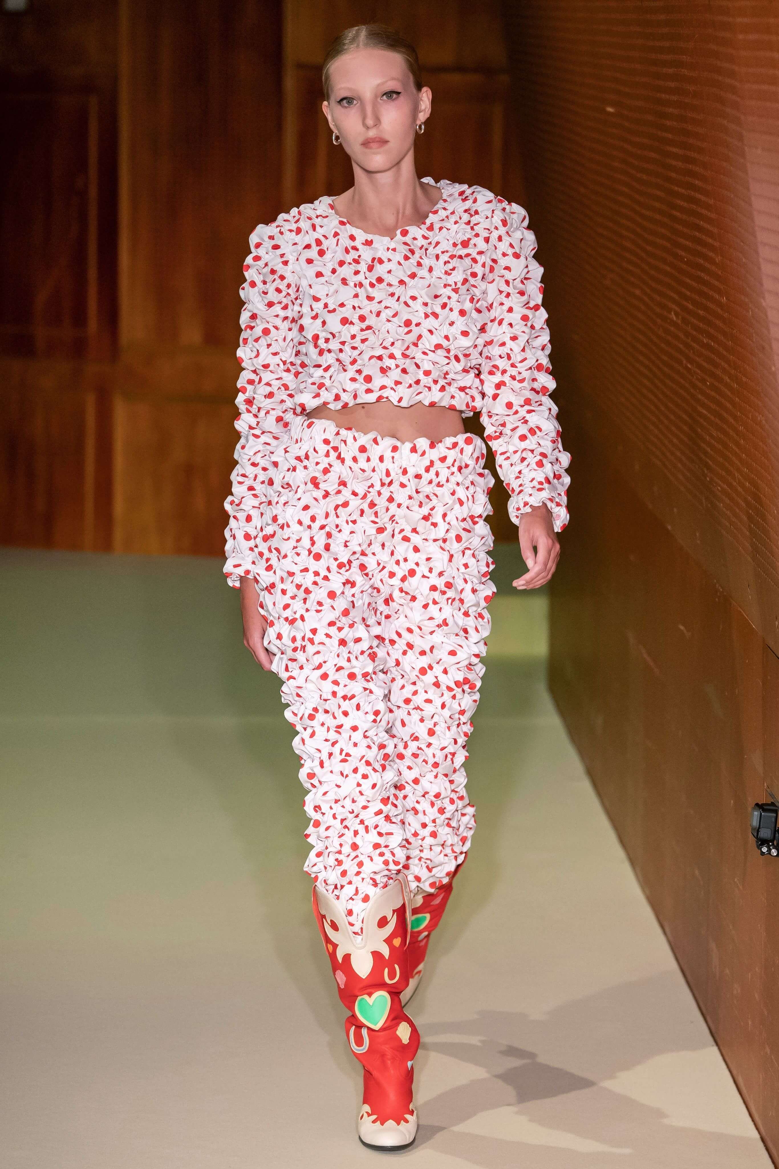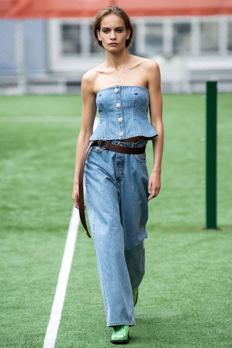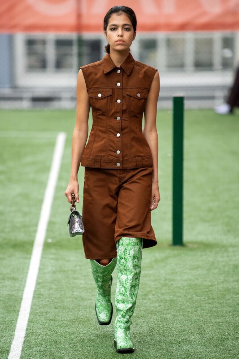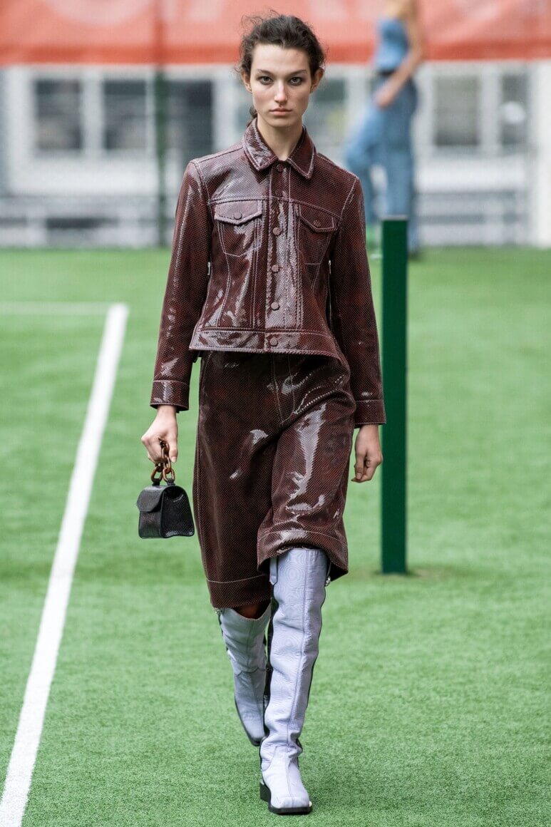Датский бренд посвятил коллекцию Селене Кинтанилье-Перес — латиноамериканской певице, убитой своим менеджером в 1995 году. Кожаные мини, расшитый красный бра, ковбойские сапоги и шляпы отсылают к стилю певицы, а деним вместе с объемными кожаными тренчами и кроп-топами — это наследие американских 90-х. Неудивительно, что Saks Potts — один из любимых скандинавских брендов американцев, включая Бейонсе, Рианну, Селену Гомес и сестер Хадид.