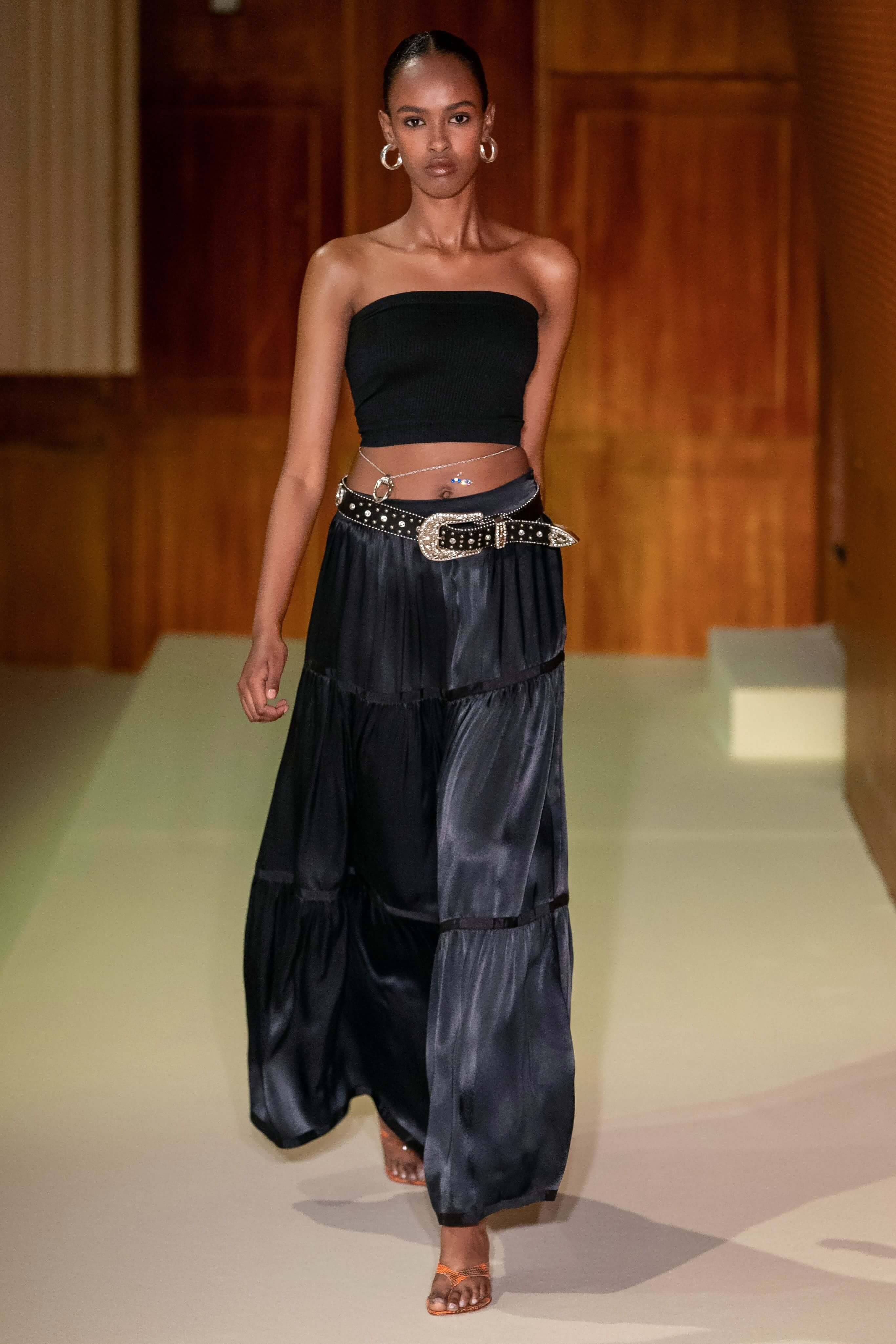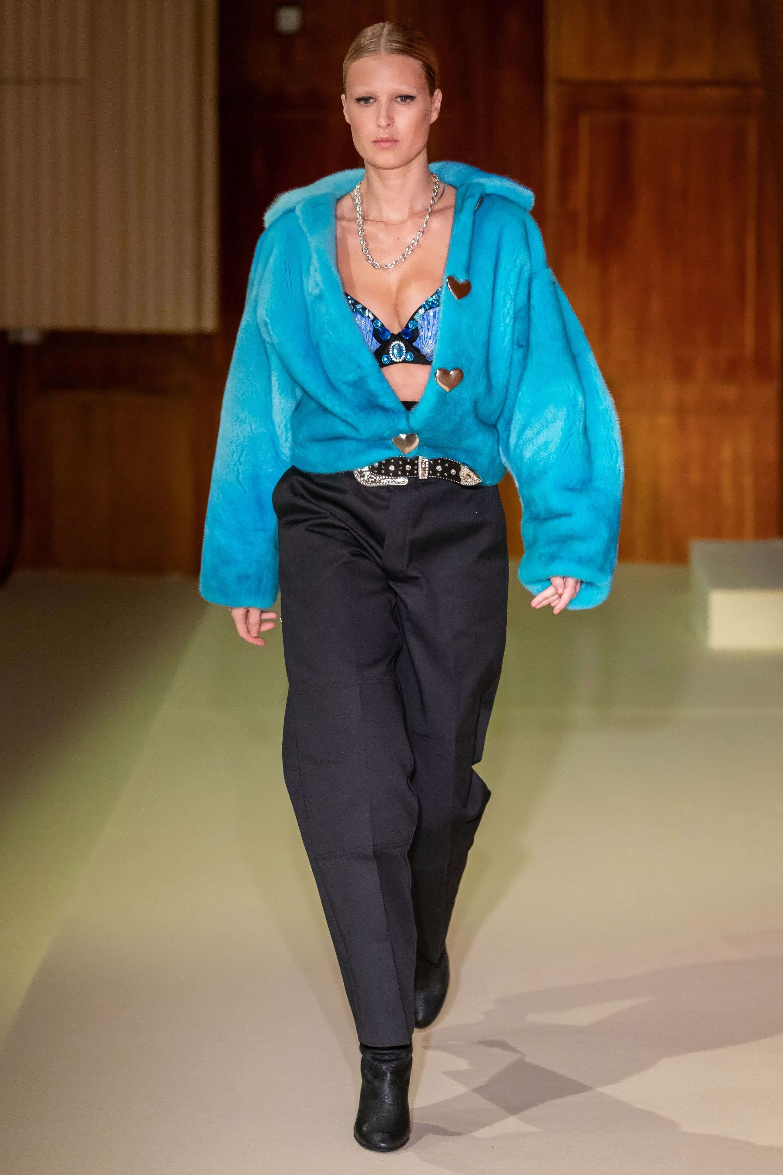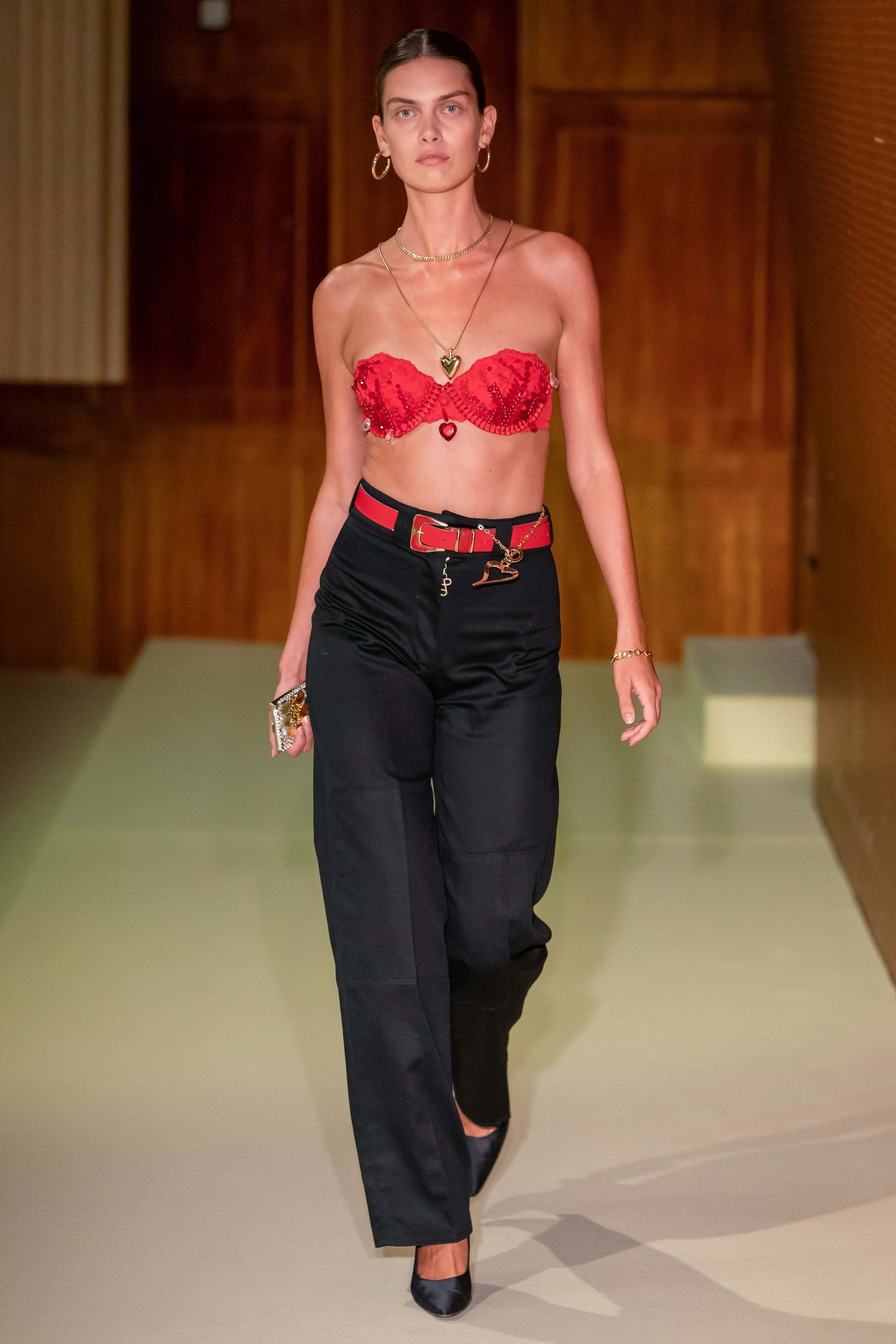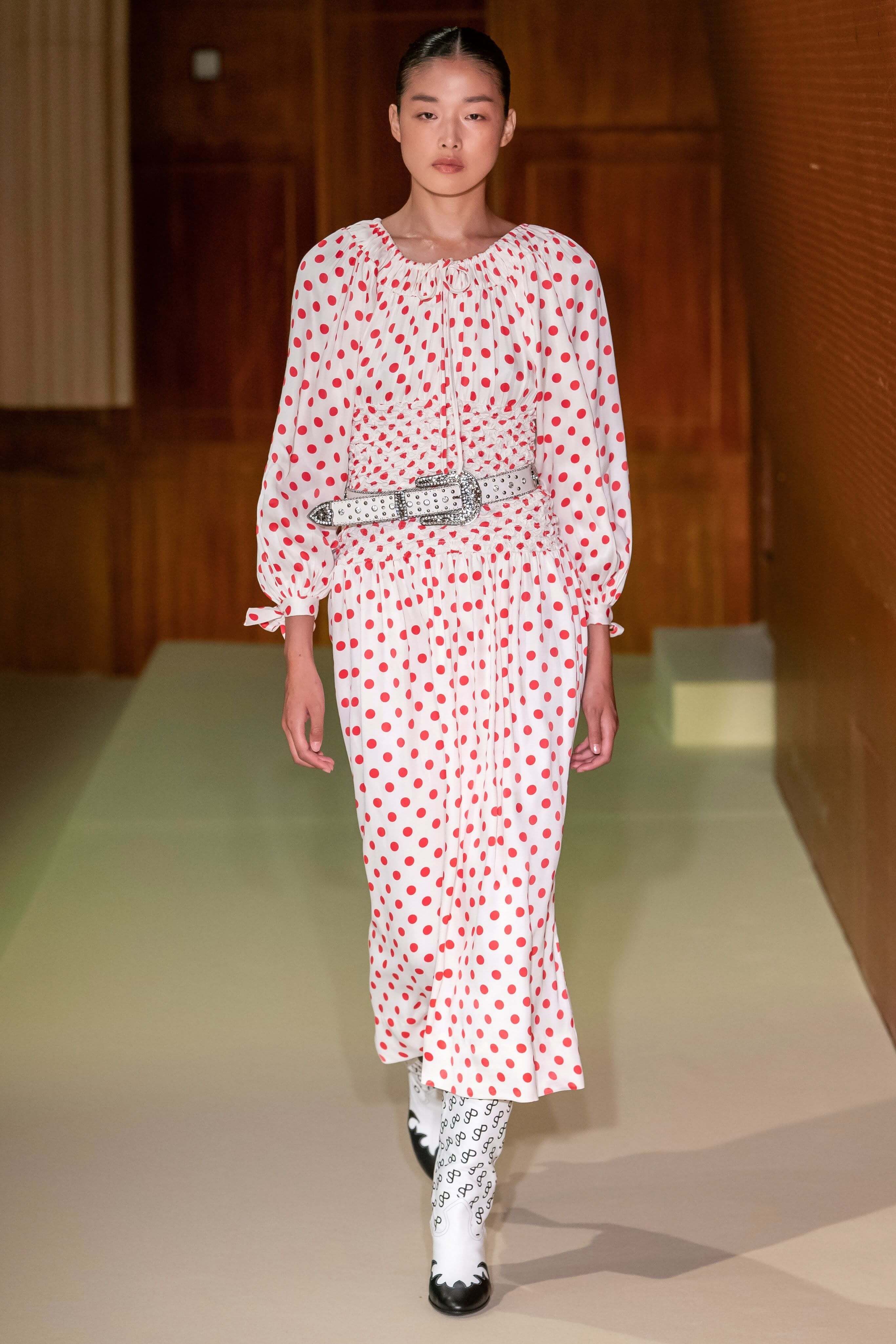 Датский бренд посвятил коллекцию Селене Кинтанилье-Перес — латиноамериканской певице, убитой своим менеджером в 1995 году. Кожаные мини, расшитый красный бра, ковбойские сапоги и шляпы отсылают к стилю певицы, а деним вместе с объемными кожаными тренчами и кроп-топами — это наследие американских 90-х. Неудивительно, что Saks Potts — один из любимых скандинавских брендов американцев, включая Бейонсе, Рианну, Селену Гомес и сестер Хадид.