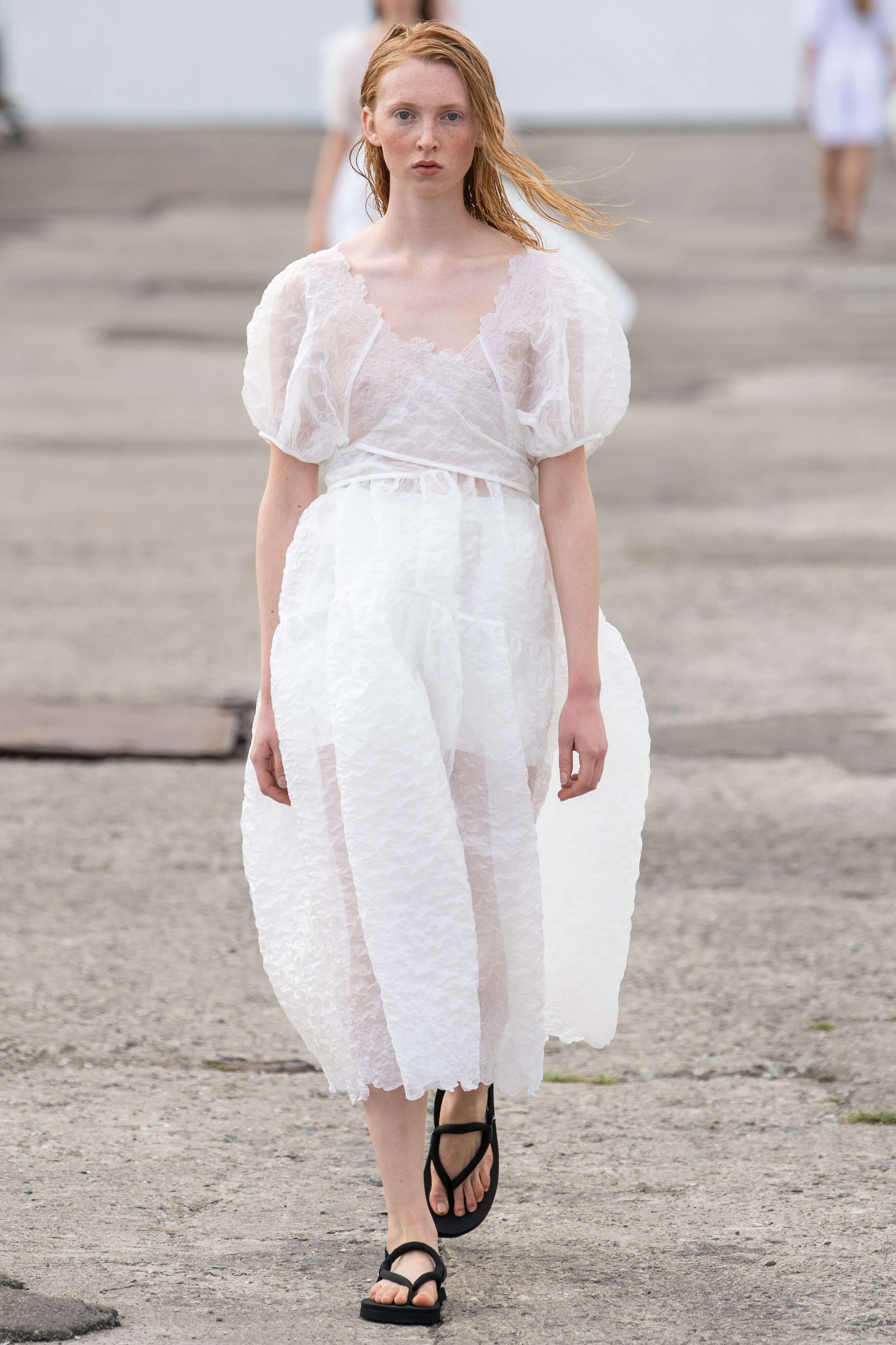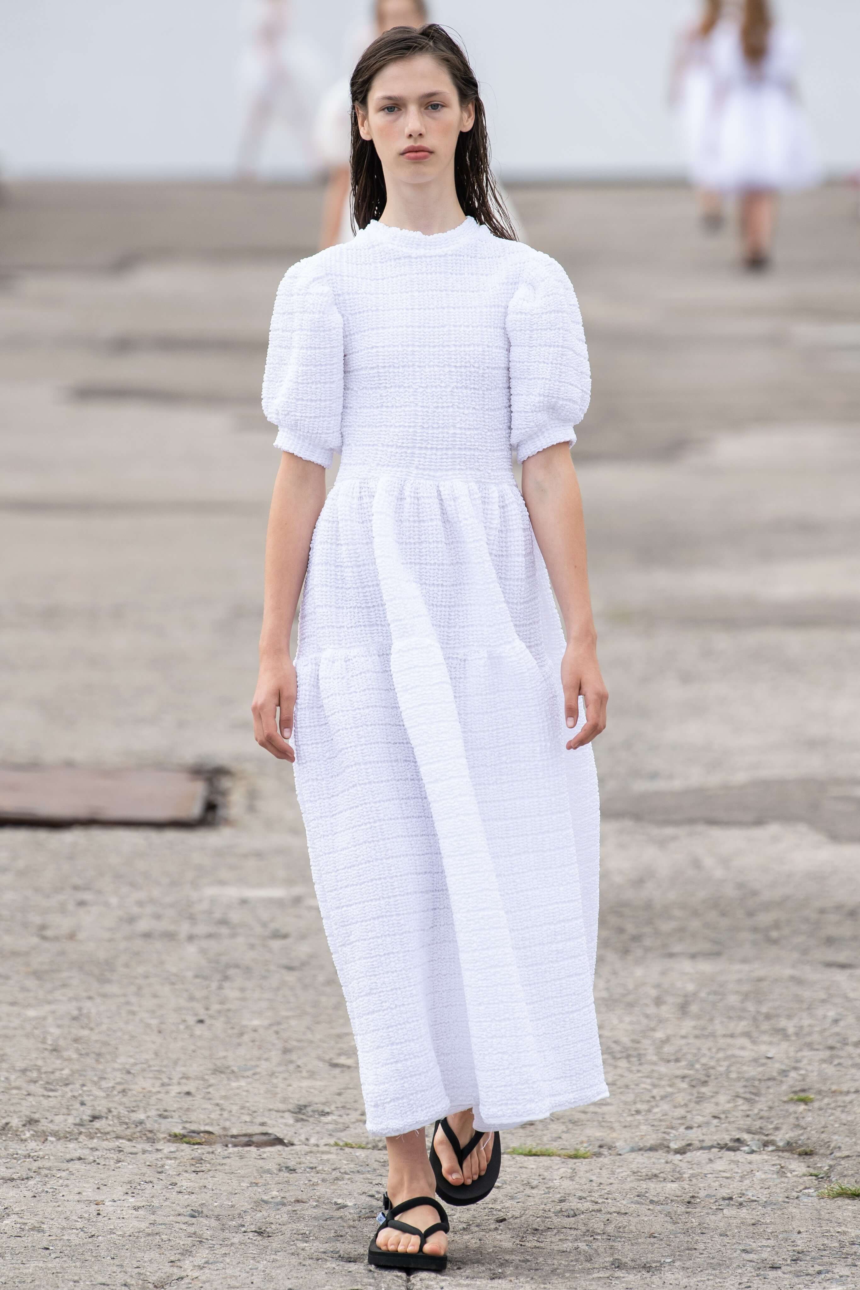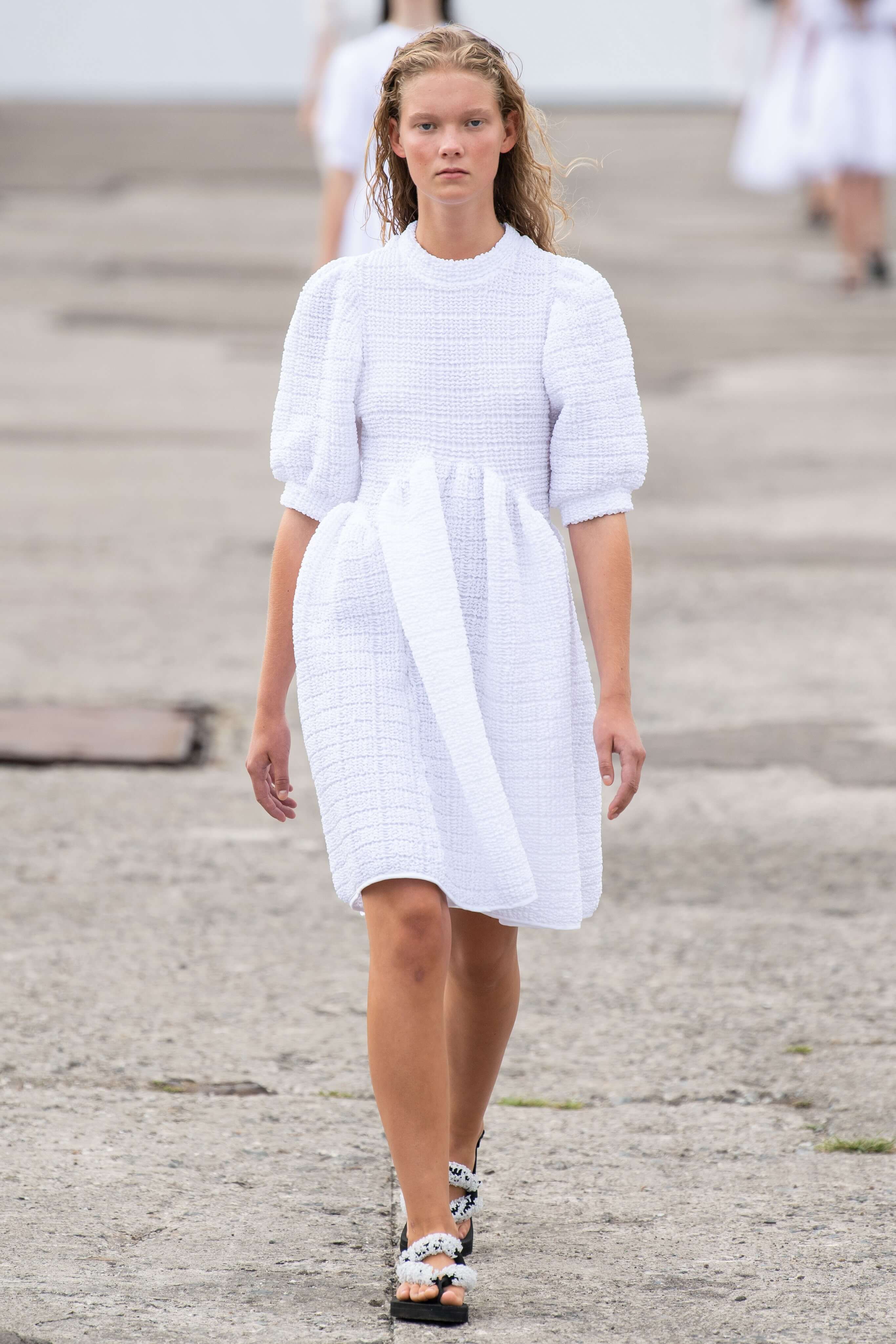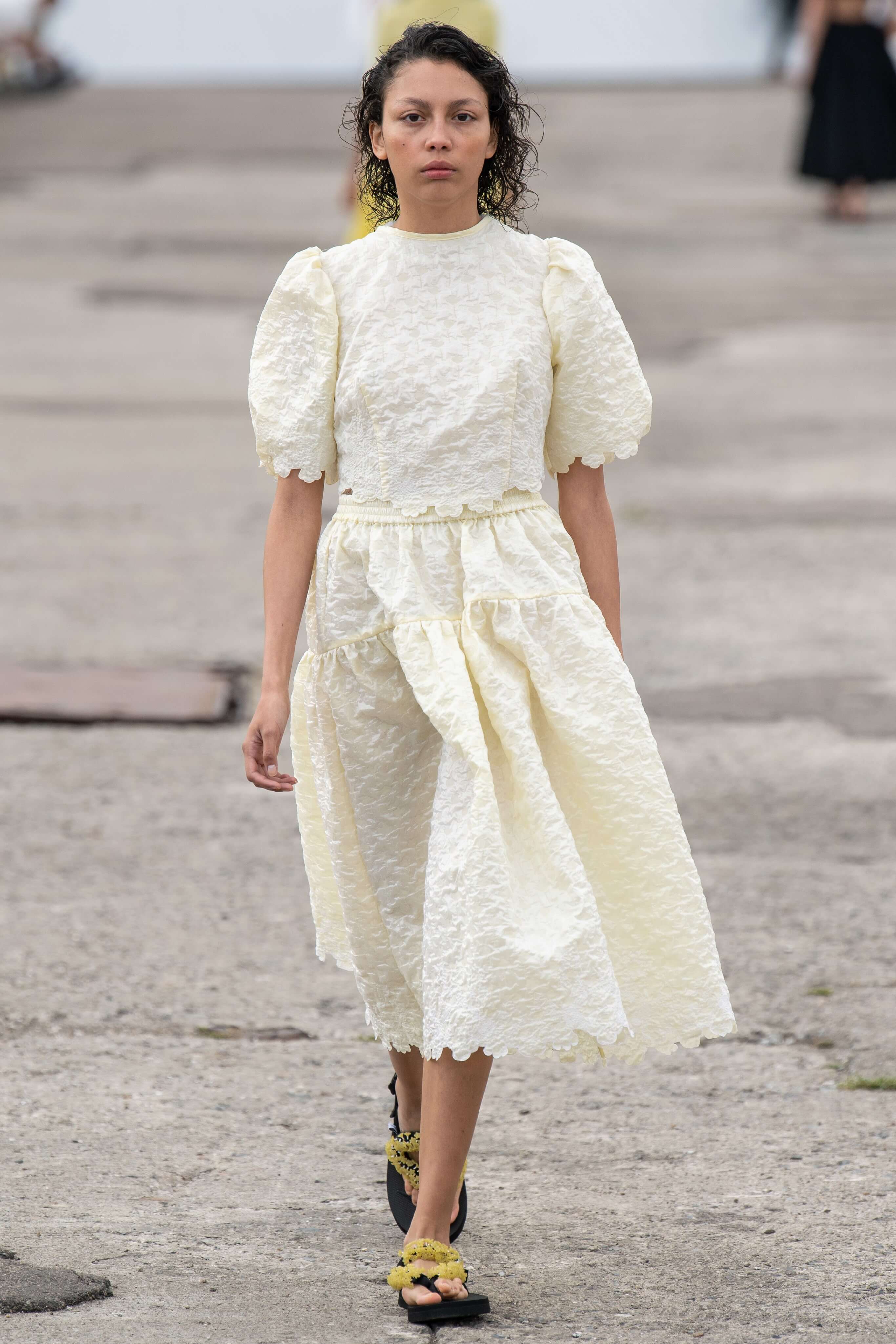Бренд появился в 2015 году и с тех пор стал воплощением скандинавской романтики: рукава-буфы, банты, объемные, но в то же время расслабленные силуэты. В этом сезоне основательница бренда Сесиль снова показала характерные платья baby-doll и монохромные образы, но после четырех лет в индустрии решила выйти за рамки, не ограничиваясь узнаваемыми силуэтами.