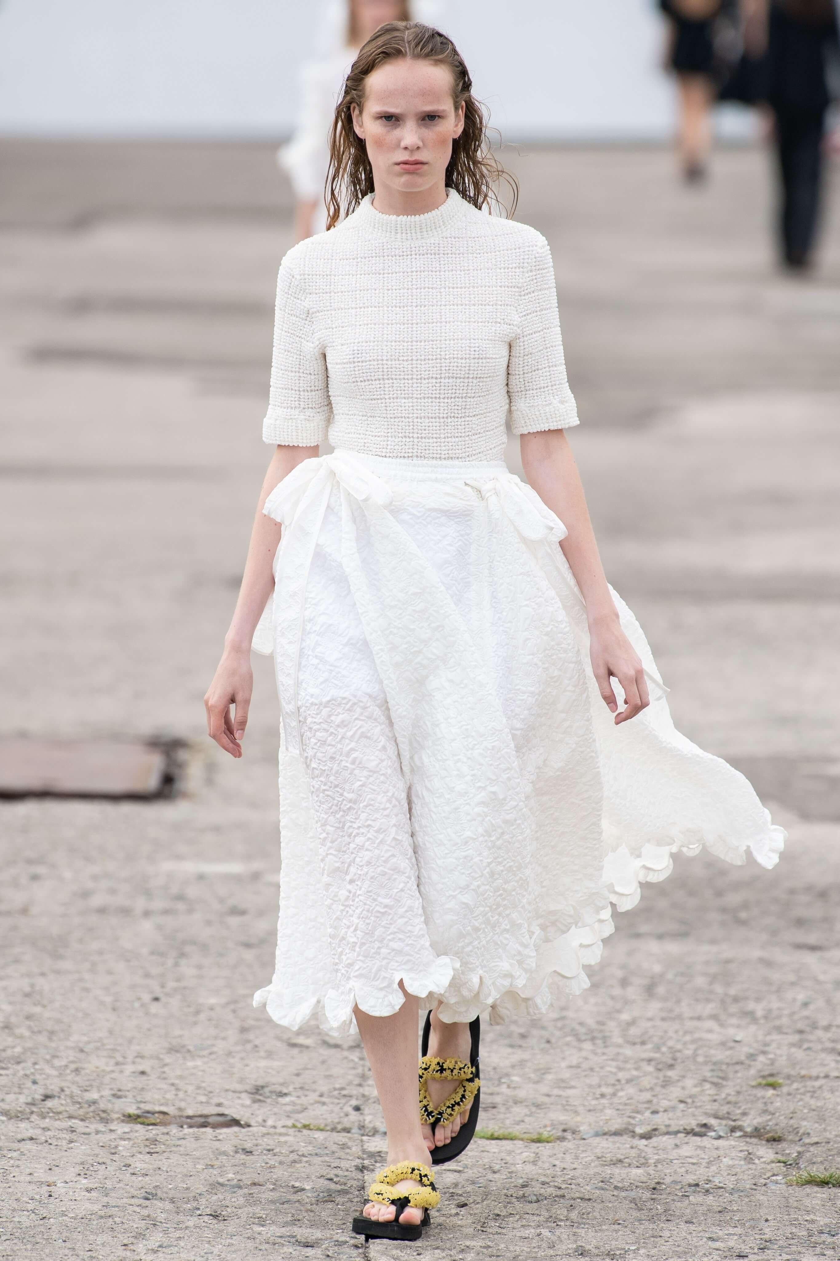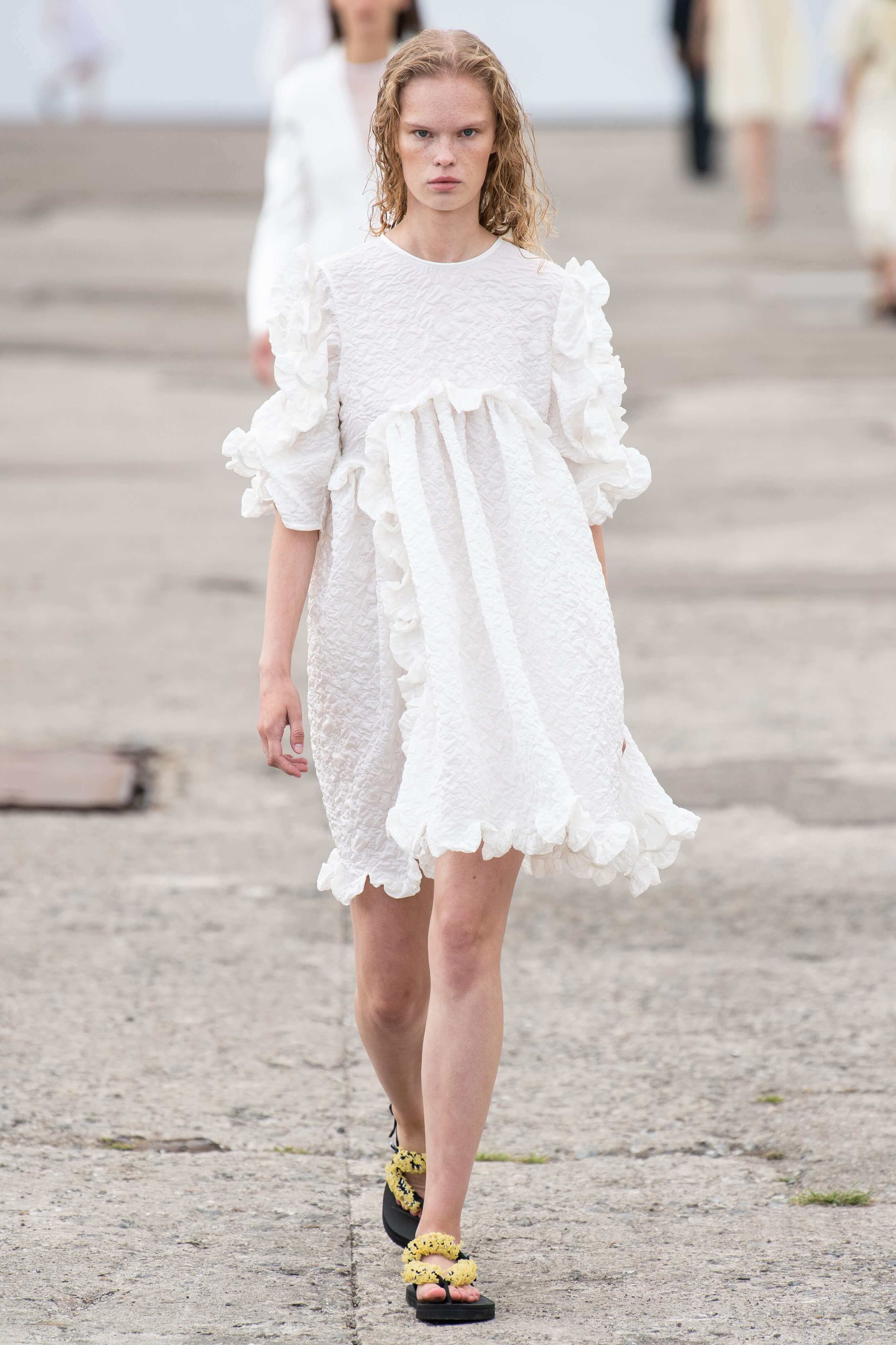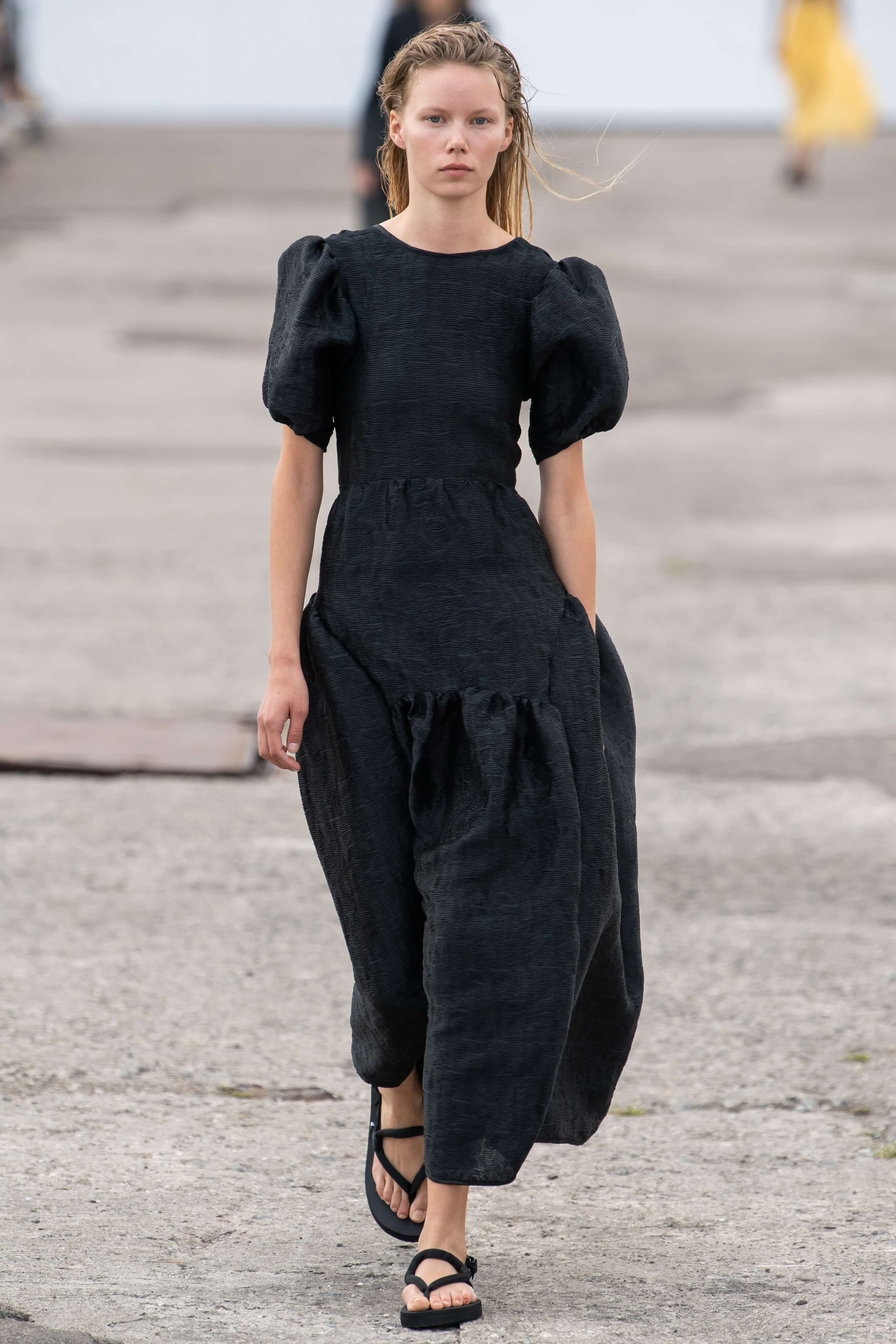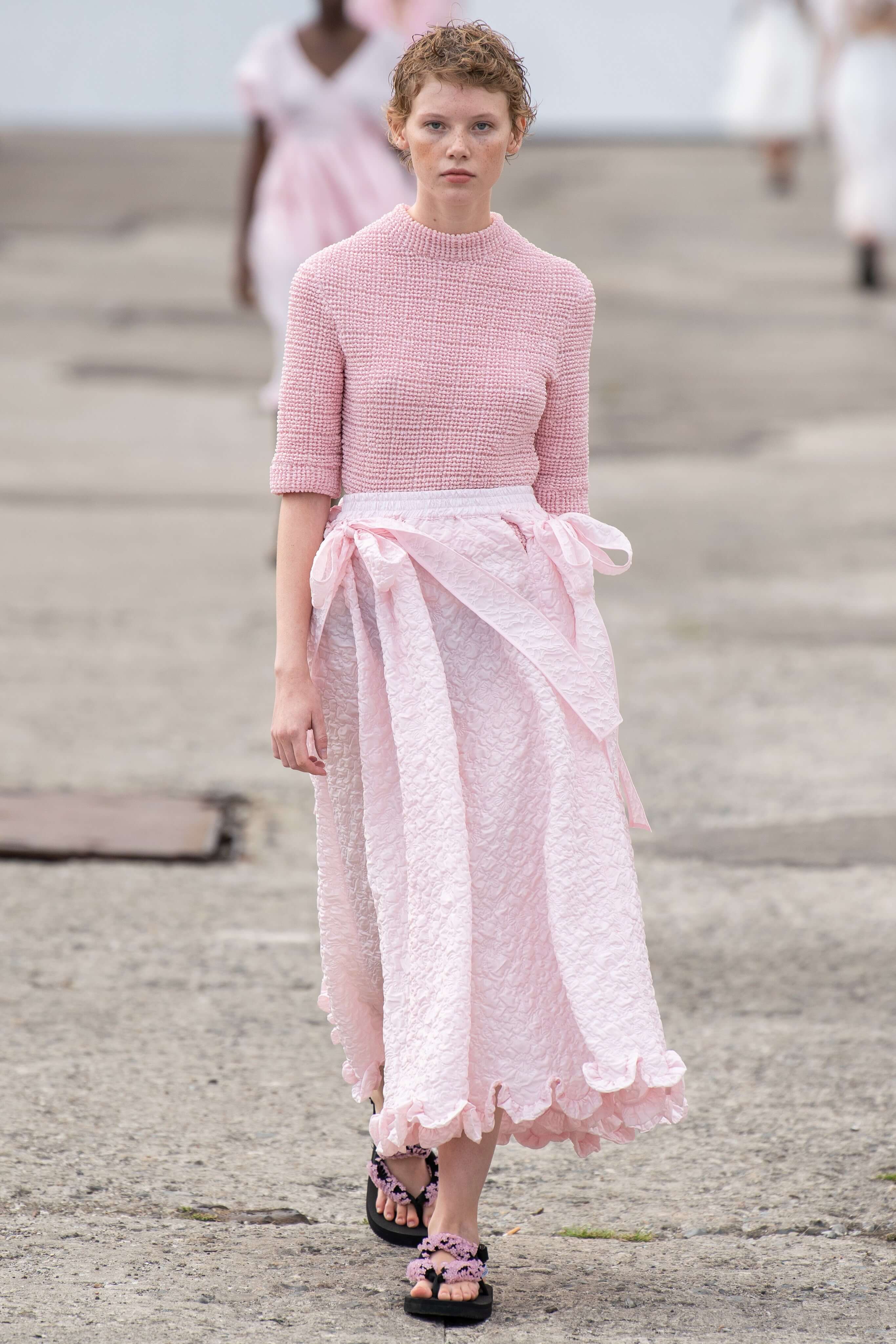 Бренд появился в 2015 году и с тех пор стал воплощением скандинавской романтики: рукава-буфы, банты, объемные, но в то же время расслабленные силуэты. В этом сезоне основательница бренда Сесиль снова показала характерные платья baby-doll и монохромные образы, но после четырех лет в индустрии решила выйти за рамки, не ограничиваясь узнаваемыми силуэтами.