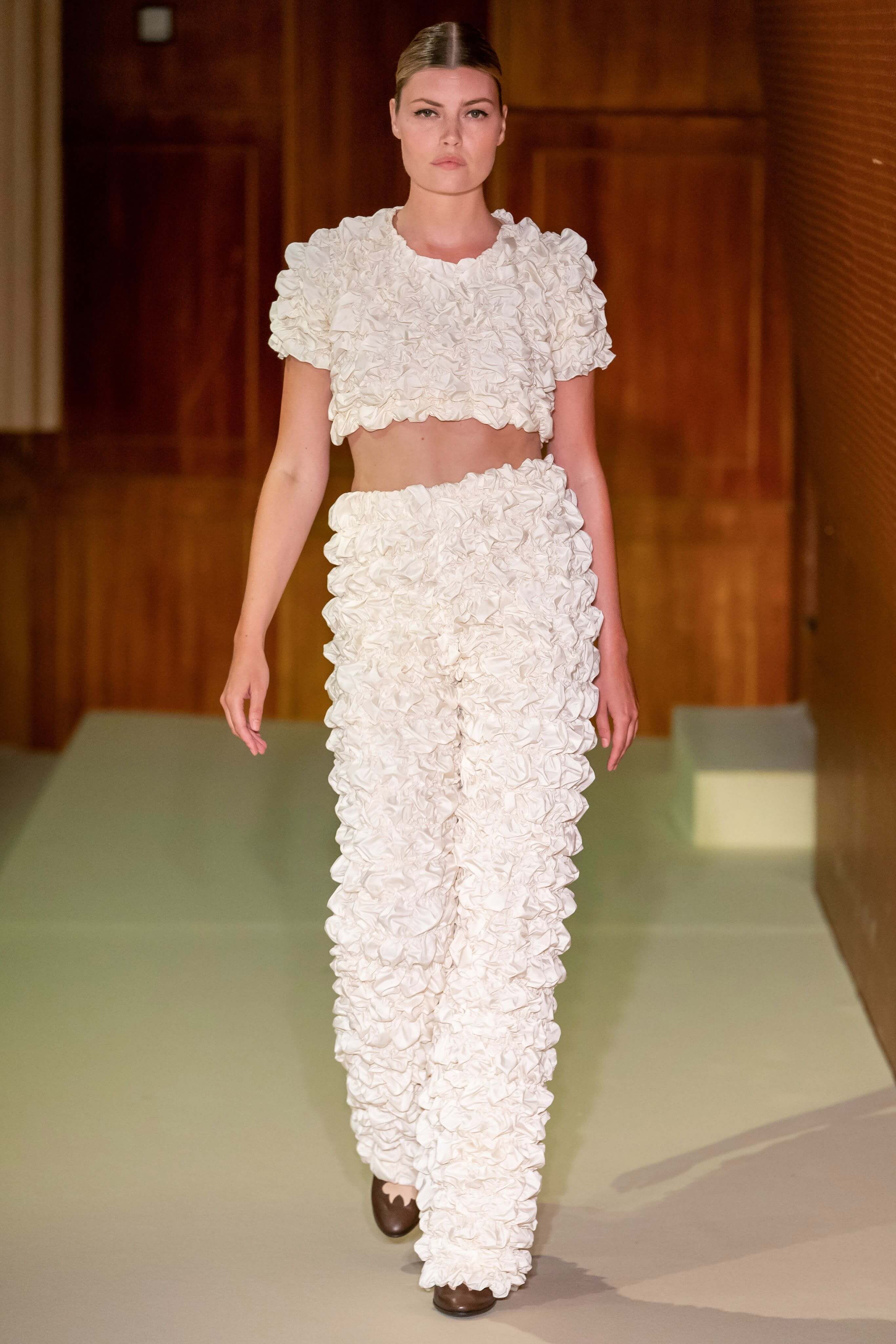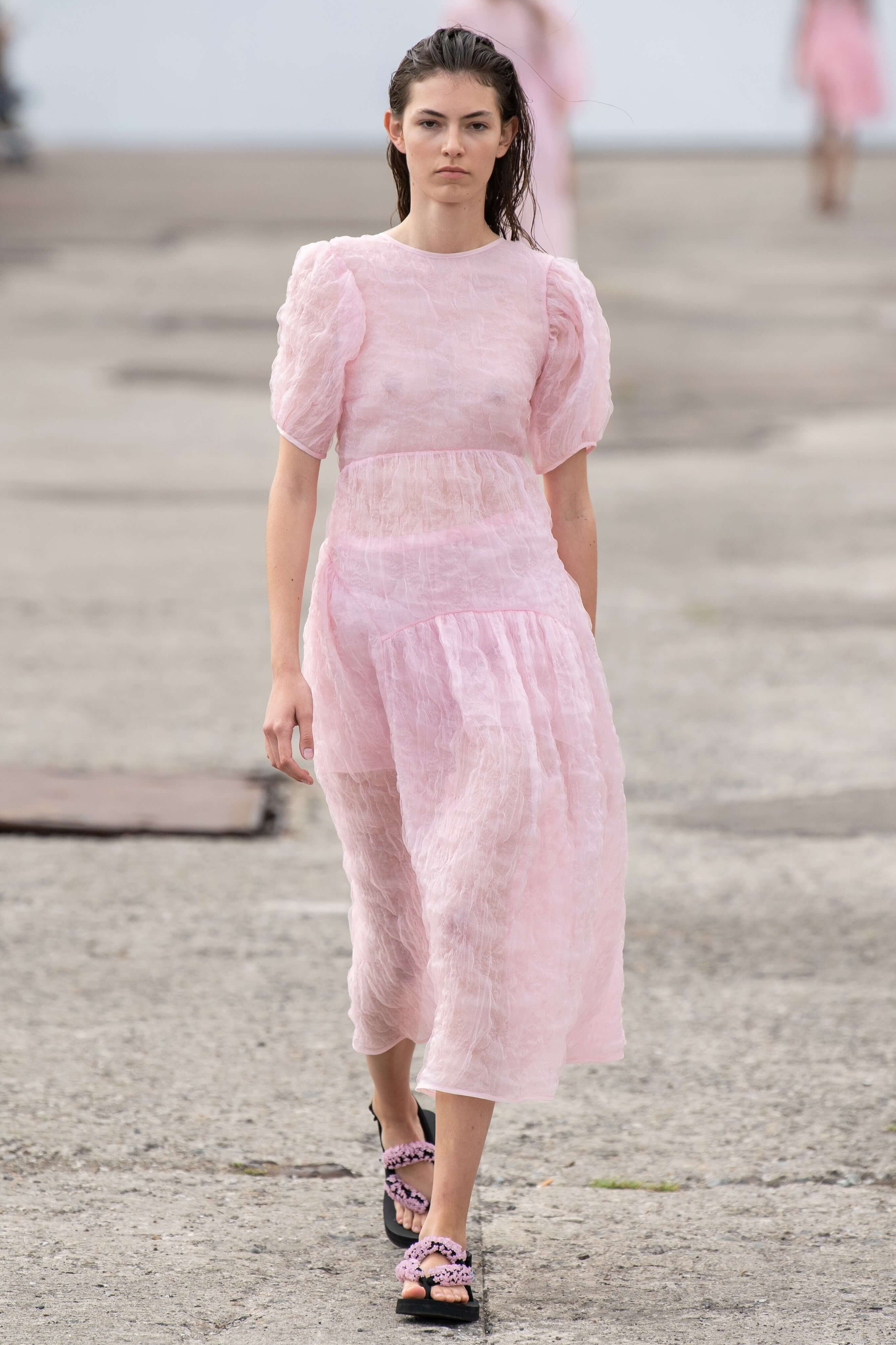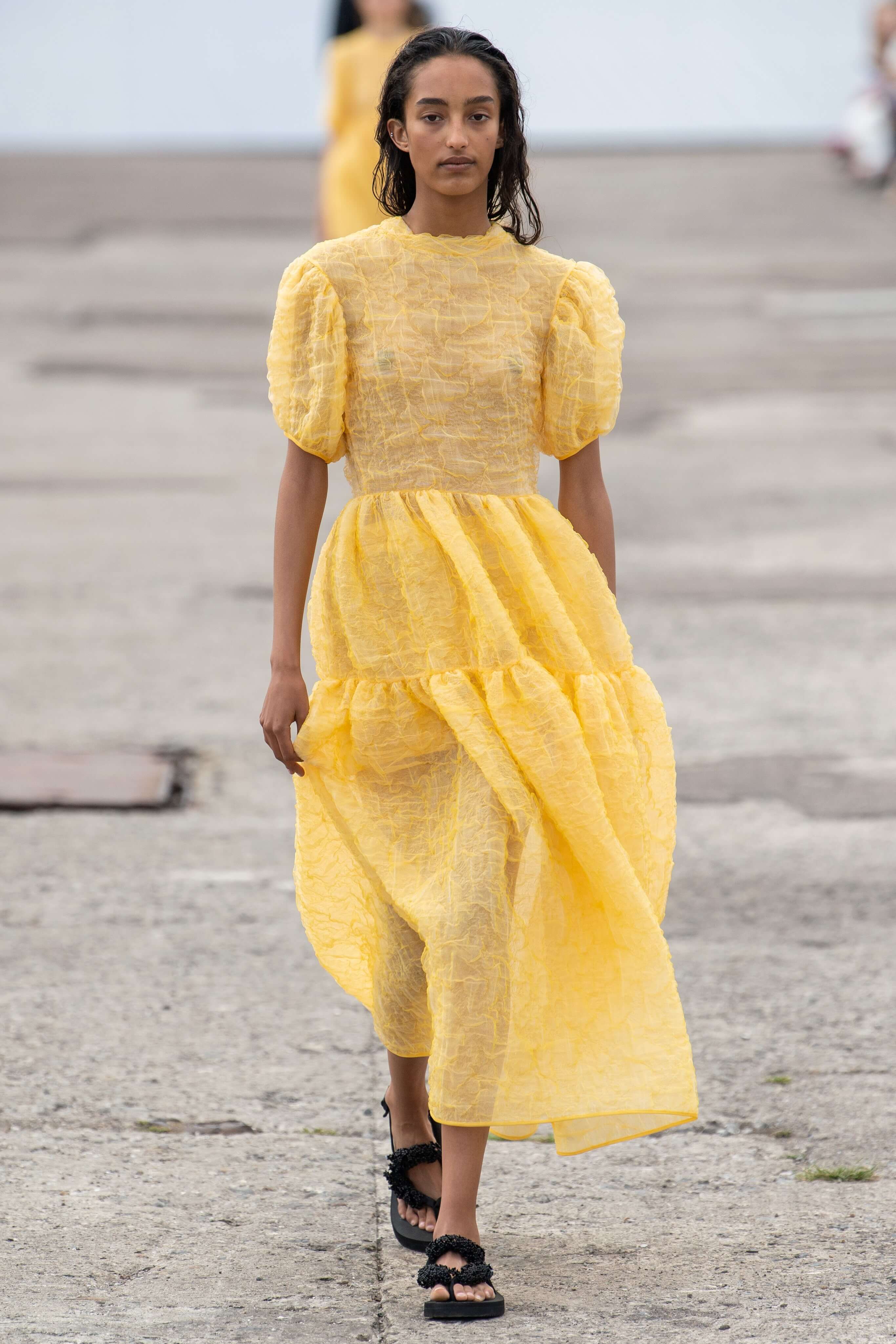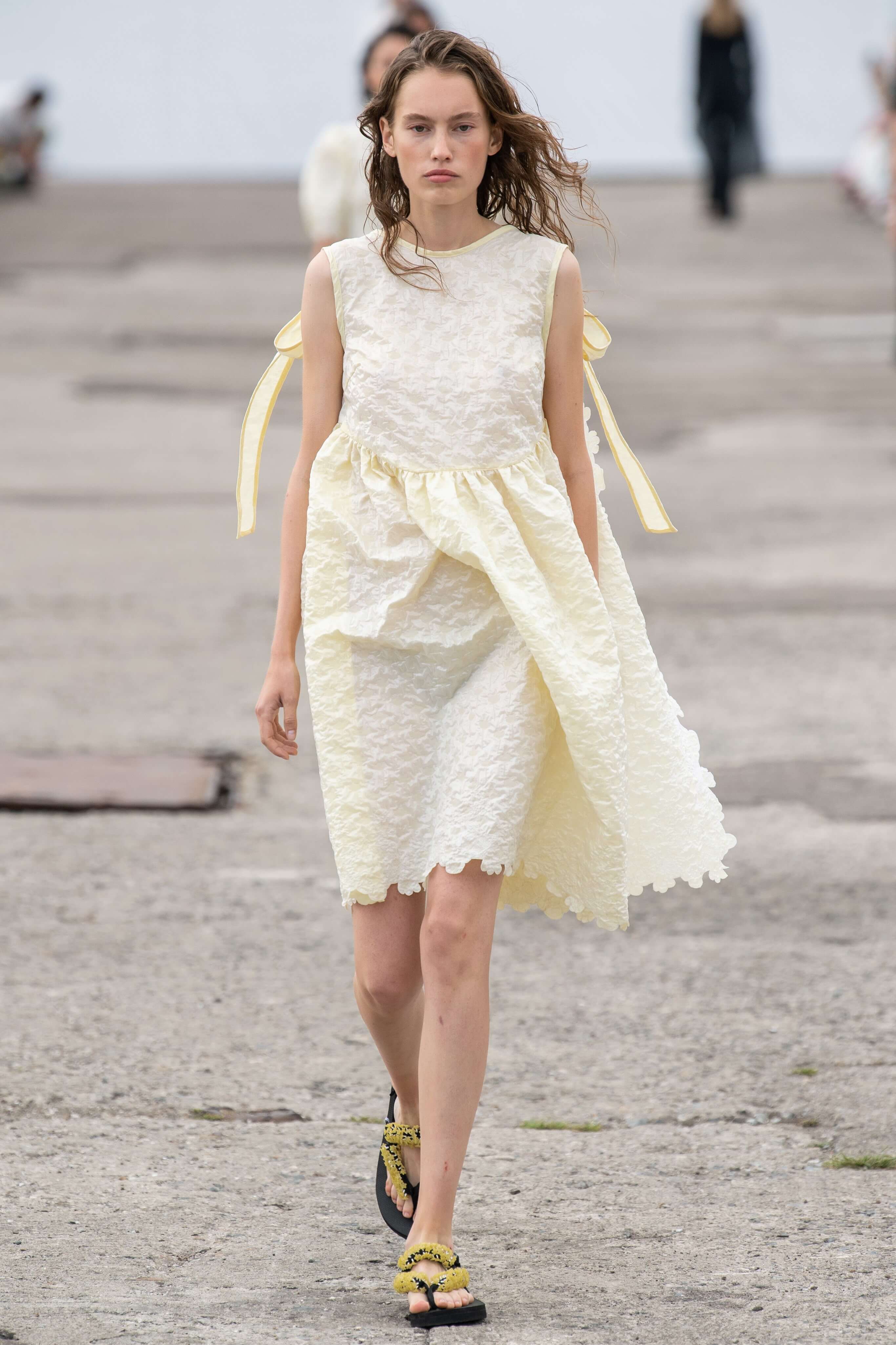 Бренд появился в 2015 году и с тех пор стал воплощением скандинавской романтики: рукава-буфы, банты, объемные, но в то же время расслабленные силуэты. В этом сезоне основательница бренда Сесиль снова показала характерные платья baby-doll и монохромные образы, но после четырех лет в индустрии решила выйти за рамки, не ограничиваясь узнаваемыми силуэтами.
