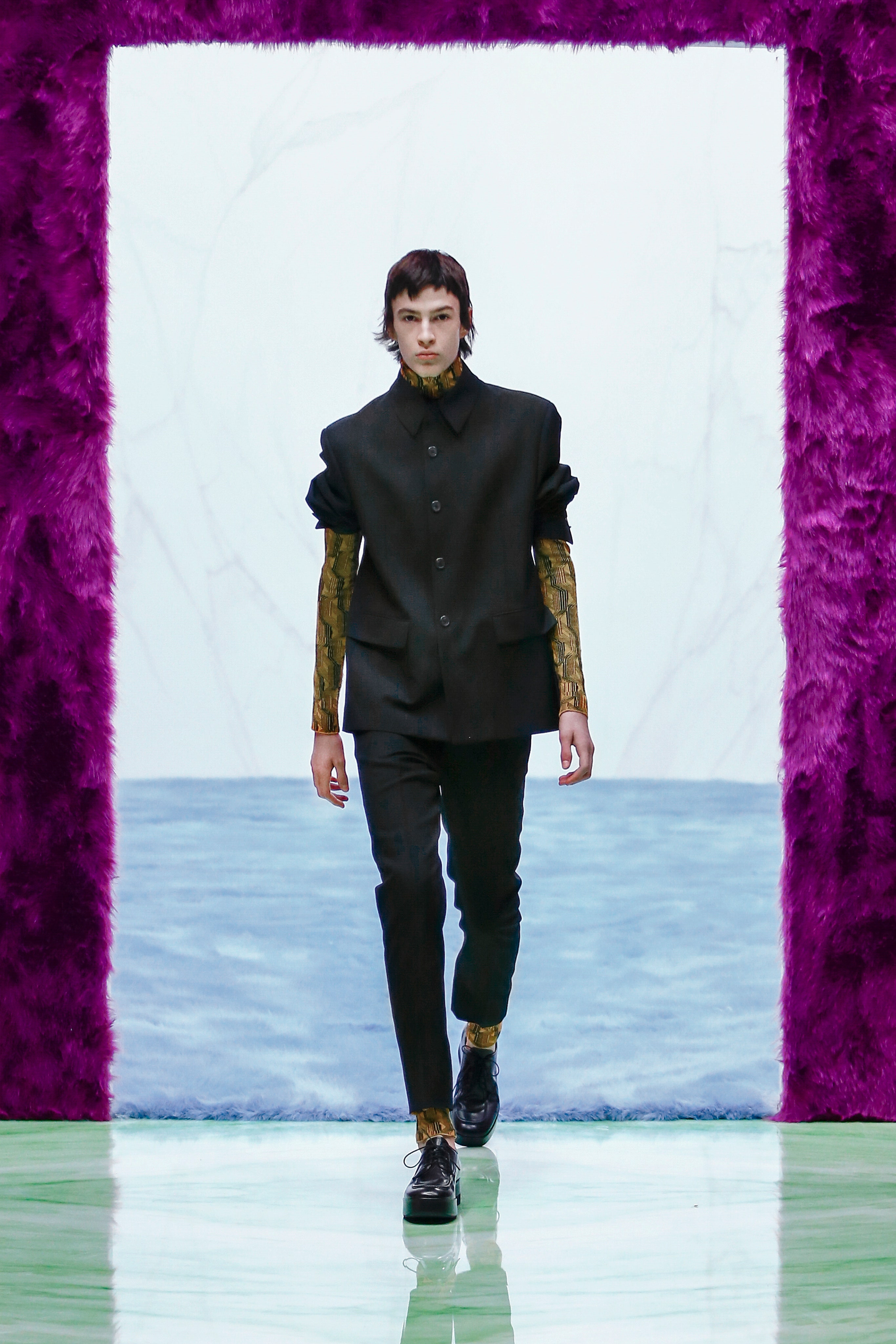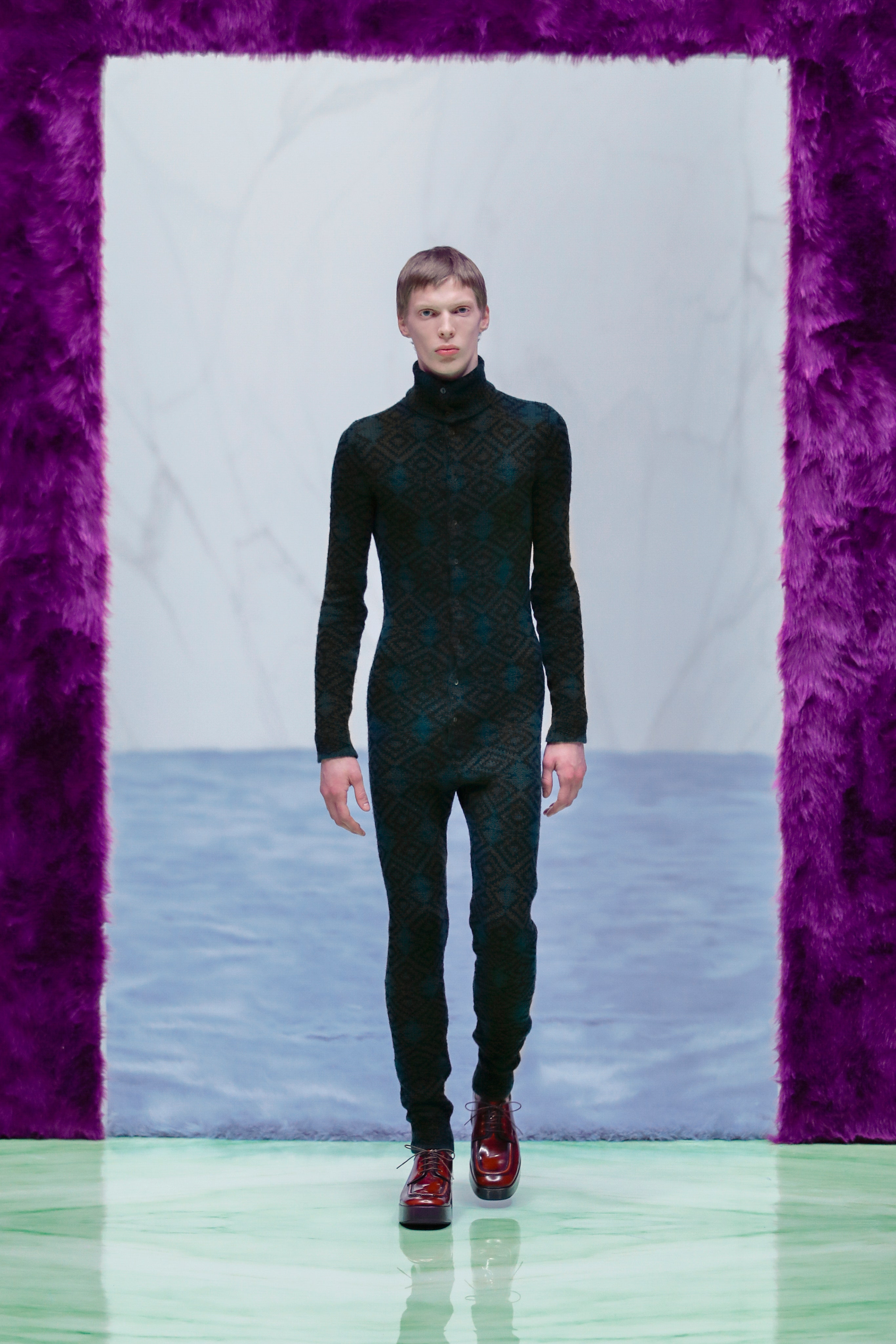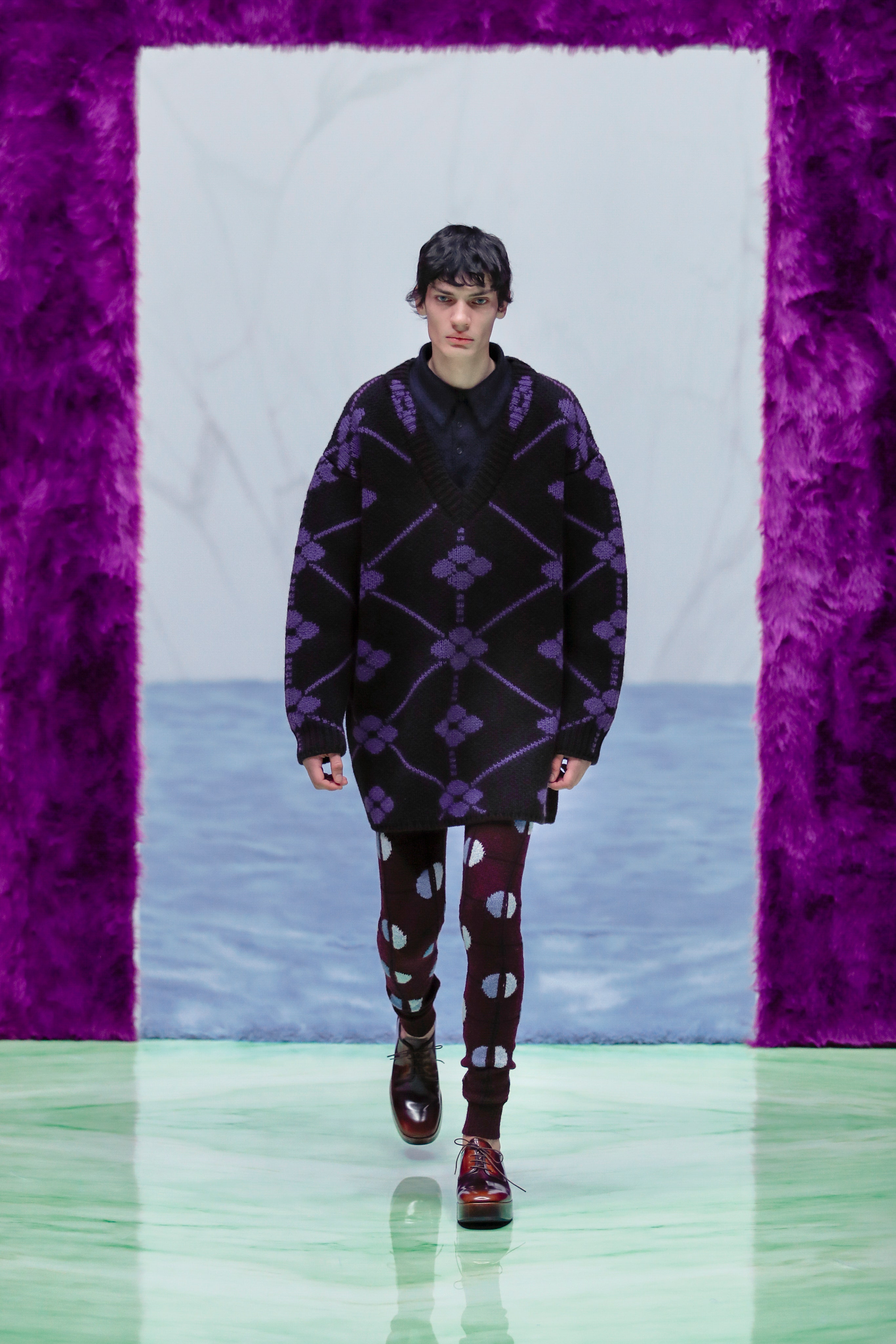 Раскрывать архитектуру тела и полностью изолировать его, вызывать вихрь ощущений и ассоциаций — от детского комбинезона до наряда соблазнительного ковбоя в салуне или артистов рок-н-ролла — задумка креативных содиректоров Prada была сложной и простой одновременно. Эта коллекция, по словам дизайнеров, впервые создавалась не как повествование, а как набор вещей, предназначенных в первую очередь для эмоционального взаимодействия с человеком на уровне ощущений и настроения.