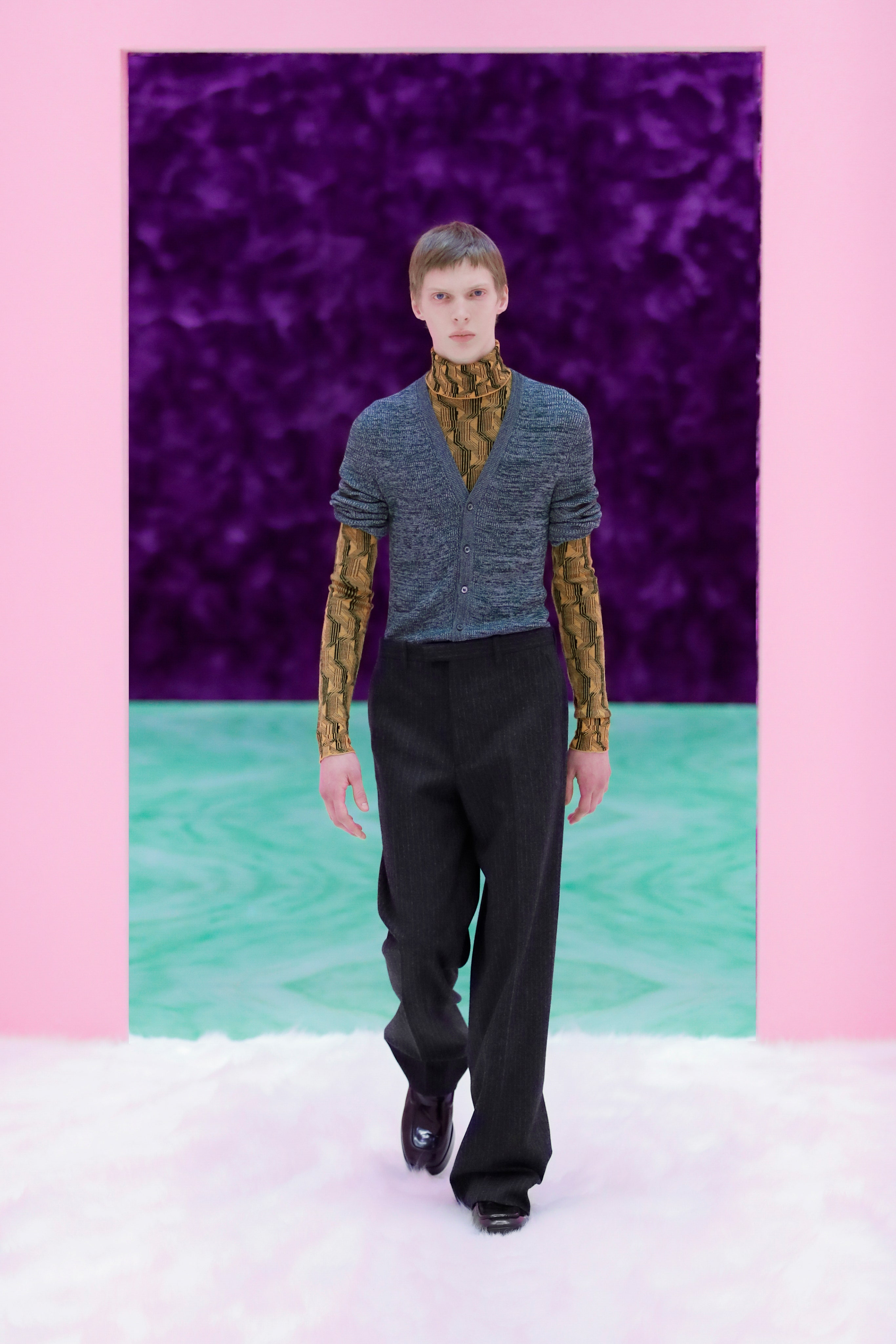 Так, вещи первой совместной мужской коллекции Рафа и Миуччи получились однородными и в то же время очень разными. В производстве использовали шерсть, кашемир и джерси, удлиненные бомберы дополняли пальтовой подкладкой, а силуэтную верхнюю одежду — вязаными трико и гамашами наподобие тех, что носили модники в 19 веке. Мы уже выбрали вещи, которые с удовольствием примерили бы и носили бы сами.