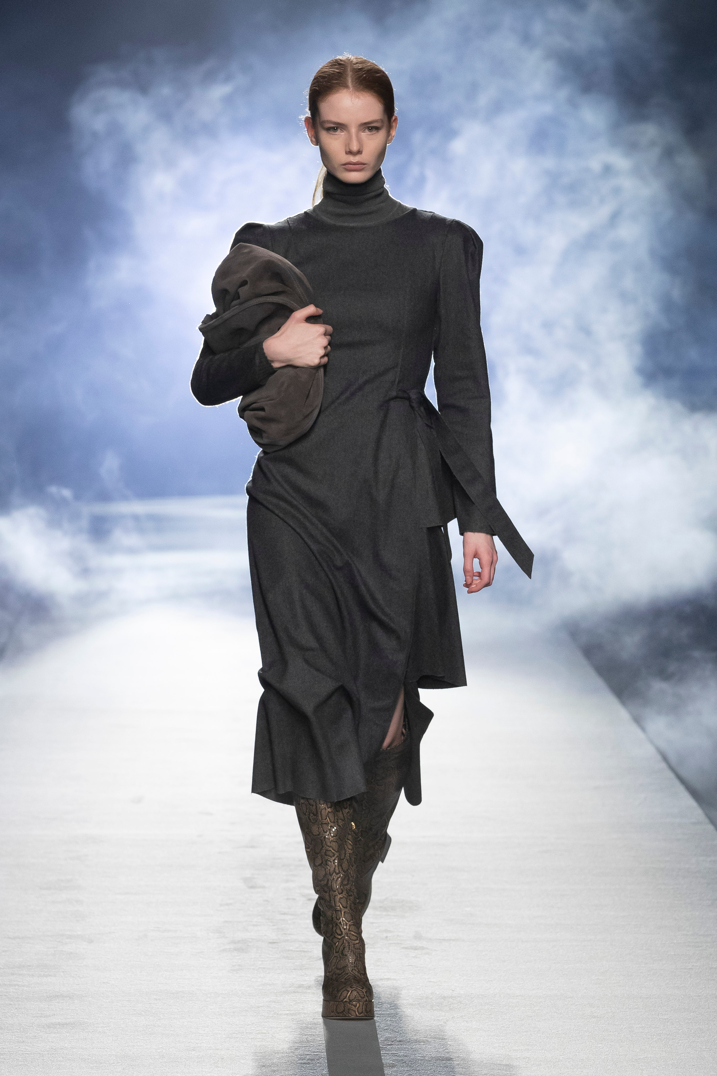 Во второй день миланской Недели моды коллекцию будущей осени представила Альберта Ферретти. Дизайнер приняла решение выпустить фильм-показ и сосредоточить внимание на повседневной одежде. Работая над дизайном комфортных пальто, просторных брючных костюмов и мягких платьев, Ферретти всё же привнесла дух от-кутюр в кэжуальный ряд. К примеру, накидки-пончо снабжены ручной вышивкой по краям, а блузы и вечерние платья из шелковой тафты имеют замысловатый крой, добиться которого можно путем моделирования ткани вручную. В новом сезоне можно встретить знакомые высокие широкополые шляпы, загадочно скрывающие пол-лица, нарочито громоздкие пиджаки и тренчи из кожи и шерсти, а также объемные пальто.