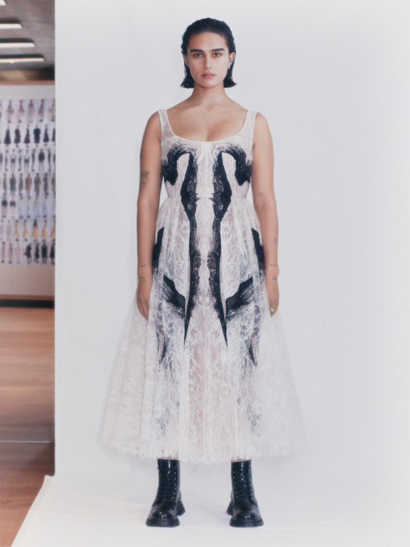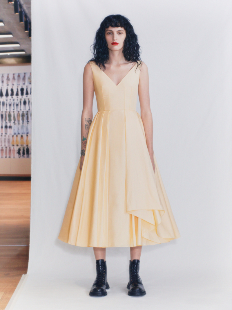 "Форма, силуэт и объем, красота "обнаженной" одежды, лишенная своей сути, – это мир, измененный эмоциями и человеческими связями", — так Сара Бертон описала коллекцию.