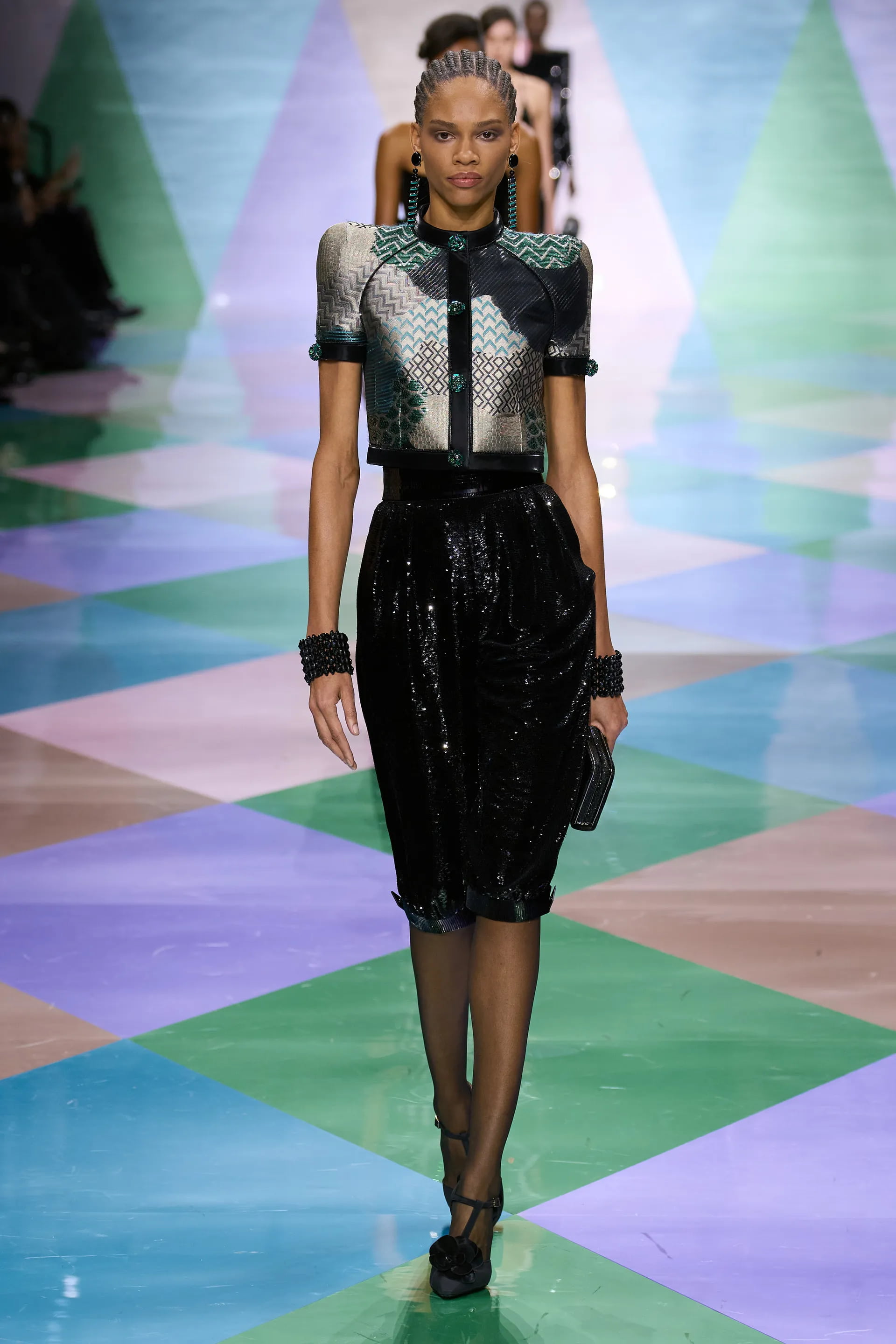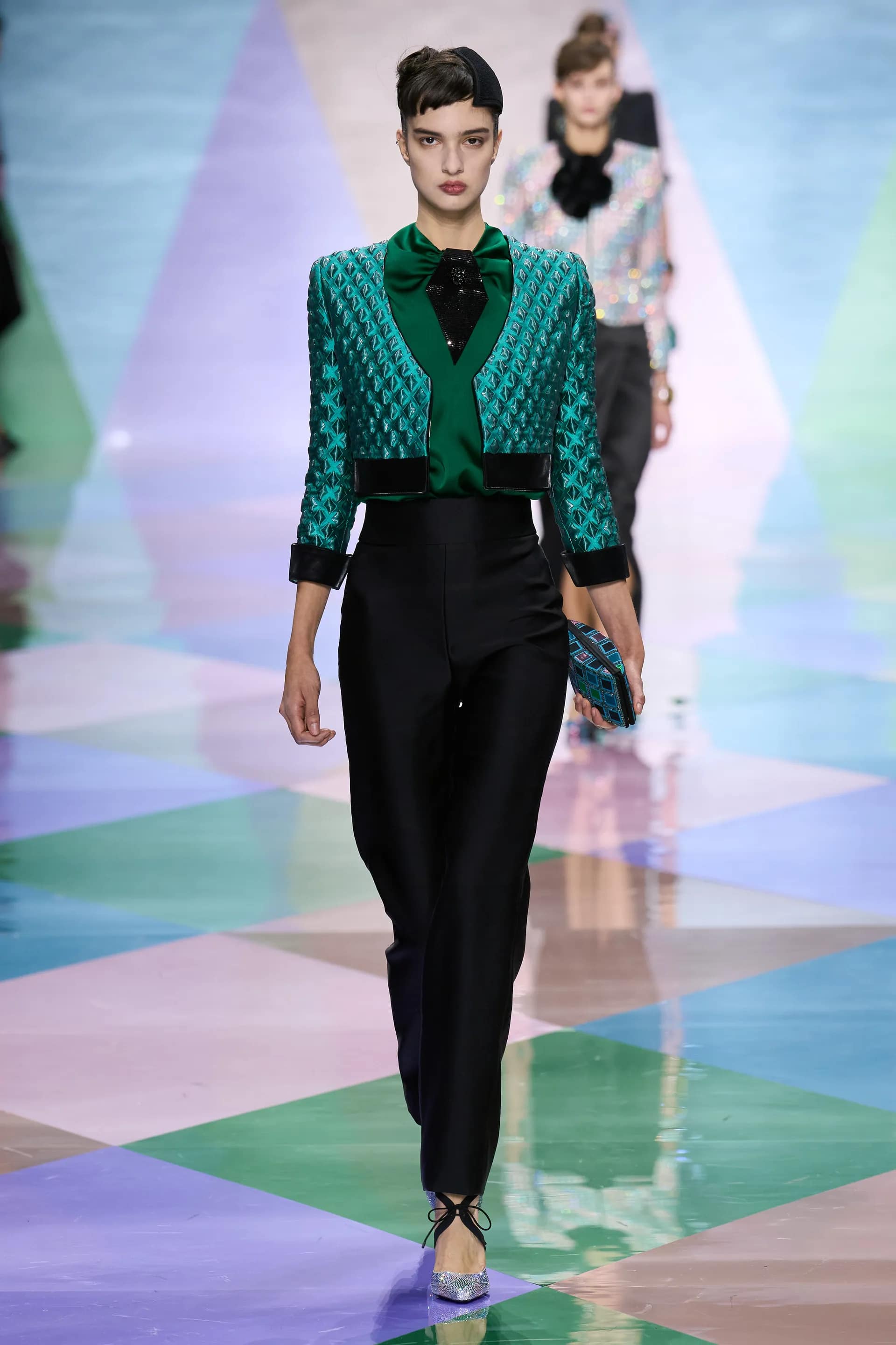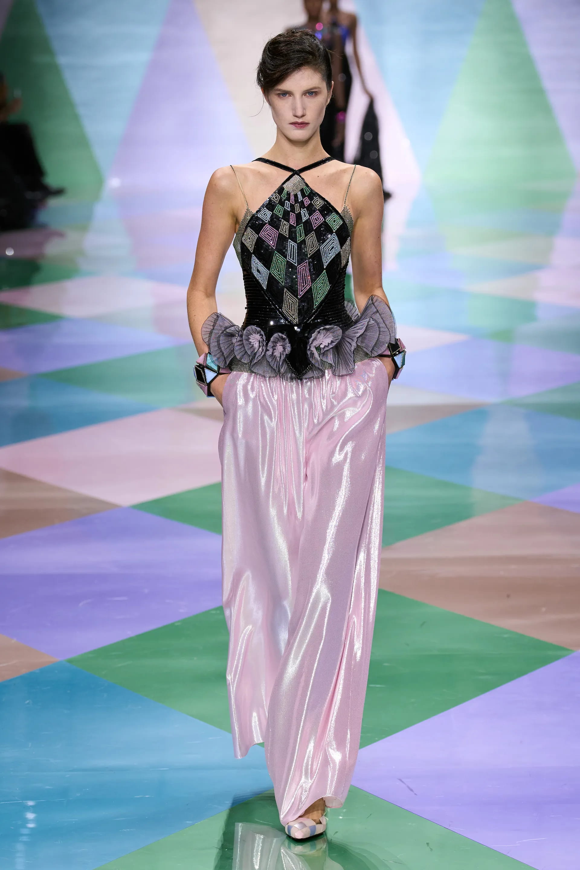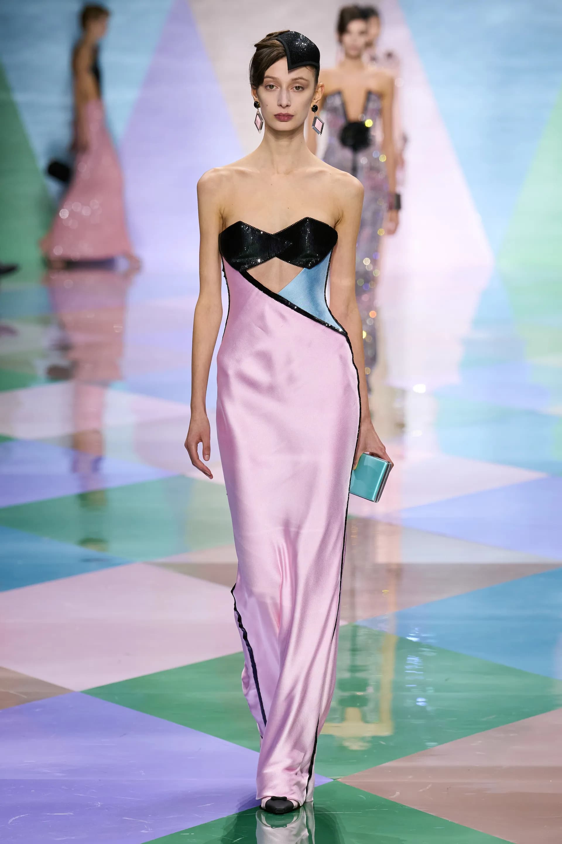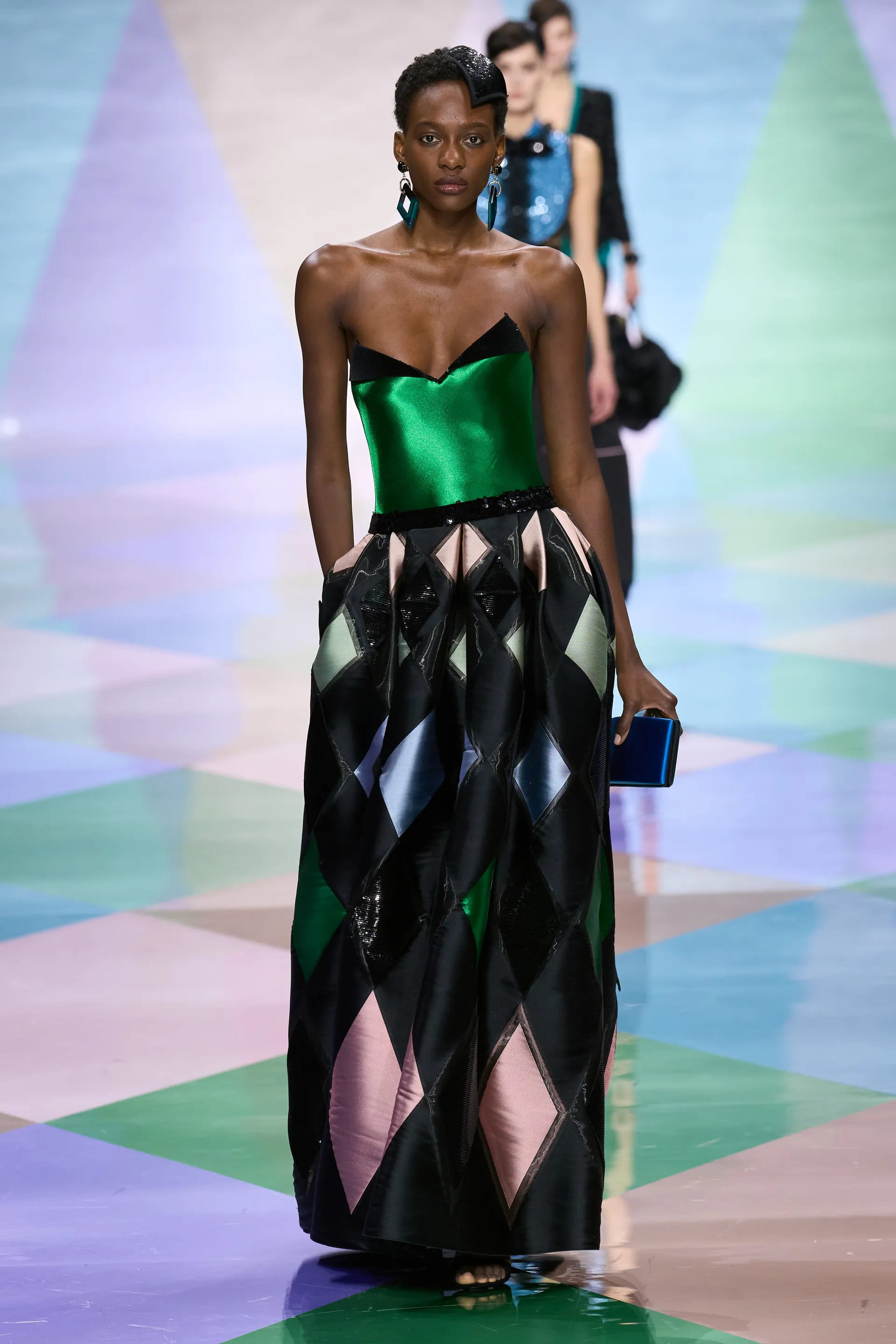 Armani Haute Couture SS ‘23 — це дуже грайлива, яскрава історія, де натхнення йде не лише від відчуття міста, а й від самої фантазії дизайнера. Дім моди зазначає, що “ця колекція — яскрава фантазія, у якій речі танцюють та сяють”. І дійсно, діамантовий шик задає показу особливого настрою.