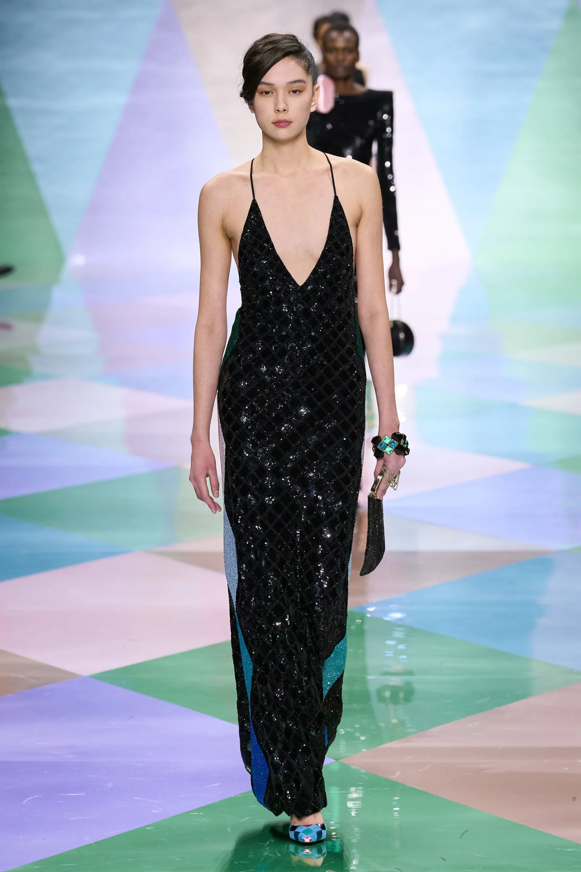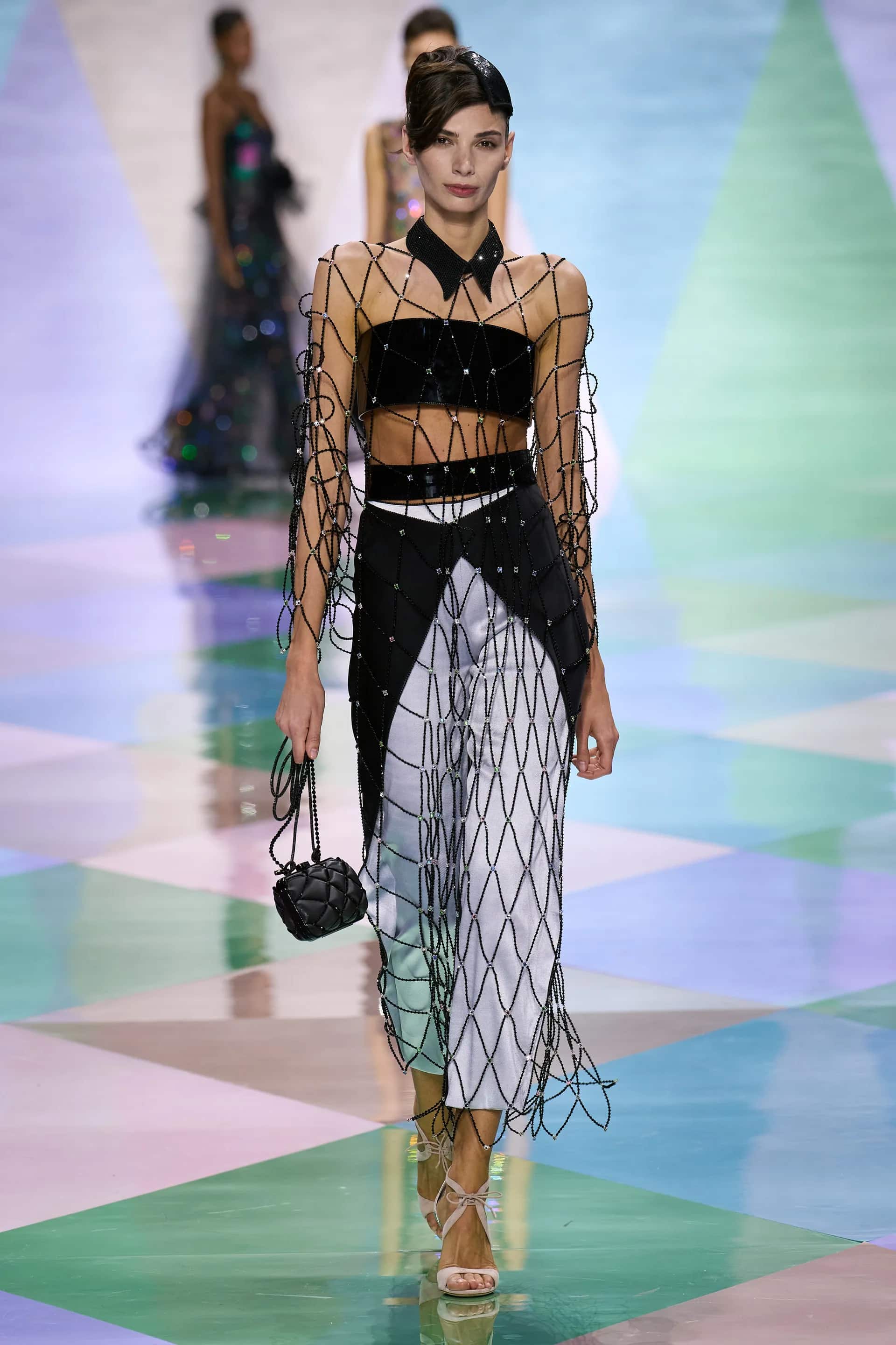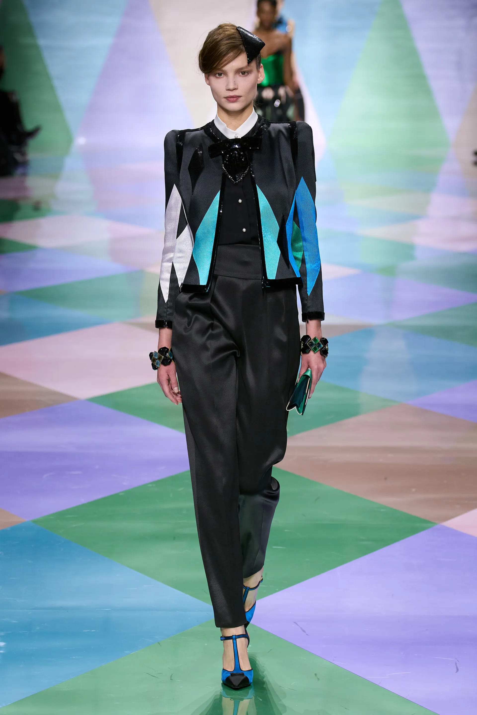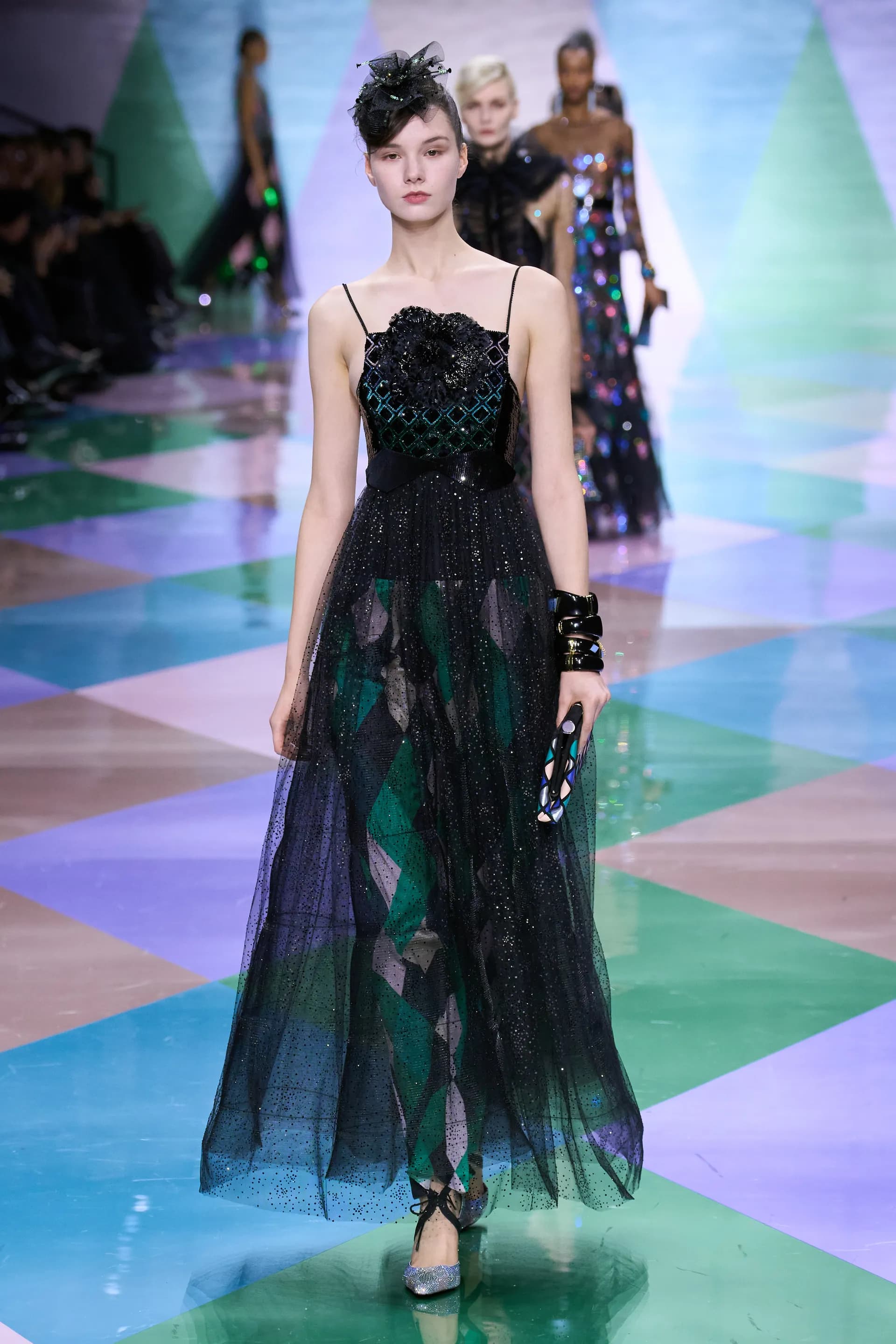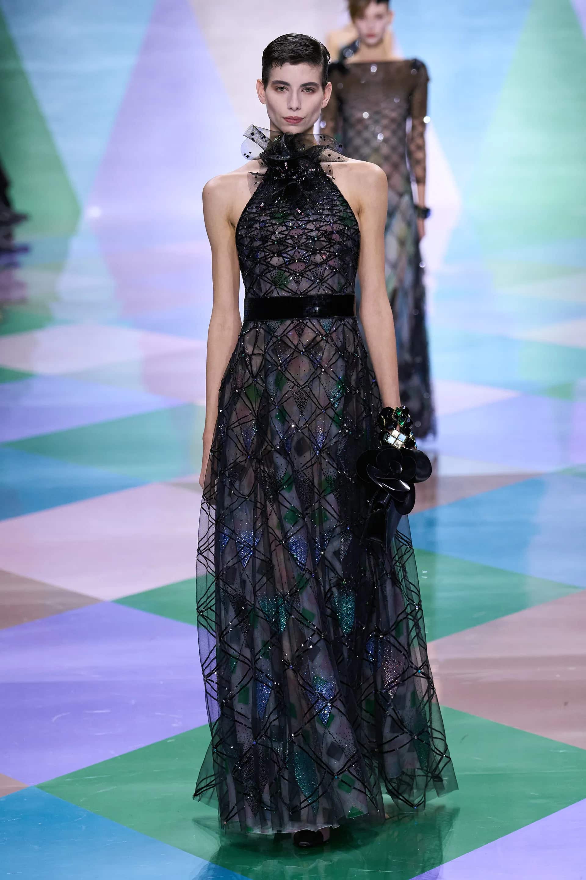 Armani Haute Couture SS ‘23 — це дуже грайлива, яскрава історія, де натхнення йде не лише від відчуття міста, а й від самої фантазії дизайнера. Дім моди зазначає, що “ця колекція — яскрава фантазія, у якій речі танцюють та сяють”. І дійсно, діамантовий шик задає показу особливого настрою.