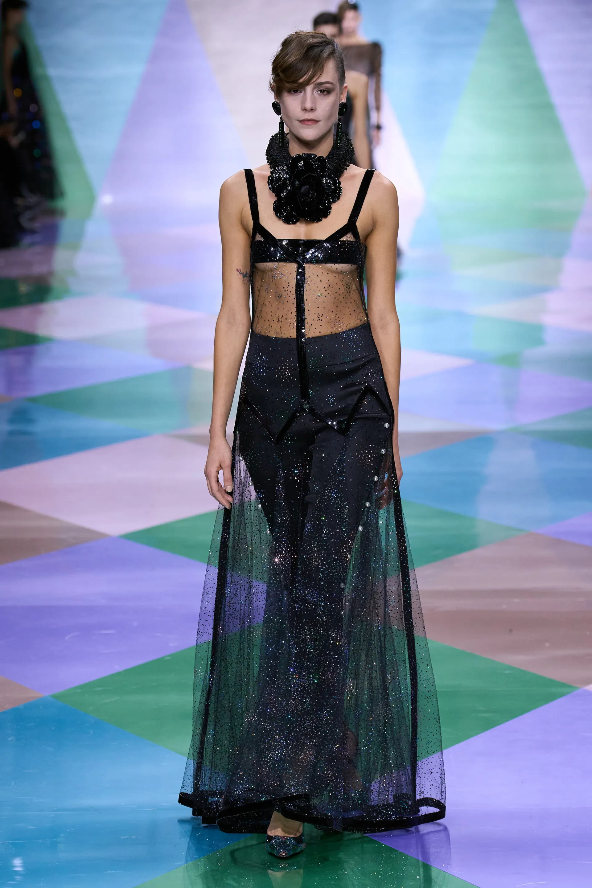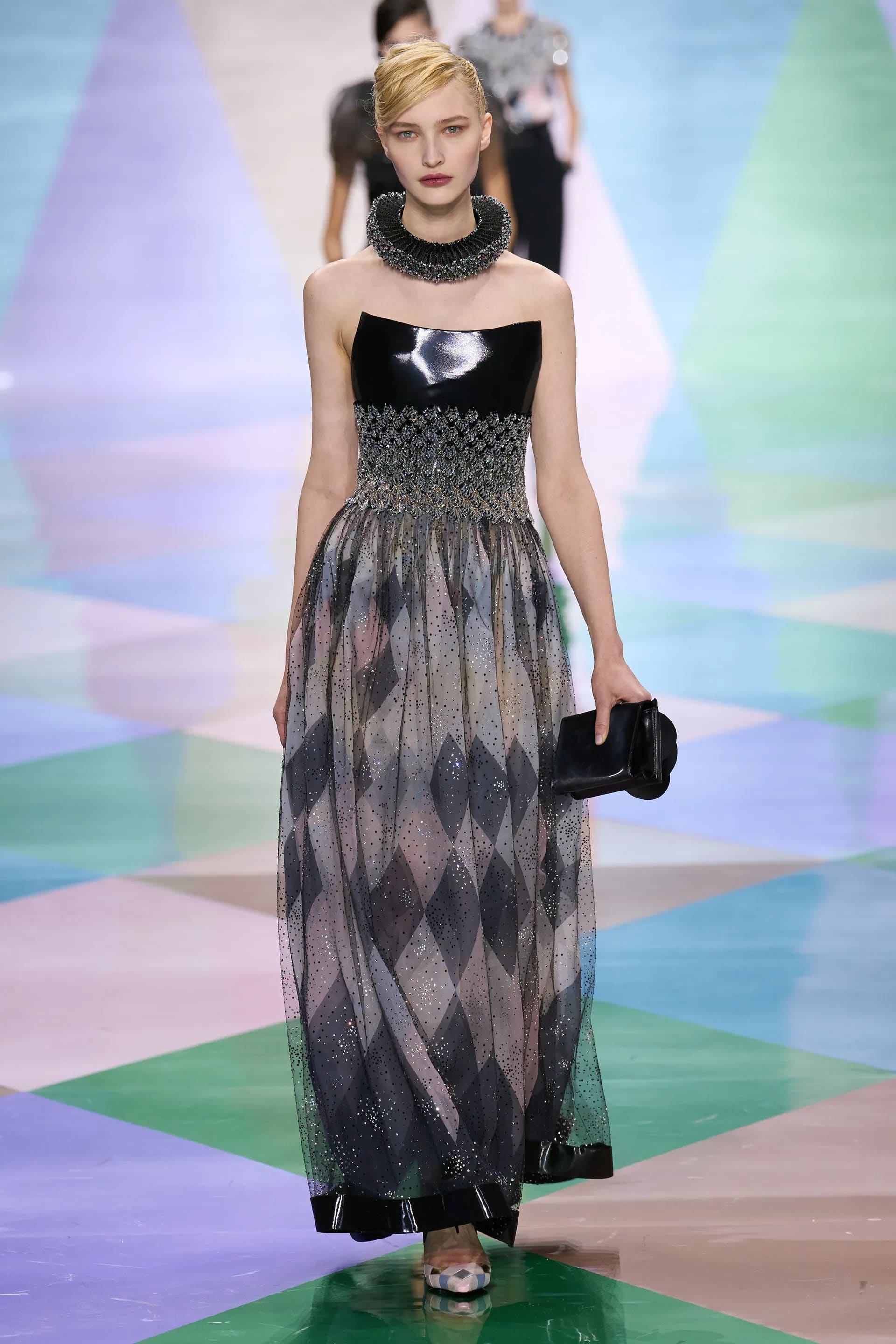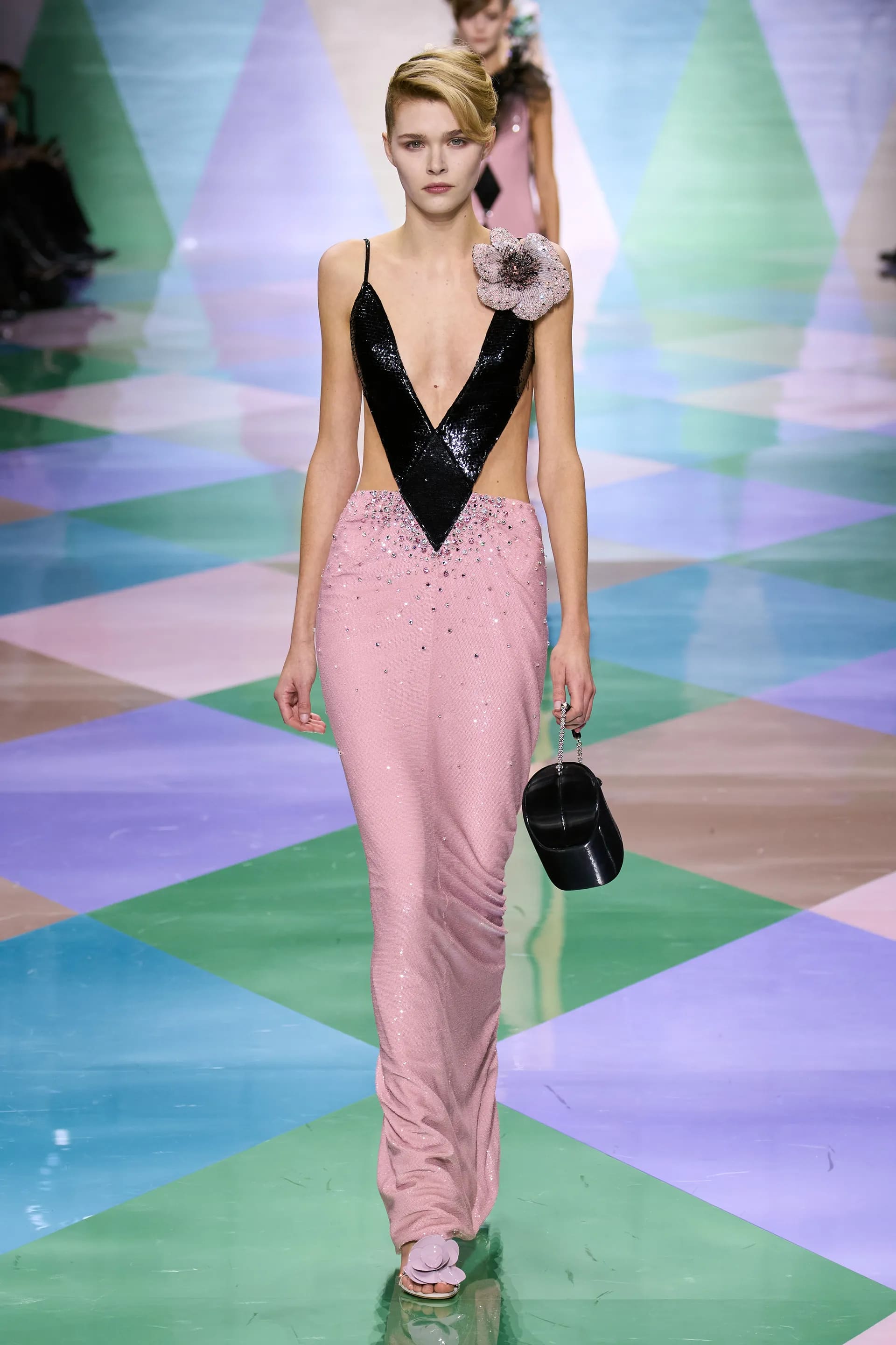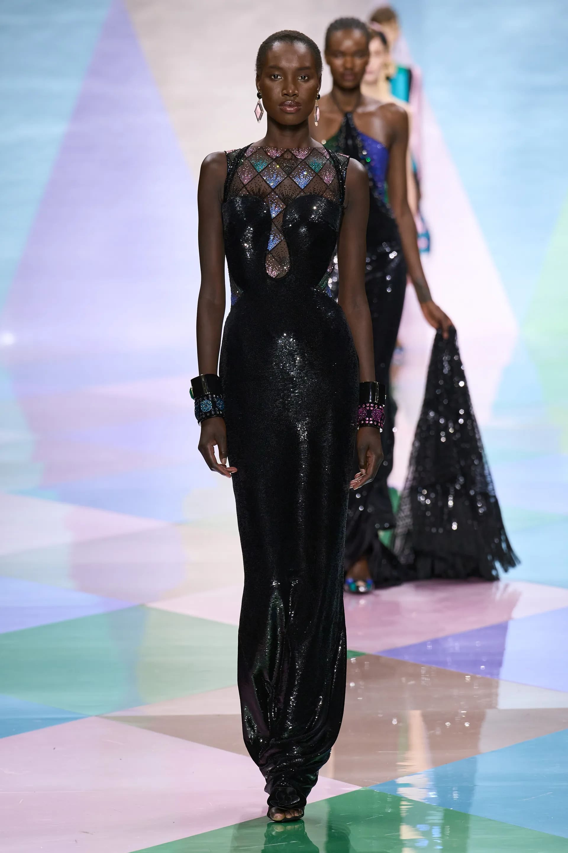 Armani Haute Couture SS ‘23 — це дуже грайлива, яскрава історія, де натхнення йде не лише від відчуття міста, а й від самої фантазії дизайнера. Дім моди зазначає, що “ця колекція — яскрава фантазія, у якій речі танцюють та сяють”. І дійсно, діамантовий шик задає показу особливого настрою.