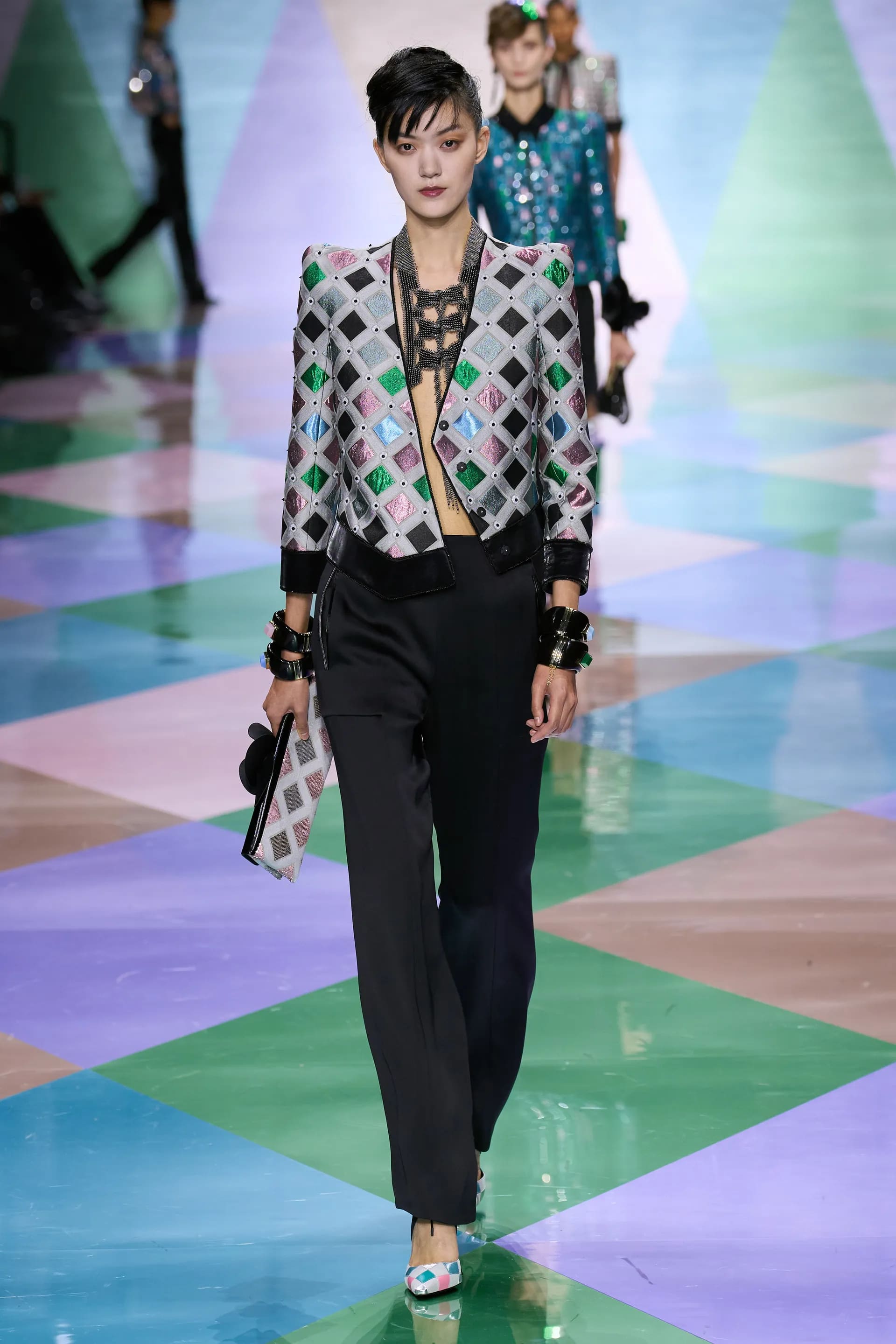Ця колекція була присвячена Венеції — місту, де зустрічаються великі палаци в стилі рококо. Місто об’єднувало головні кольори колекції: роял-блу, зелений есмеральд, блідо-рожевий та класичні для бренду чорний та сірий. Говорячи про Венецію, неможливо не згадати про карнавал, що почнеться вже в лютому. І нова колекція Armani нам про це нагадує.