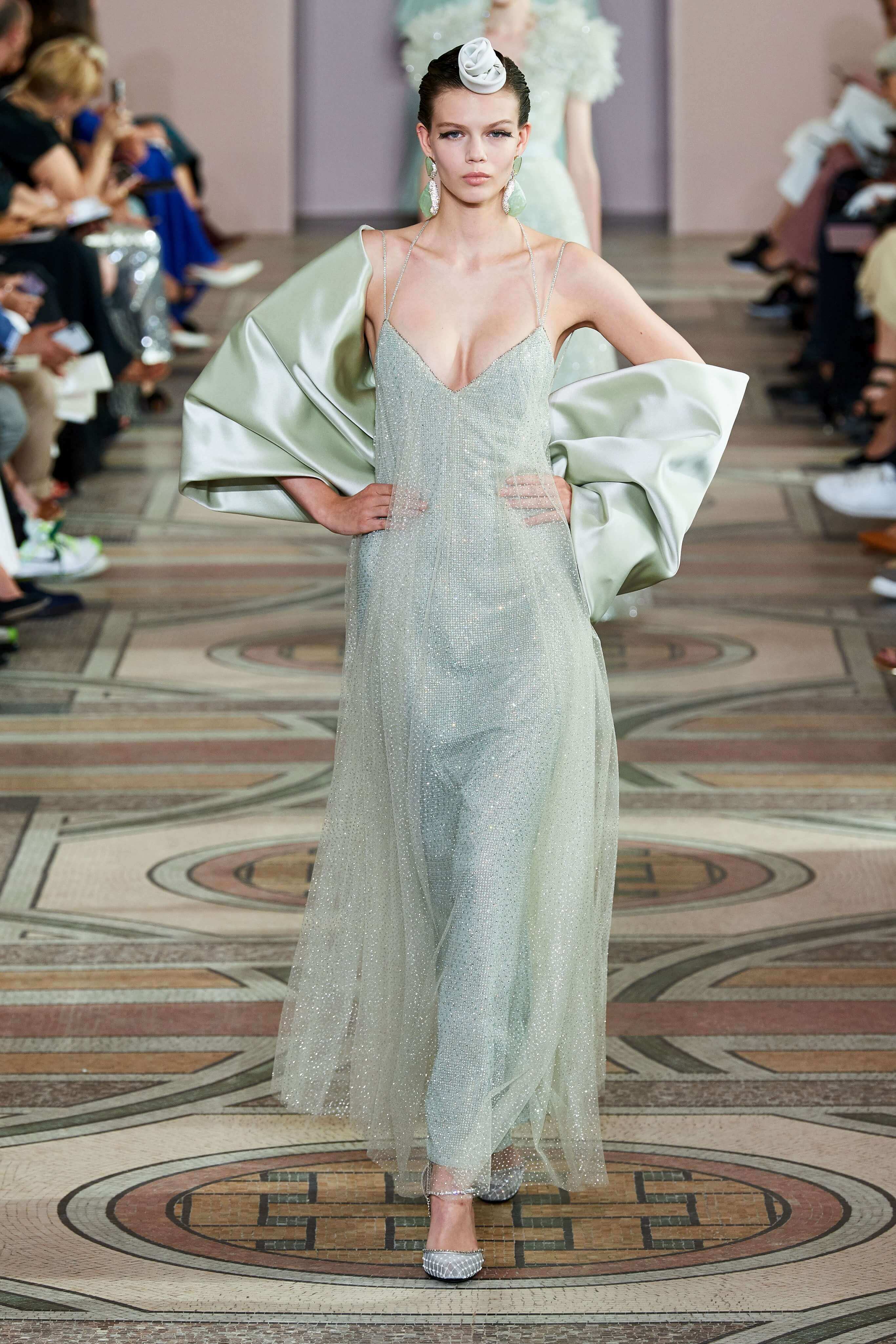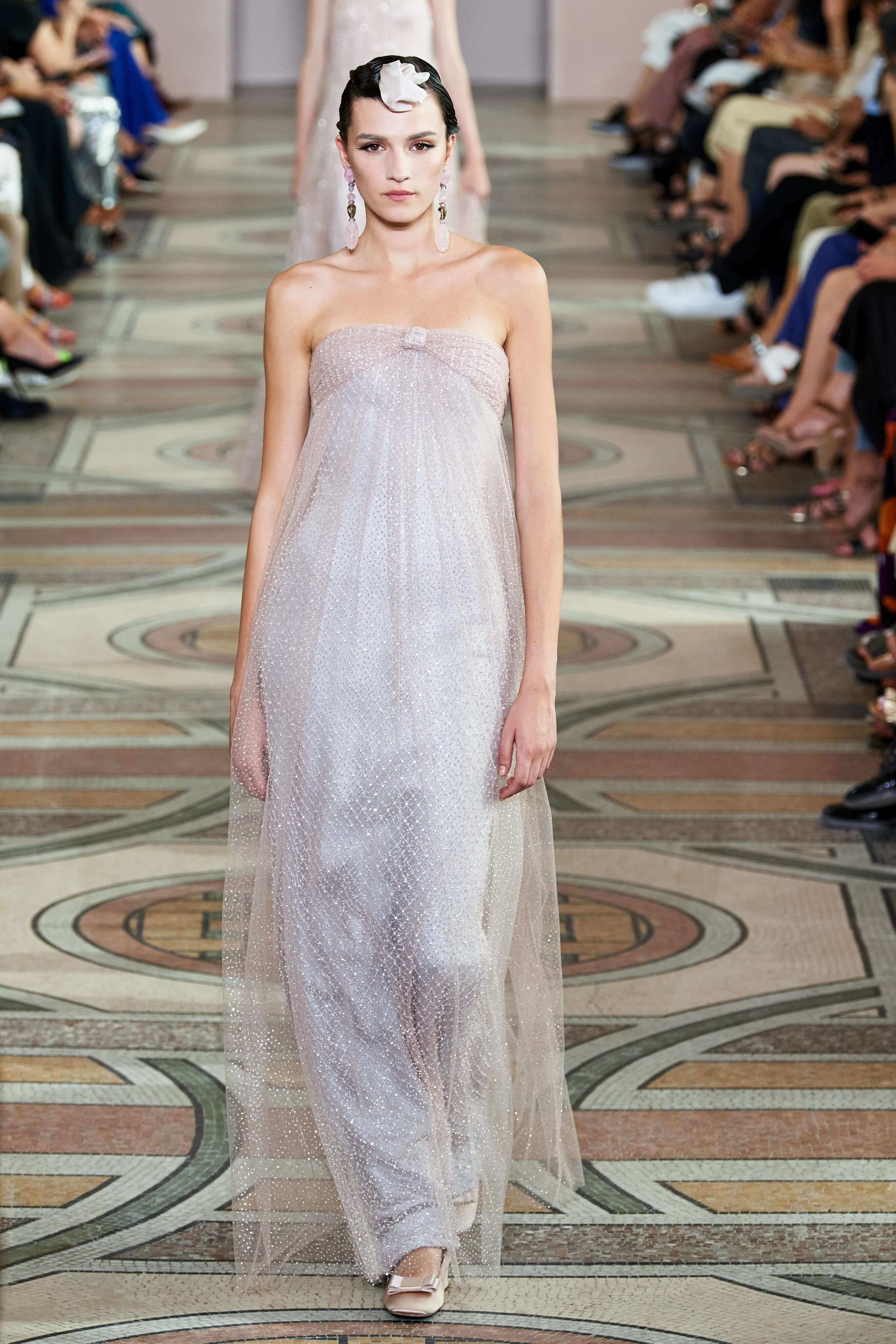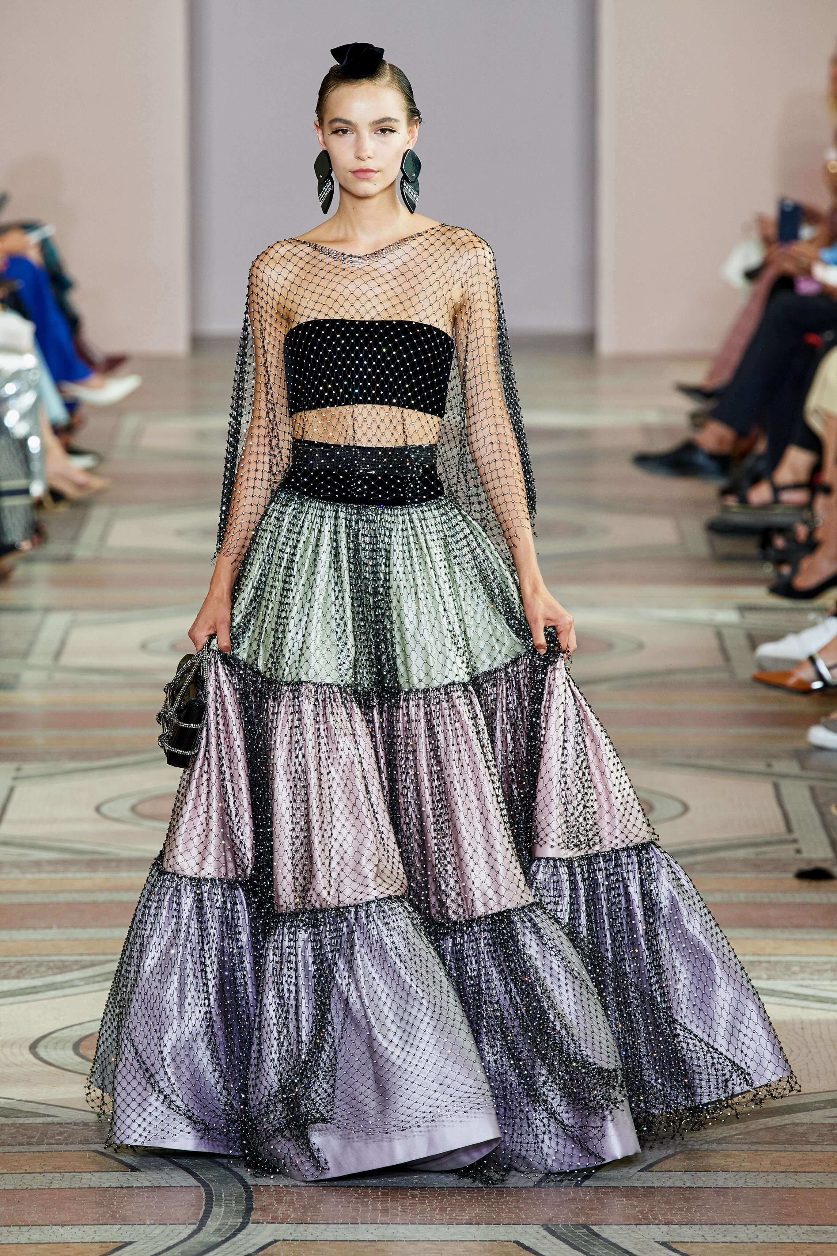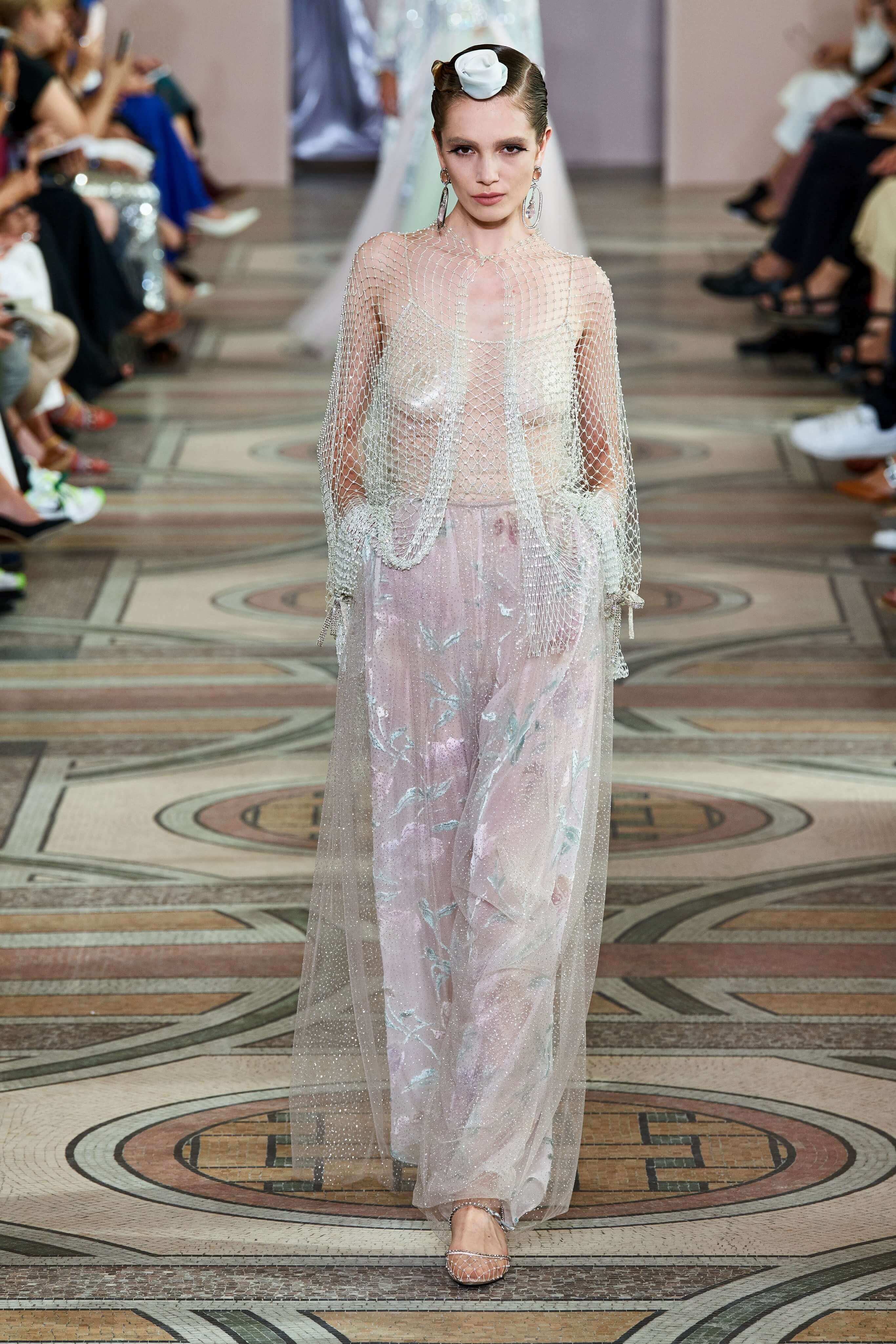 Микрошляпки в форме роз и сетка поверх вечерних платьев на показе Armani Privé