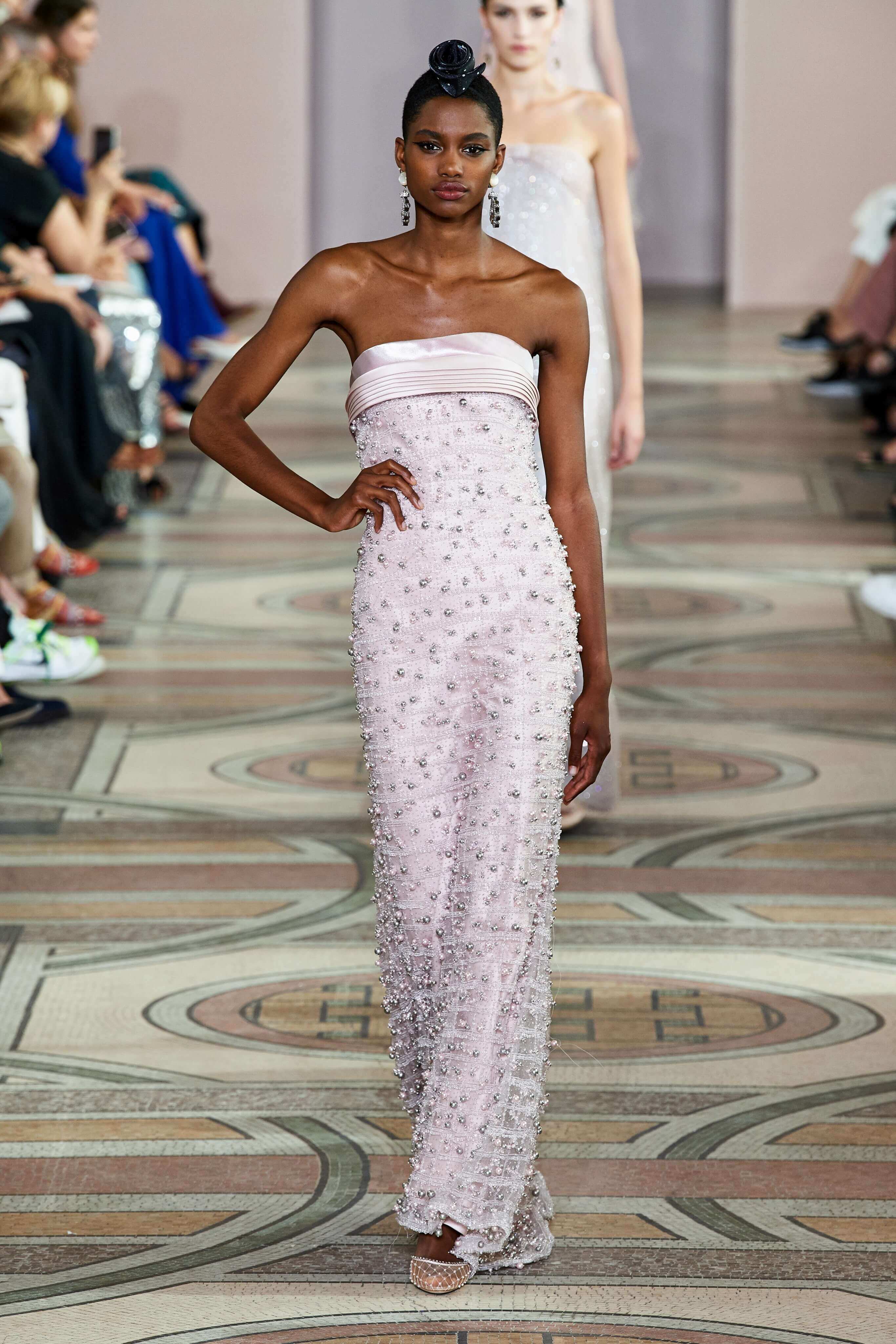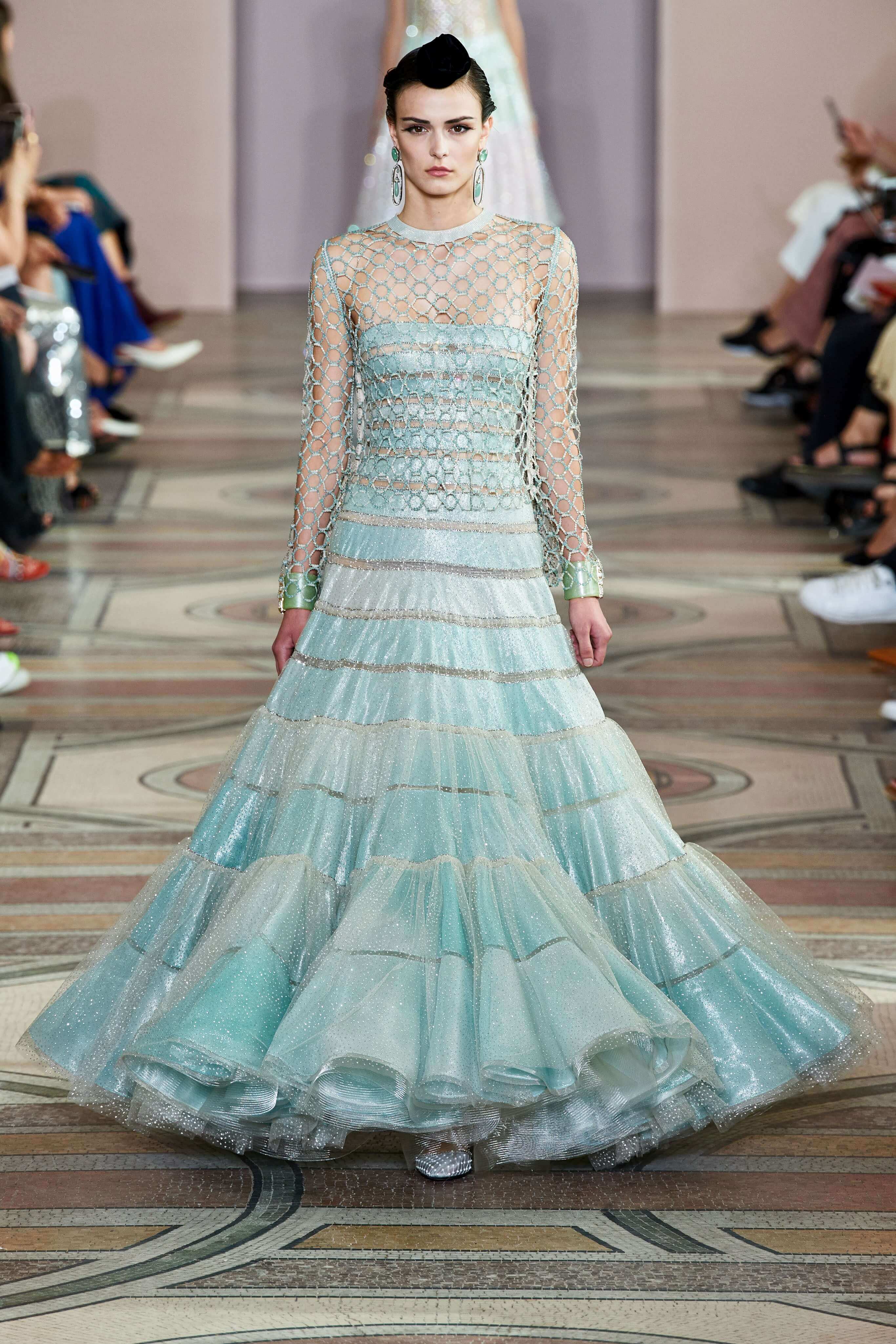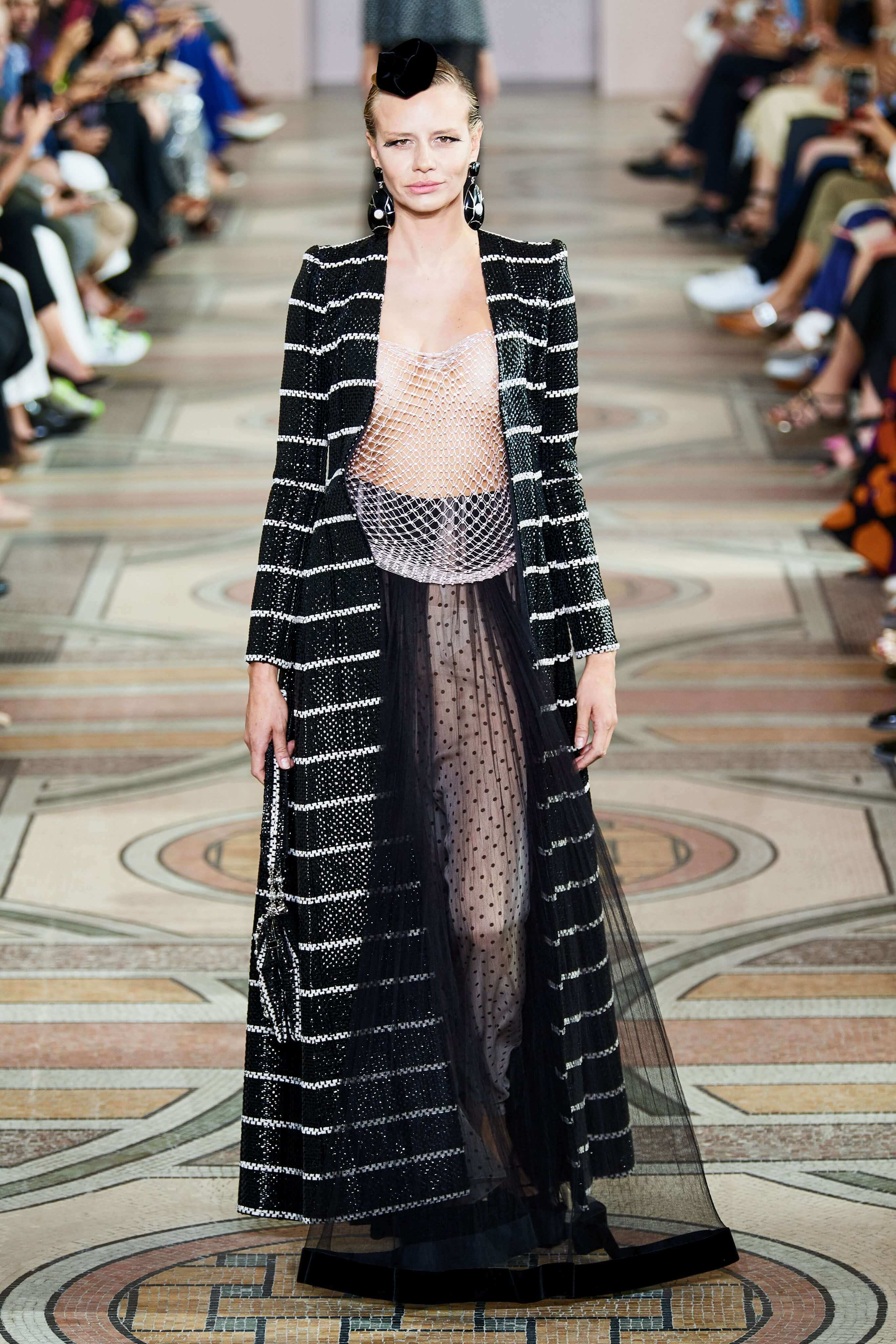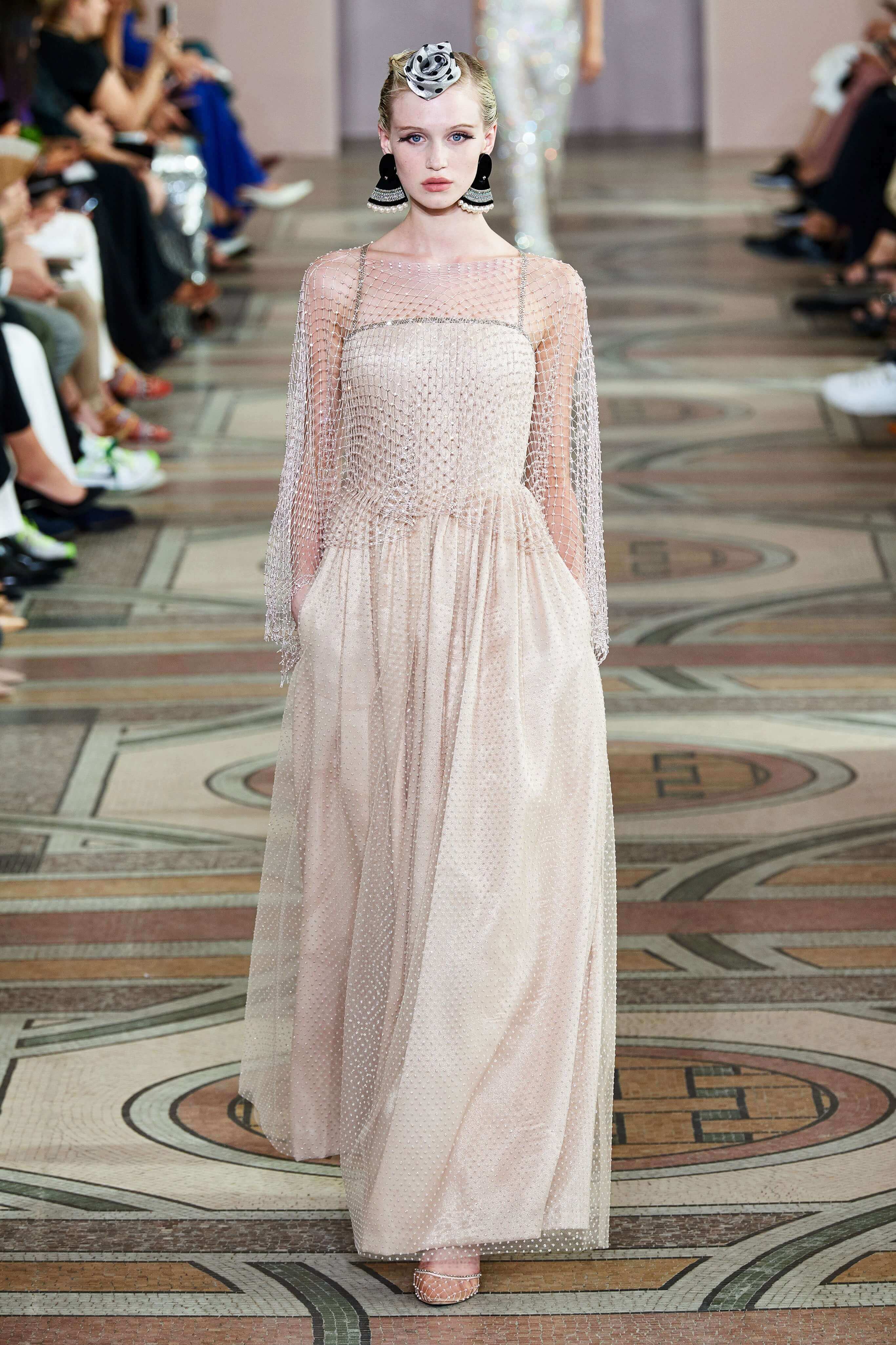 Микрошляпки в форме роз и сетка поверх вечерних платьев на показе Armani Privé