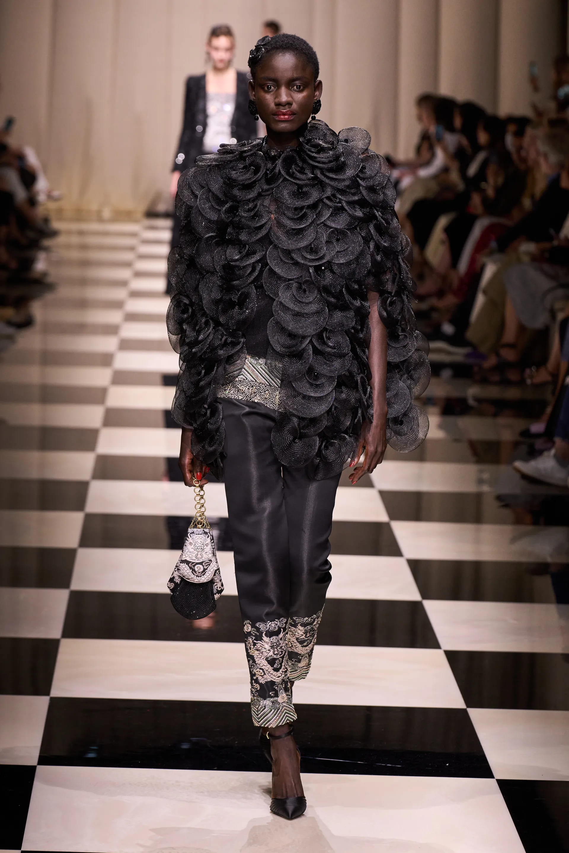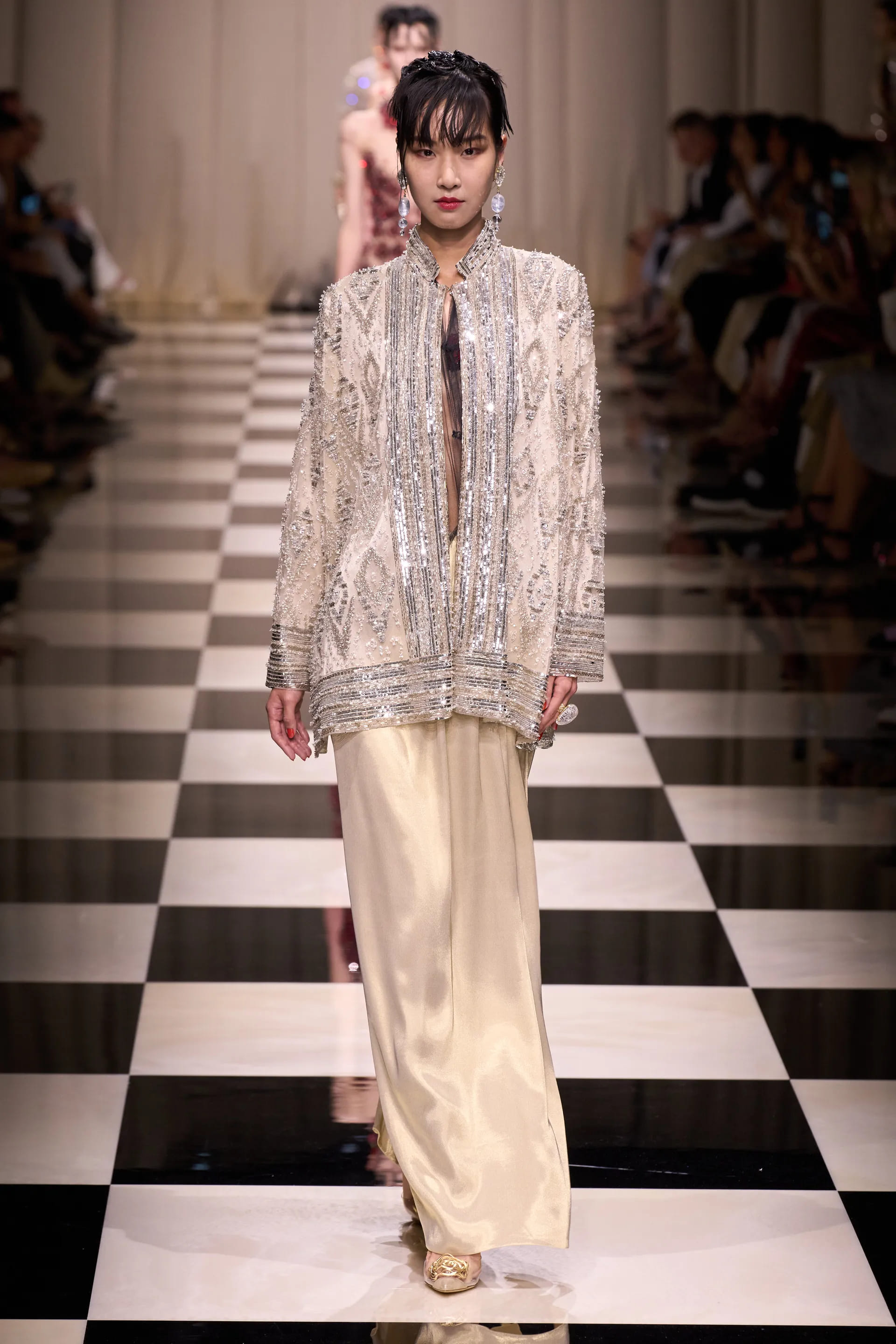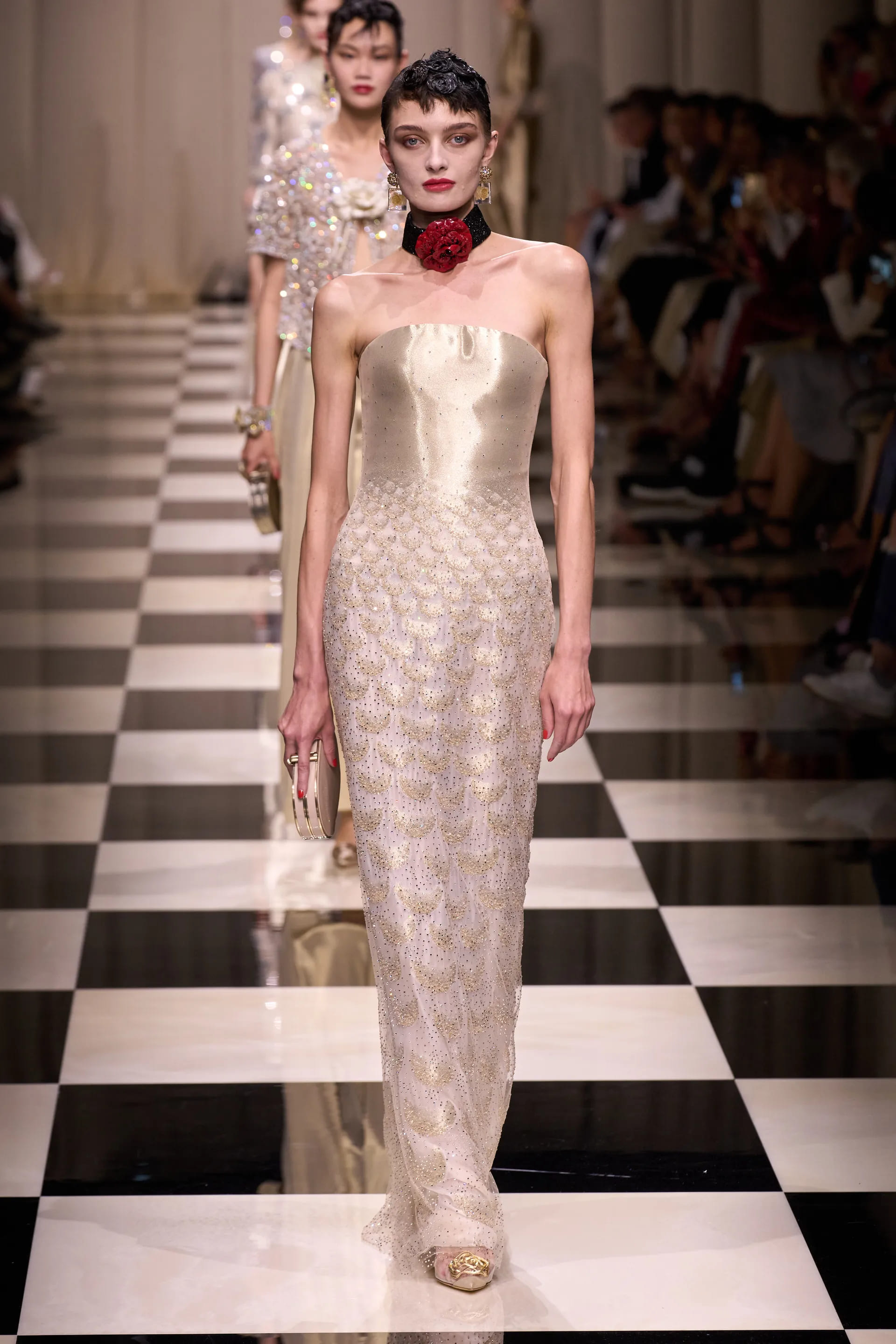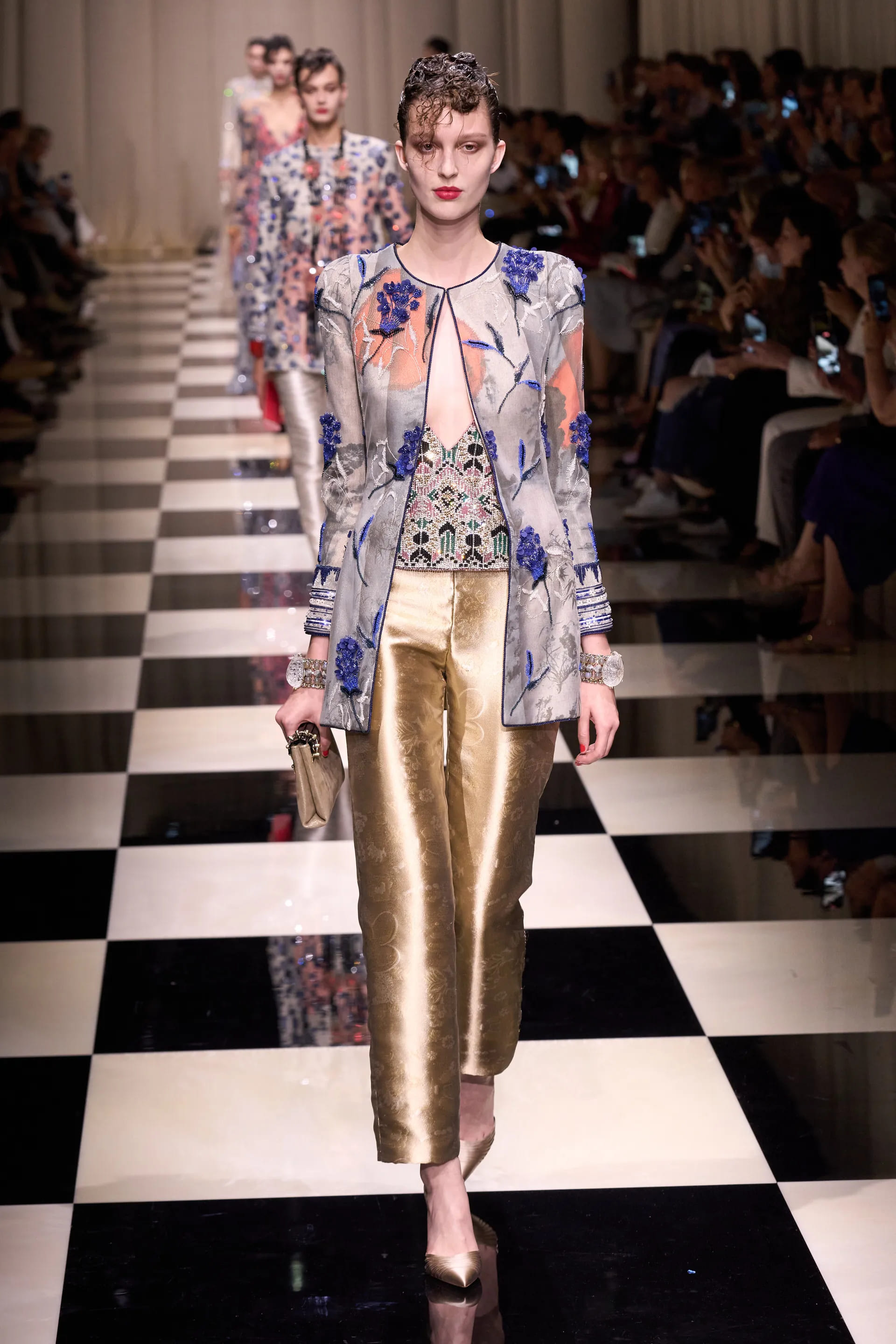 Оздоблення образів — будь то вишивка бісером, лаковані квіти чи орнаменти з паєток — говорило про беззаперечну майстерність студії Armani Prive. Цього сезону дизайнер відволікає увагу модної публіки від "тихої розкоші", ставлячи ставку на точені силуети та помітно вишуканий дизайн.