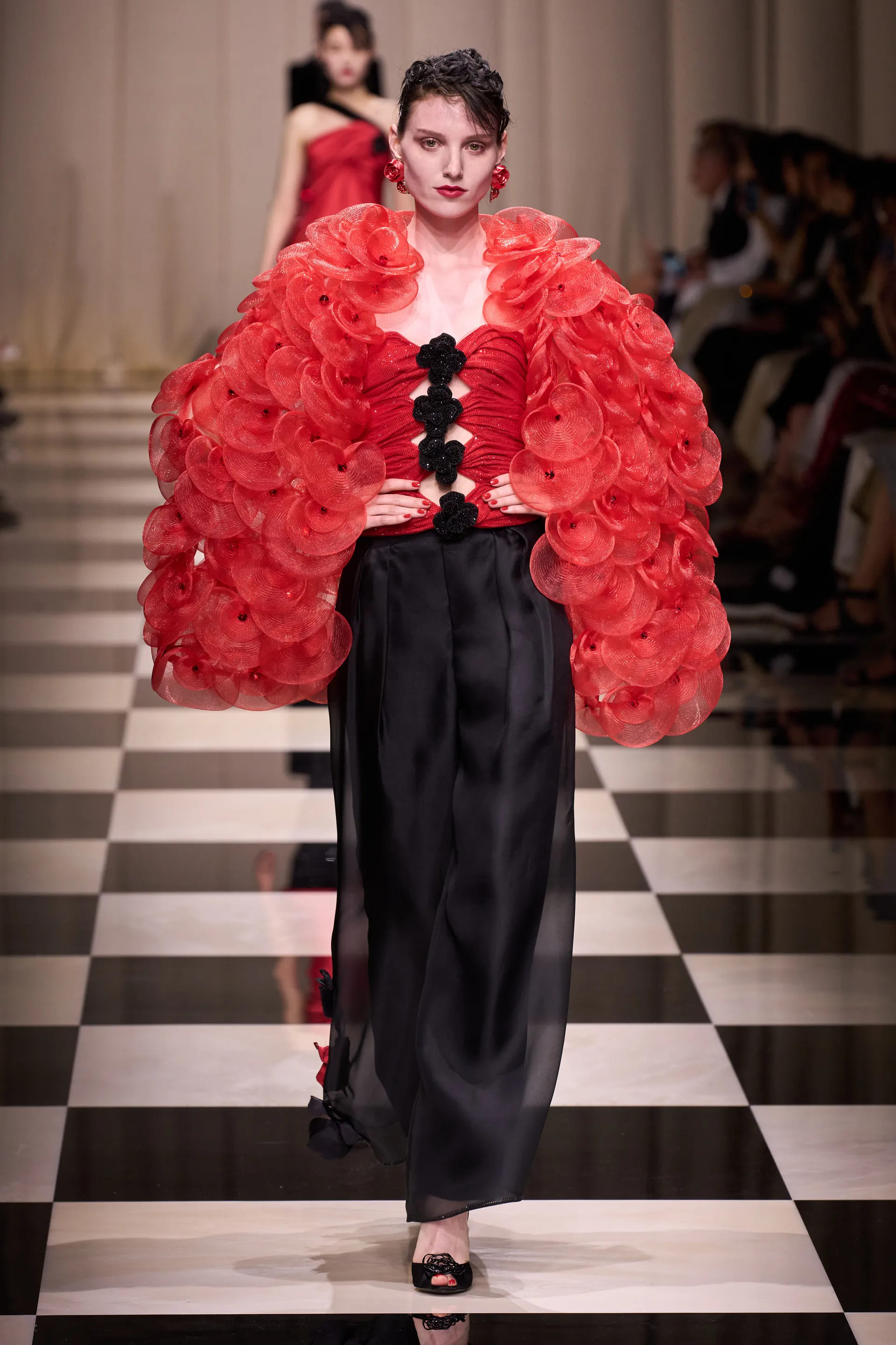 "Тілесне, спокусливе, таємниче цвітіння червоних троянд", — ділився своїм натхненням Джорджіо Армані за кулісами шоу.