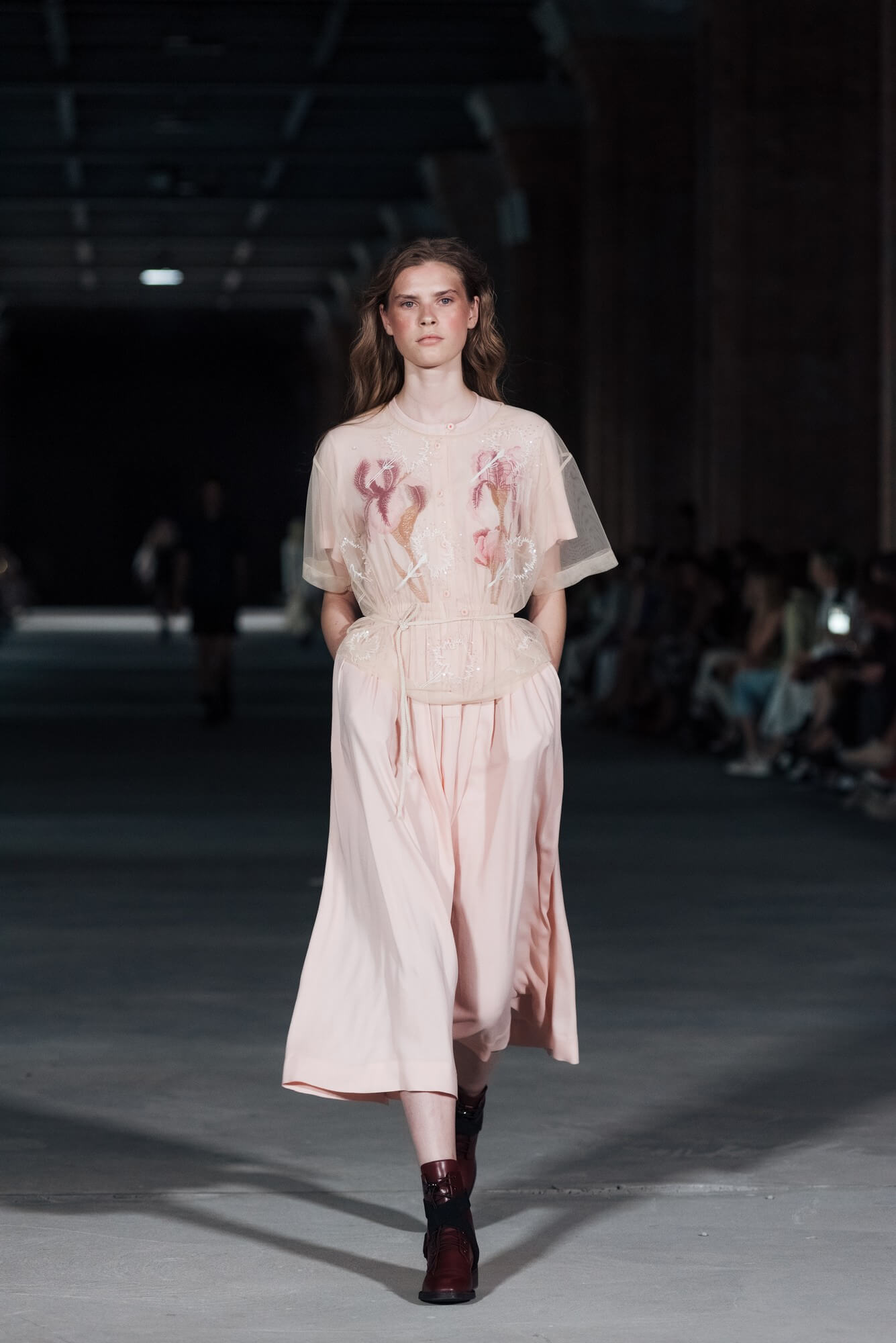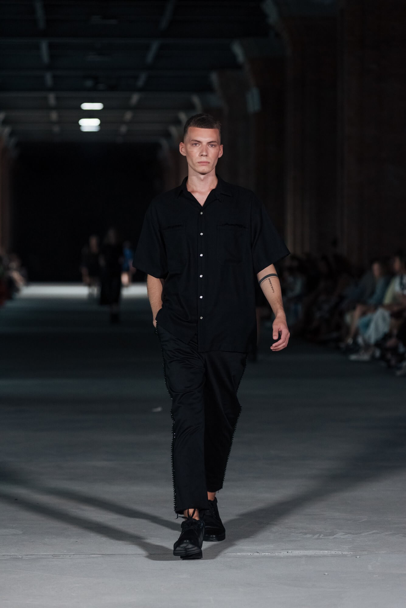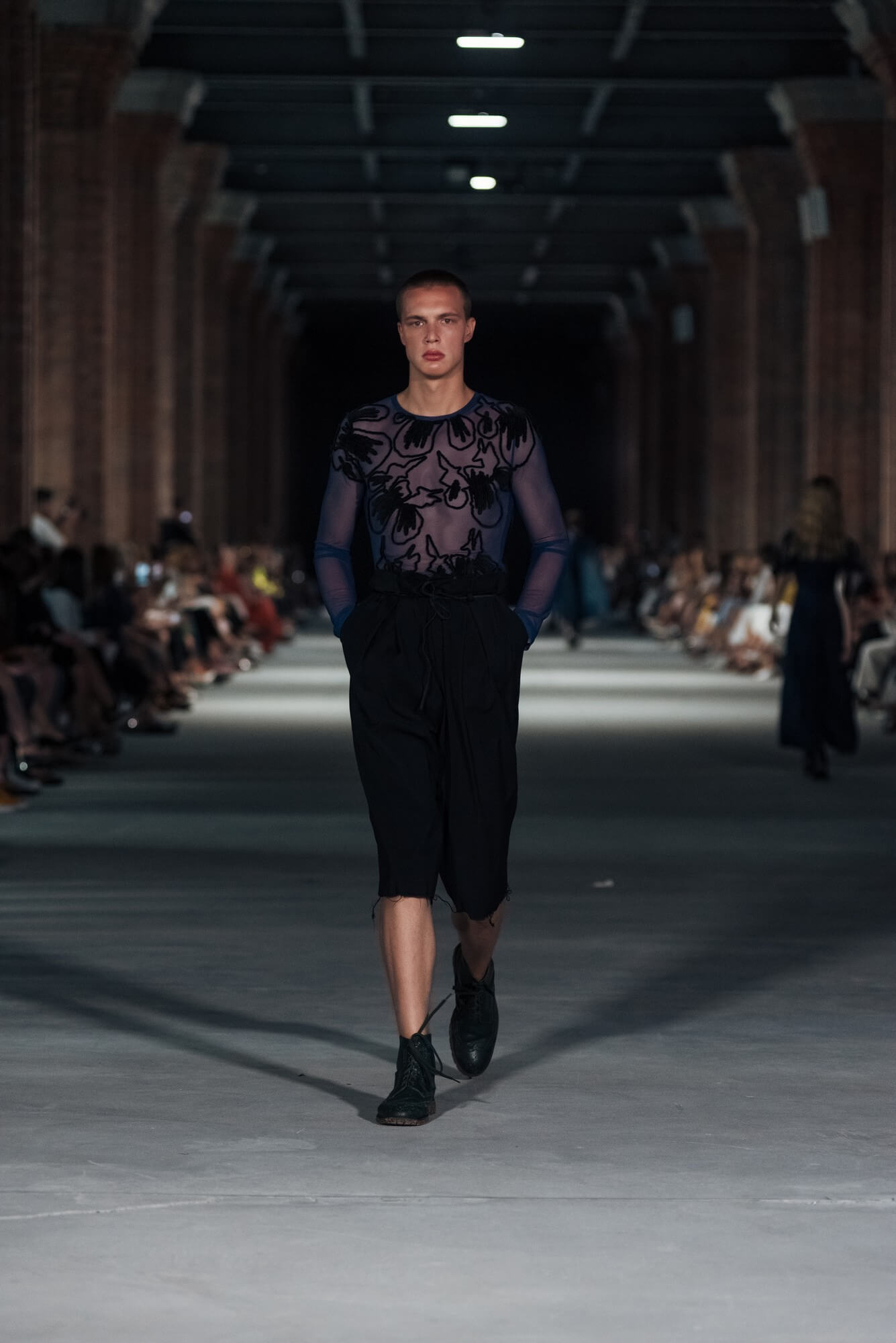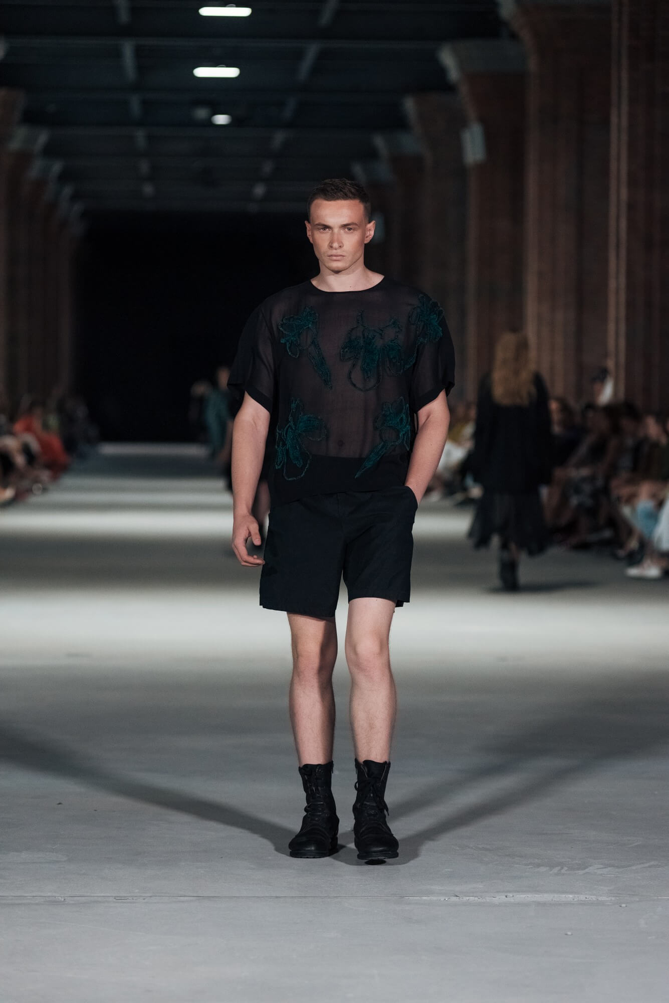 В продолжение некоторых тем прошлой коллекции - юности, любви, города и искусства, дизайнер традиционно "расцветил" блузы, мужские сорочки и полупрозрачные платья нежными букетами садовых цветов и цветов каштана. Модели выходили на подиум в нарядах, расшитых хрустальным стеклярусом, объёмной нитью, и с нарочито необработанными подолами юбок. Одним из самых эффектных стал выход модели в сверкающем серебристом платье-кейпе. Мужская часть коллекции состоит из силуэтных комбинезонов со строгими планками на пуговицах, прозрачных сорочек и футболок, напоминающих главную униформу рейверов 2000-х, и остроумных шорт с завышенной талией.